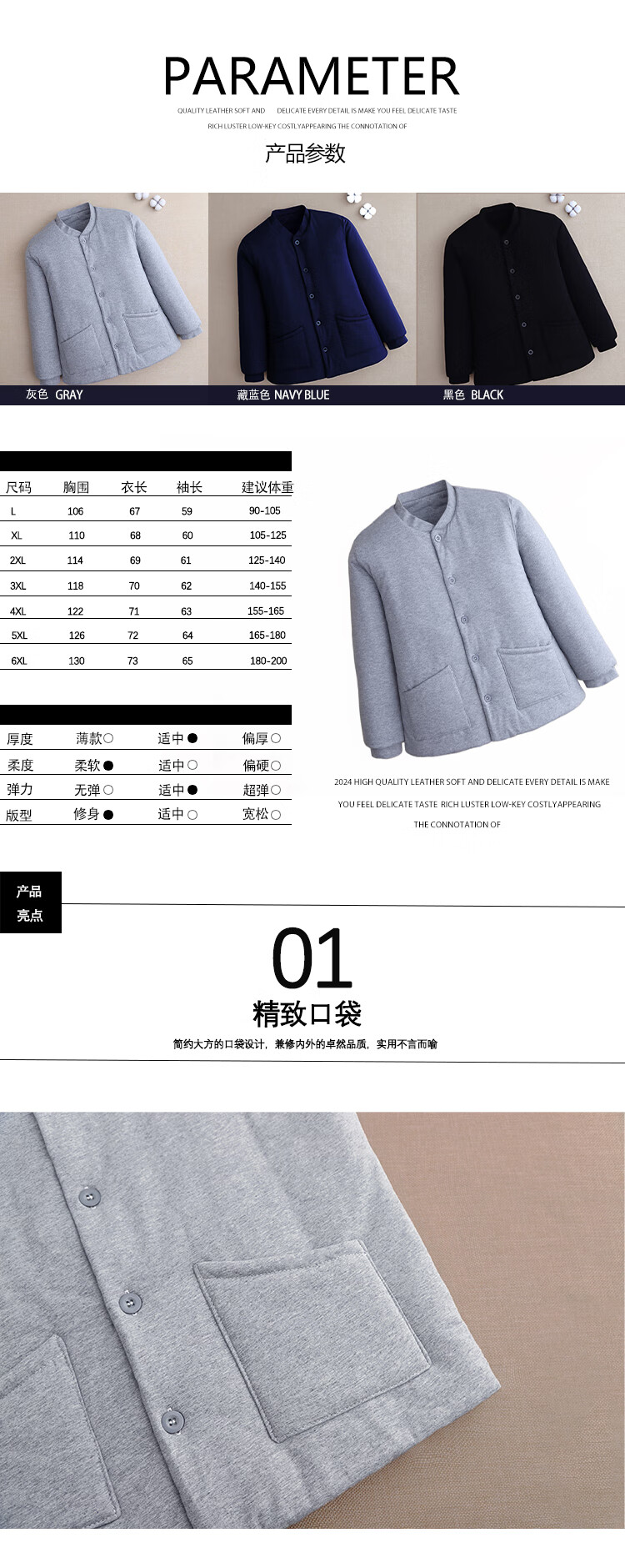 ROMON pure cotton men's liner cotton jacket dad warm close-fitting cotton coat middle-aged and elderly thickened inner cotton coat winter navy blue L recommended 90-105Jin Jin equals 0.5 kg