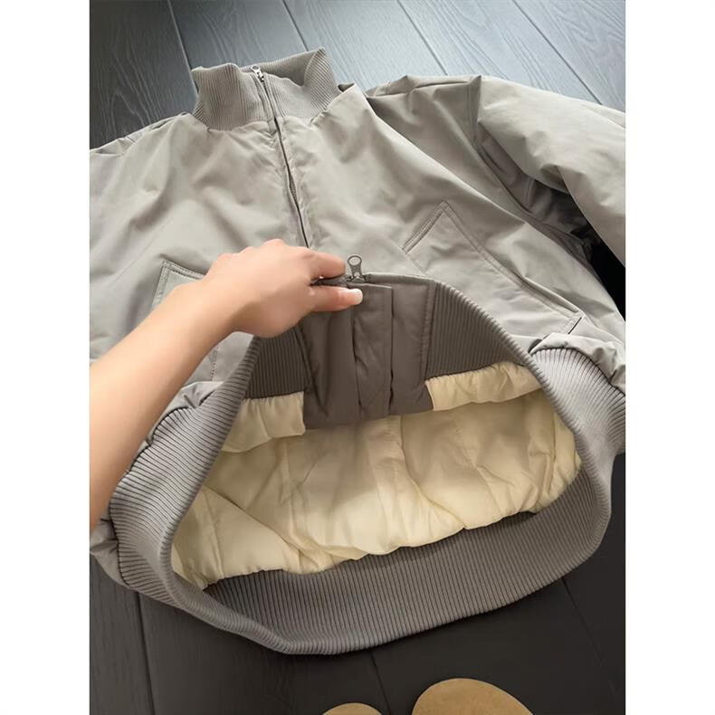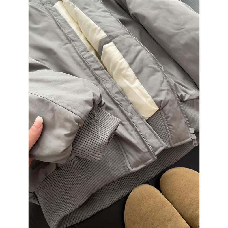 Jufeng Gray Cleanfit Flight Jacket Cotton Jacket Men's Winter Thickened Warm Cotton Jacket Short Profile Stand Collar Baseball Jacket Light Gray Cotton Upgraded M
