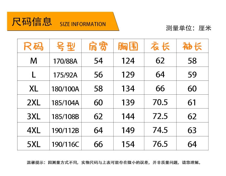 China (cm) 165 / 88-90 170 / 96-98 175 / 108-110 180 / 118-122 185 / 126-130