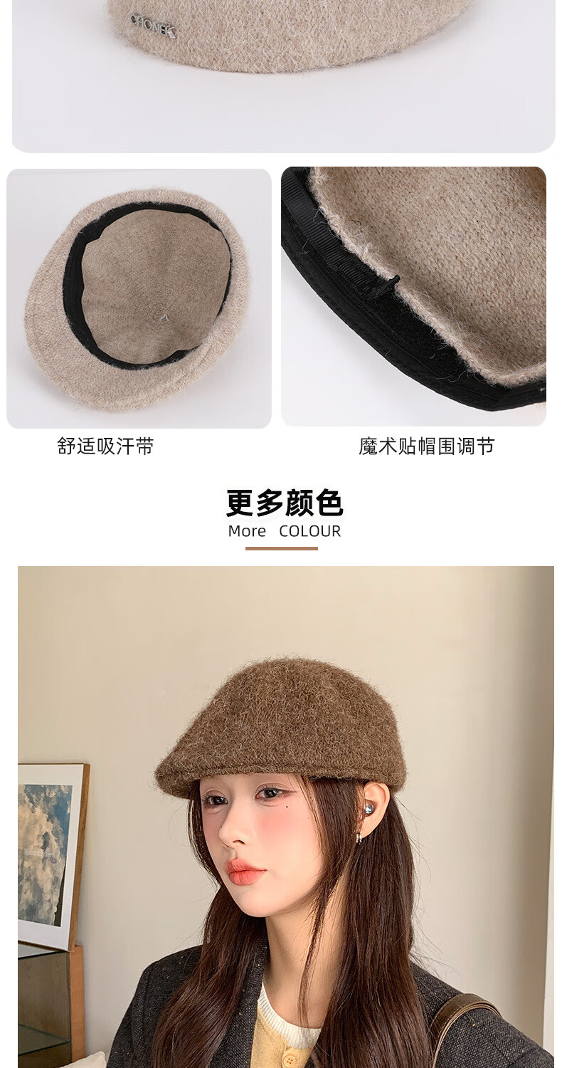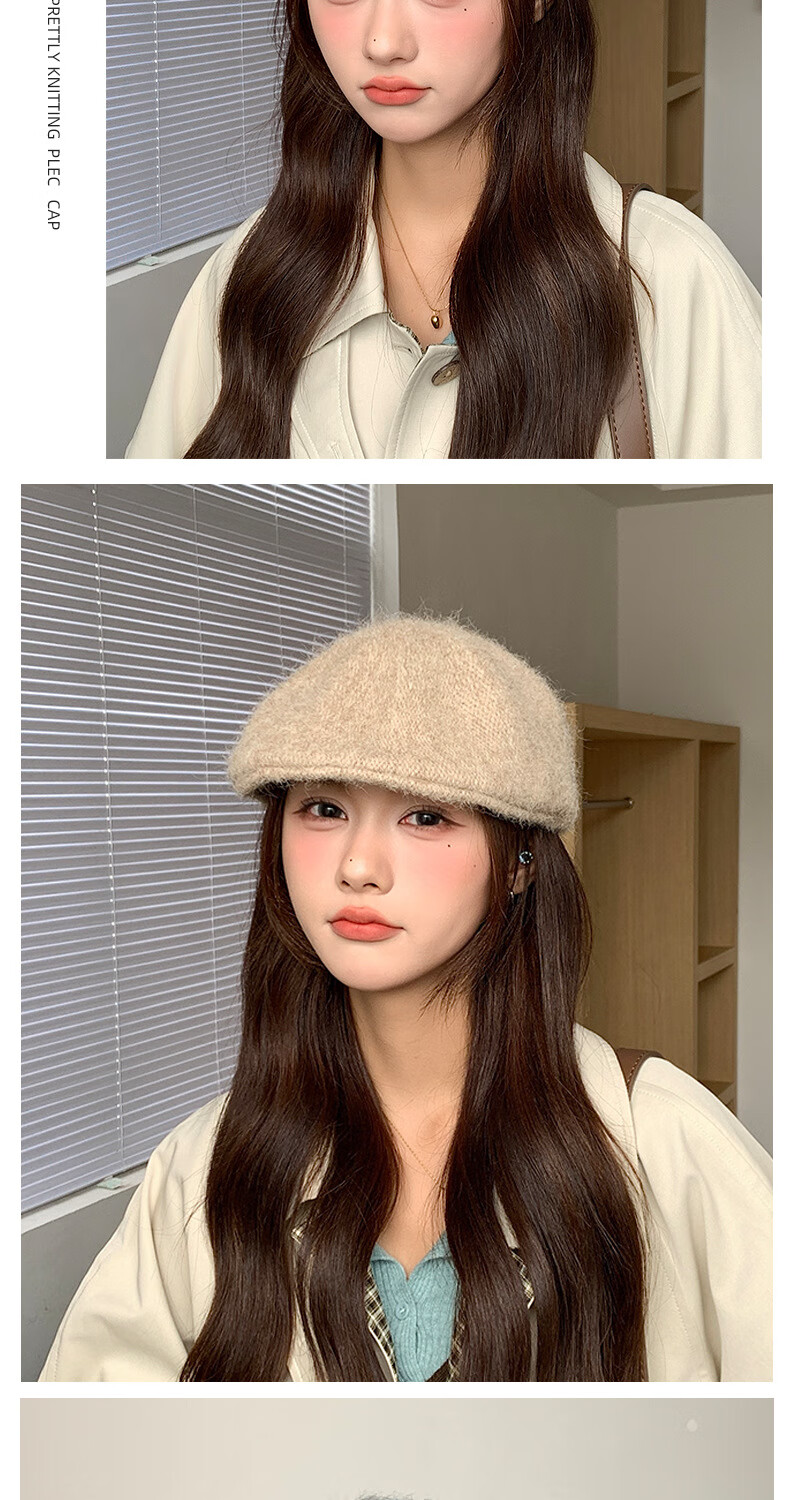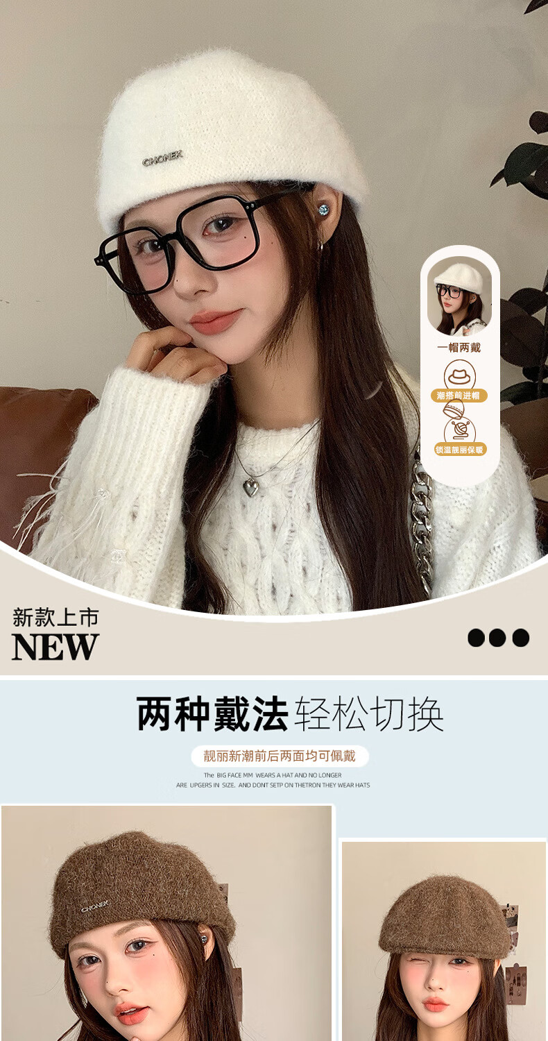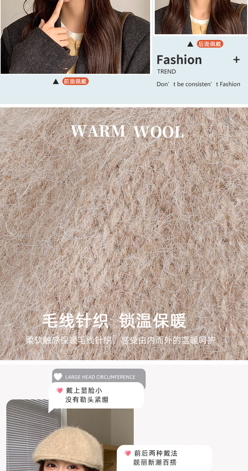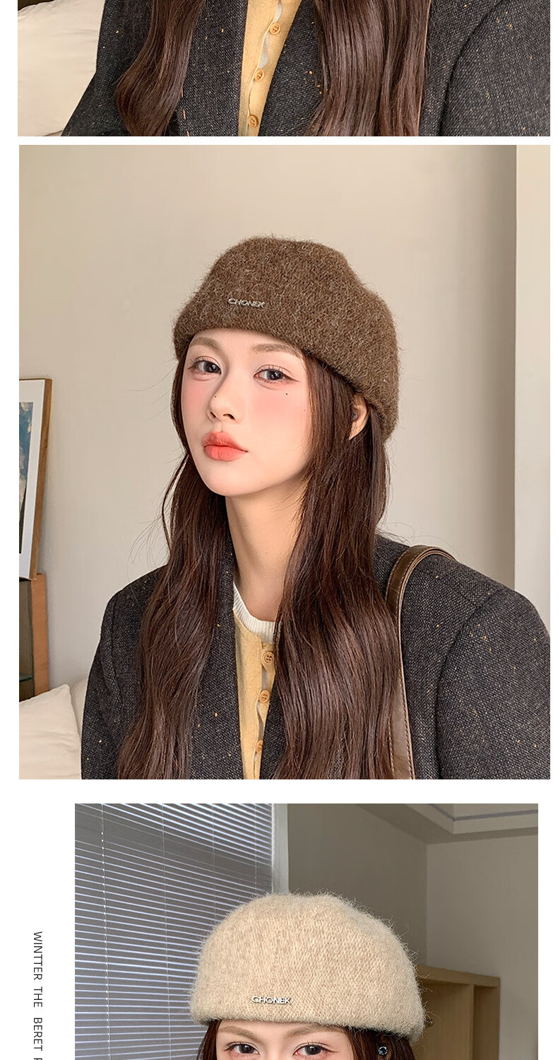 Panxing Korean version of ins style beret, worn backwards, high-end fashion forward hat, versatile autumn and winter face-showing small knitted painter hat, brown, one size fits all