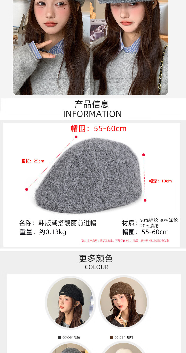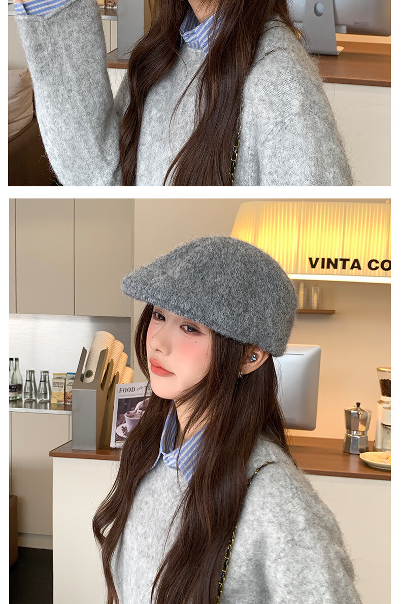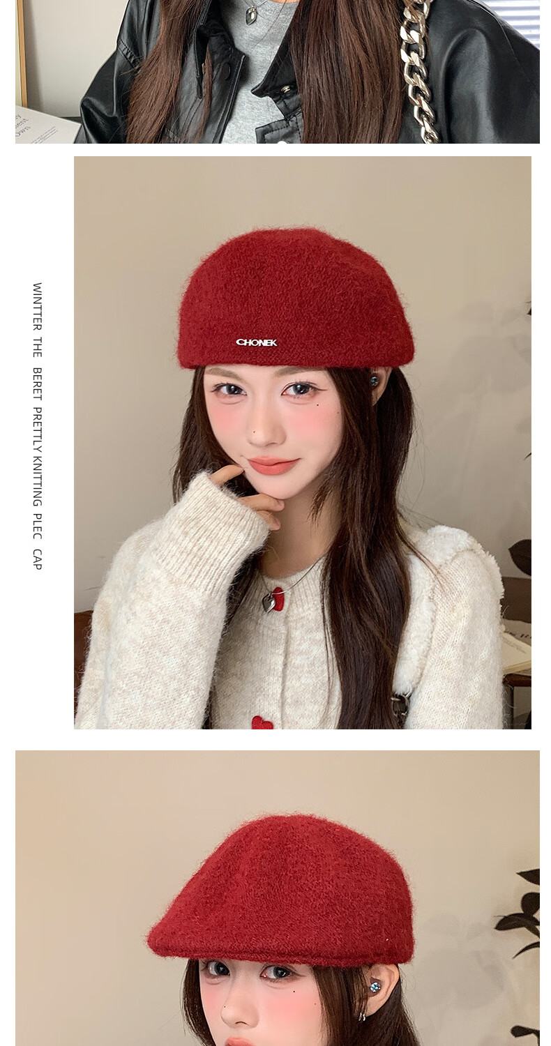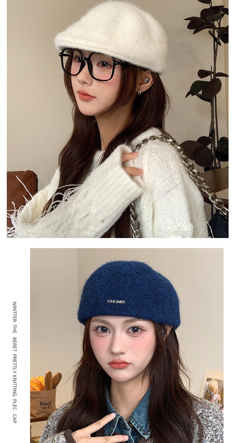 Panxing Korean version of ins style beret, worn backwards, high-end fashion forward hat, versatile autumn and winter face-showing small knitted painter hat, brown, one size fits all