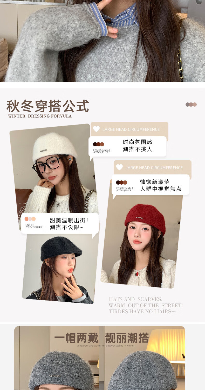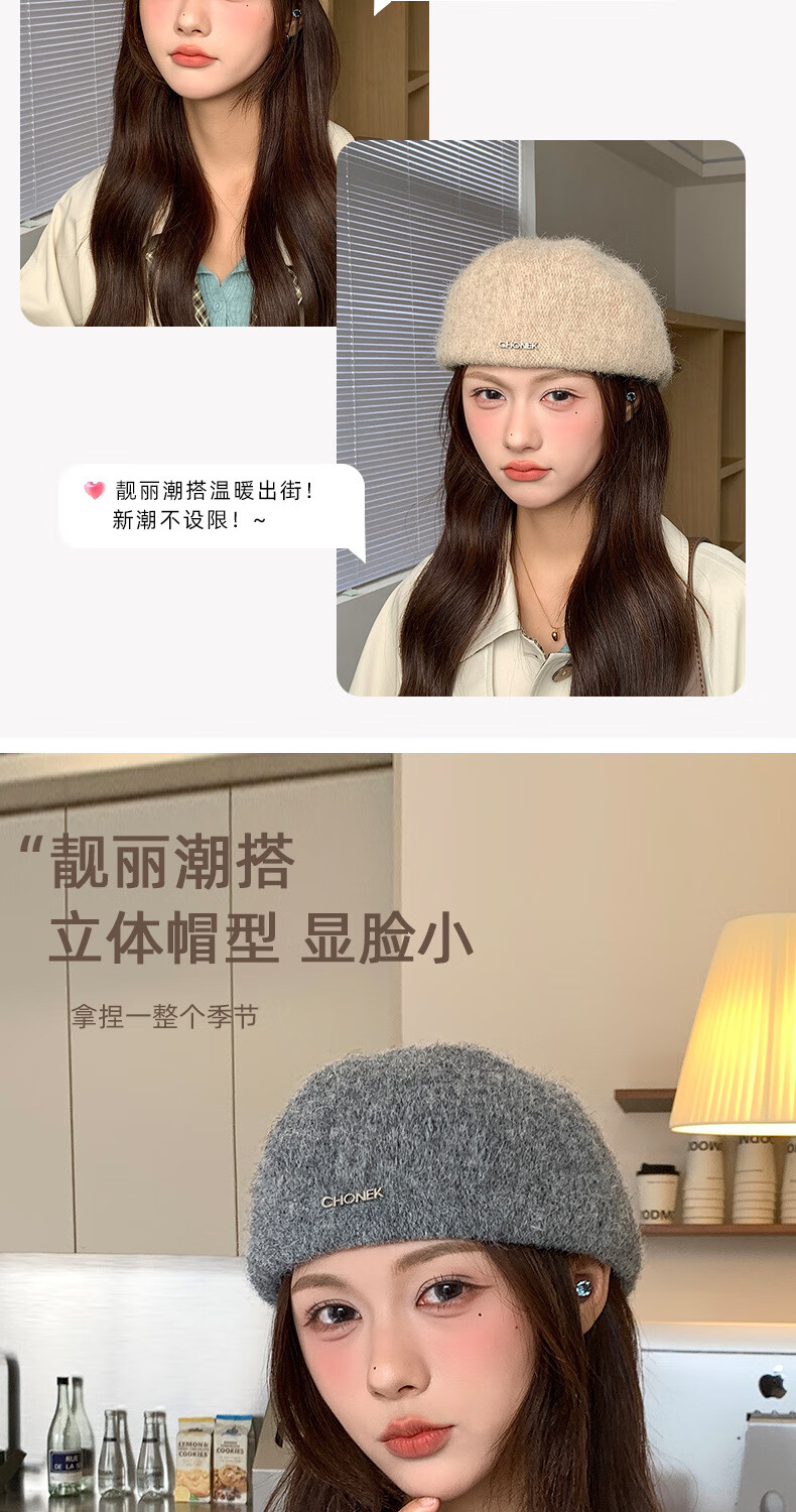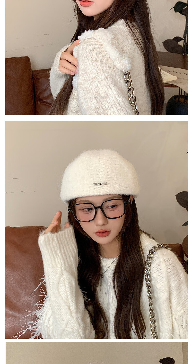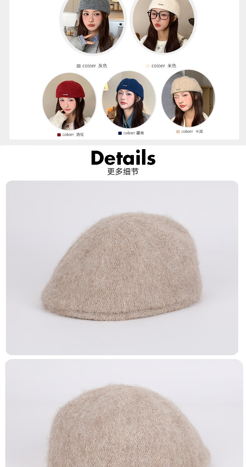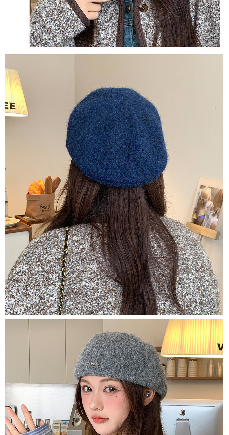Panxing Korean version of ins style beret, worn backwards, high-end fashion forward hat, versatile autumn and winter face-showing small knitted painter hat, brown, one size fits all