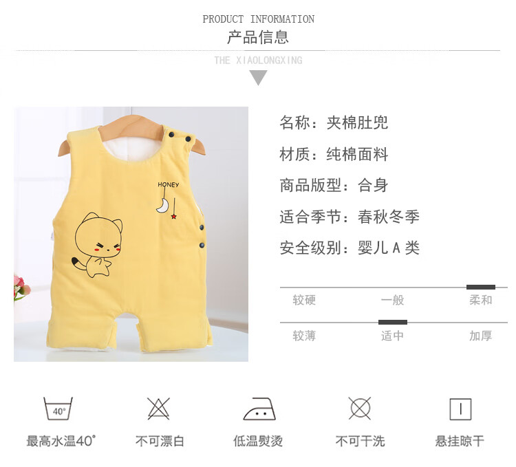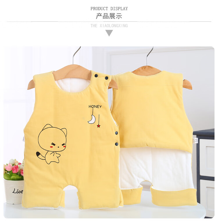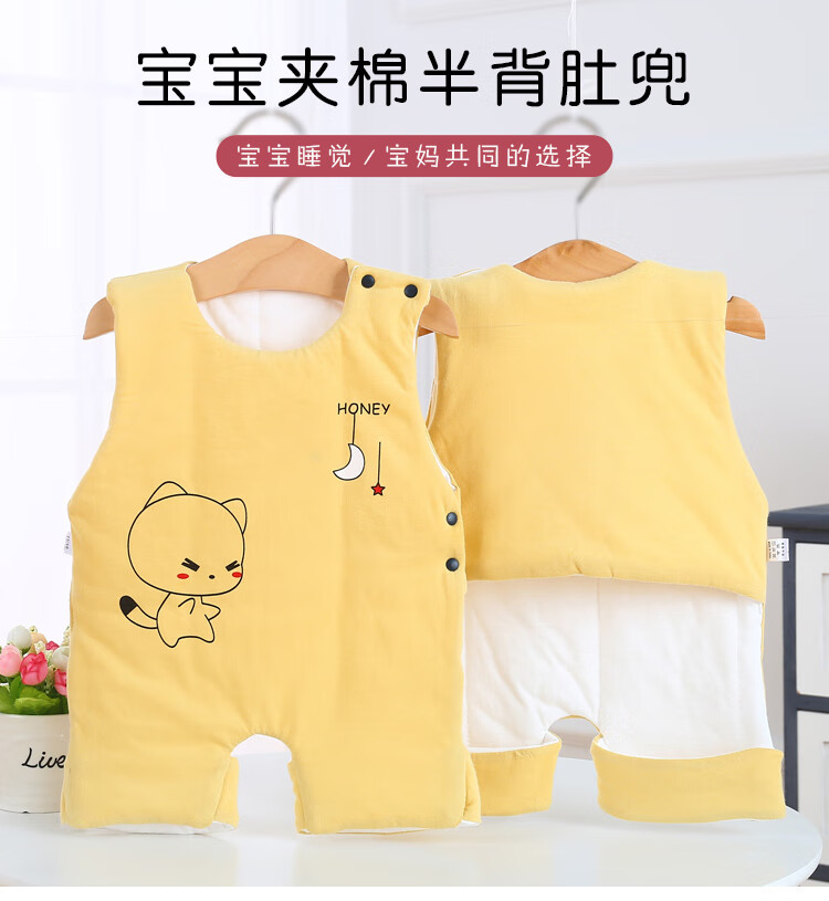 Baby cotton pocket to protect the tummy and prevent colds, baby and children's autumn and winter anti-kick quilt vest-style shoulder pads, yellow - cat size 66, recommended 10-13 Jin Jin equals 0.5 kg