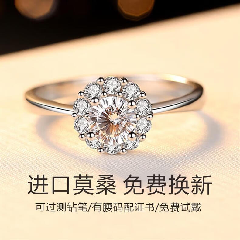 Pt950 Platinum 50 Breakup Bouquet Moissanite Diamond Ring Women's Silver Couple Ring Platinum Wedding Proposal Ring Closed No. 8 - Light Luxury