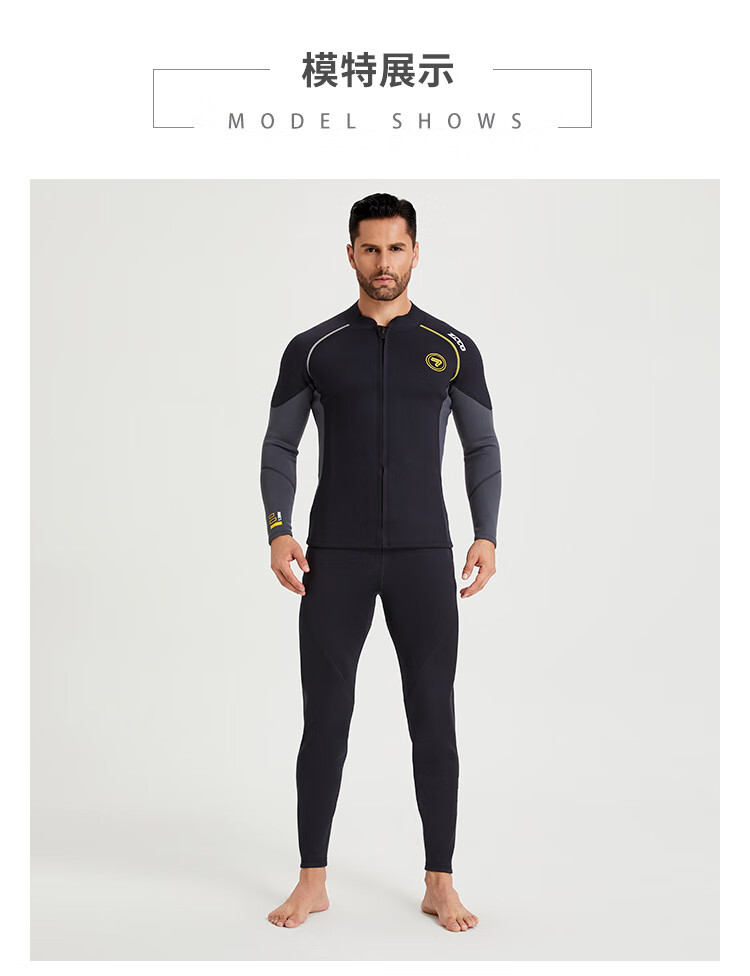 3mm wetsuit for men and women split wetsuit cold warm top pants snorkeling surfing winter swimsuit black gray S