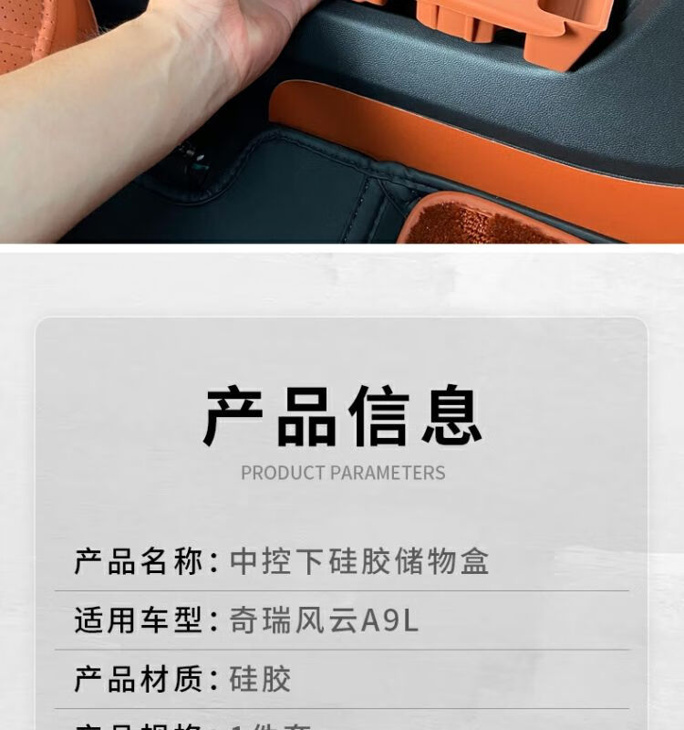 After the trip, it is suitable for Fengyun A9L central control lower storage box car armrest box storage silicone storage box interior supplies Chery Fengyun A9L Fengyun A9L upgraded central control lower storage box orange