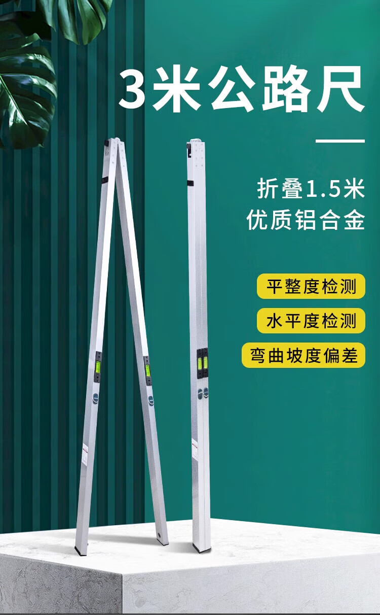 Qiao Bo Laimi road ruler three-meter ruler aluminum alloy ruler folding horizontal ruler plug engineering road flatness detection ruler Note: Highway rulers cannot measure verticality