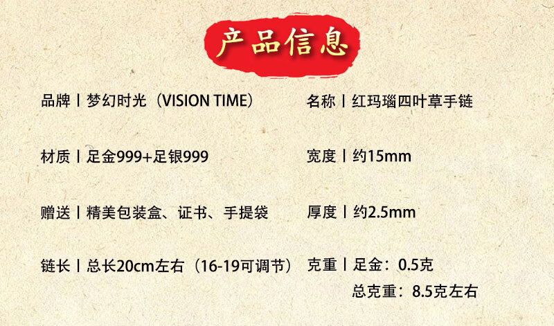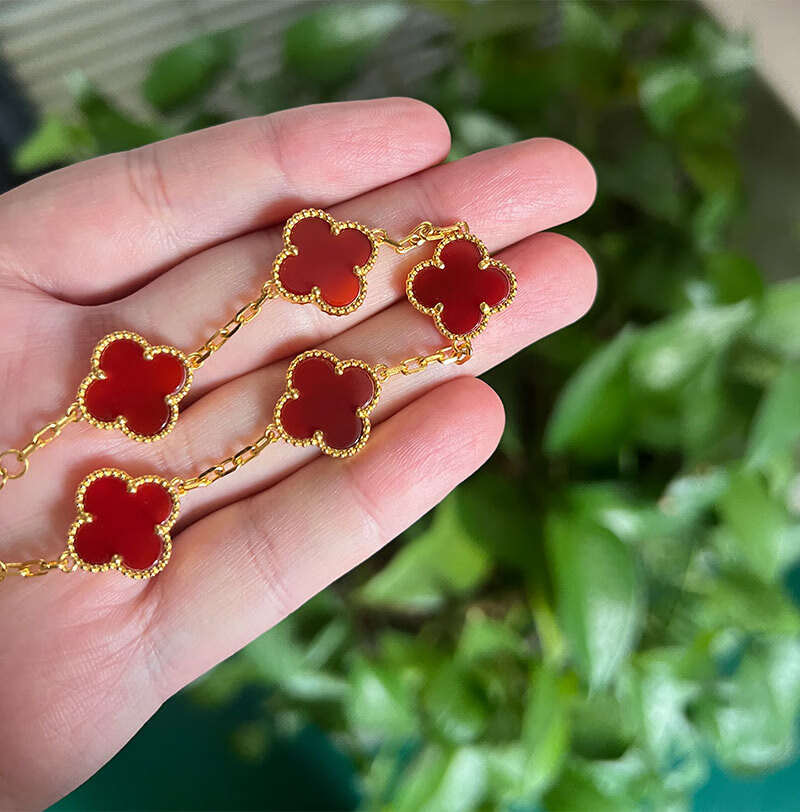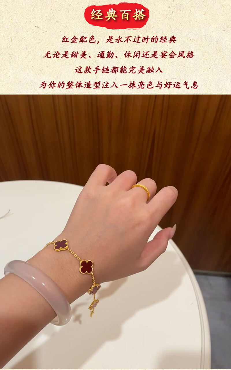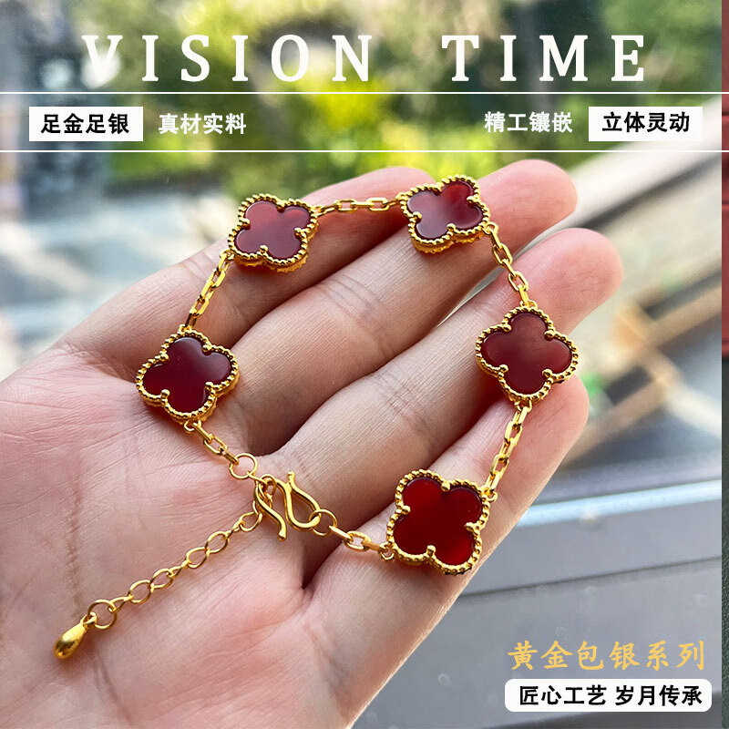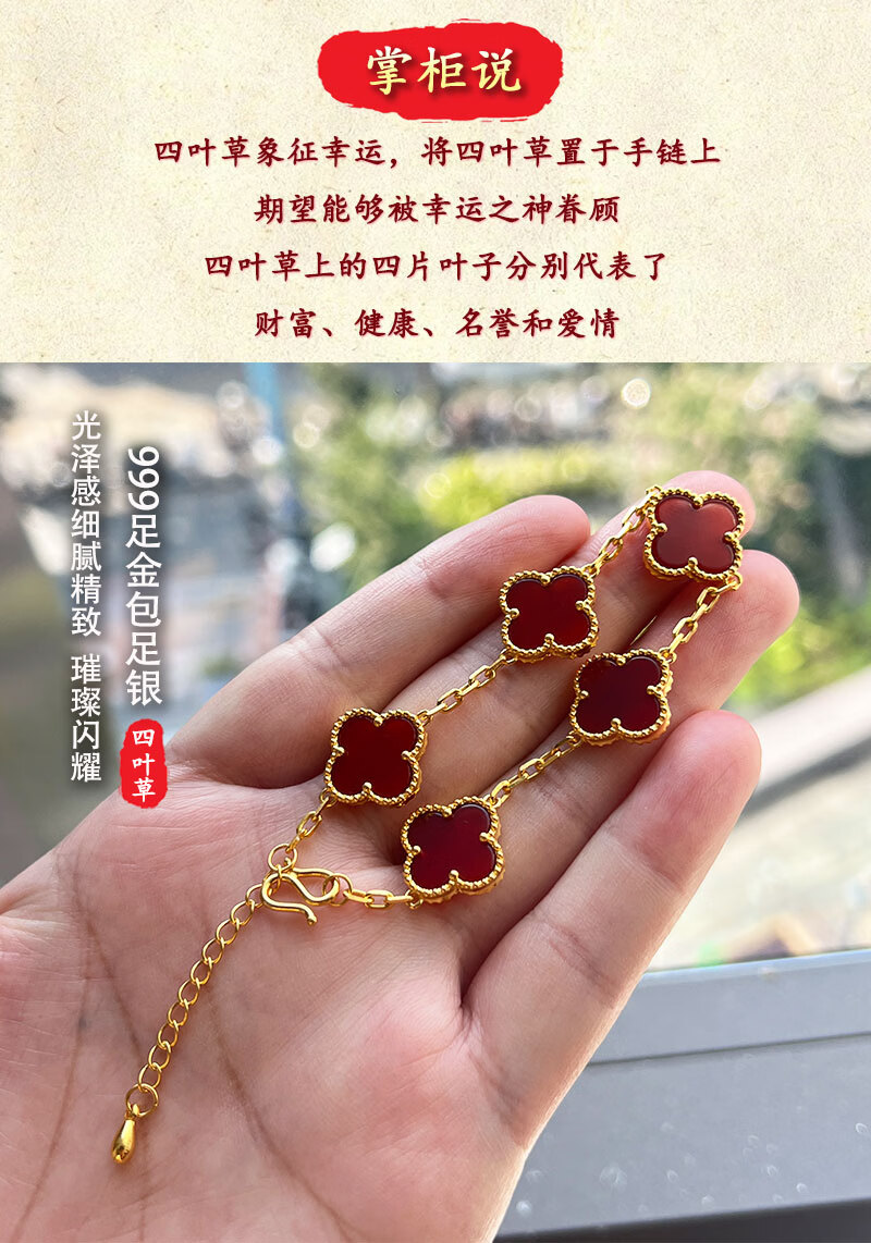 Dream Time Red Agate Five-Flower Four-leaf Clover Gold Bracelet 999 Pure Gold Silver-covered Jewelry Valentine's Day Gift for Your Girlfriend Red Agate Four-leaf Clover Bracelet (0.5g Gold Covered)