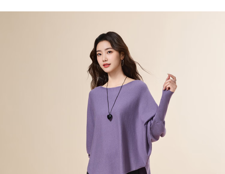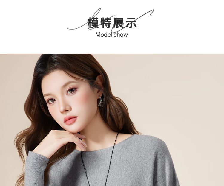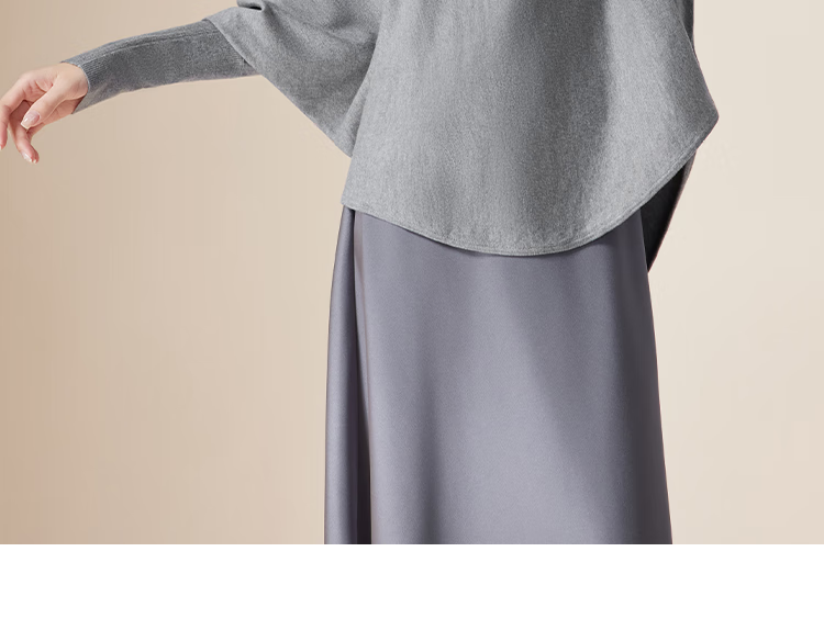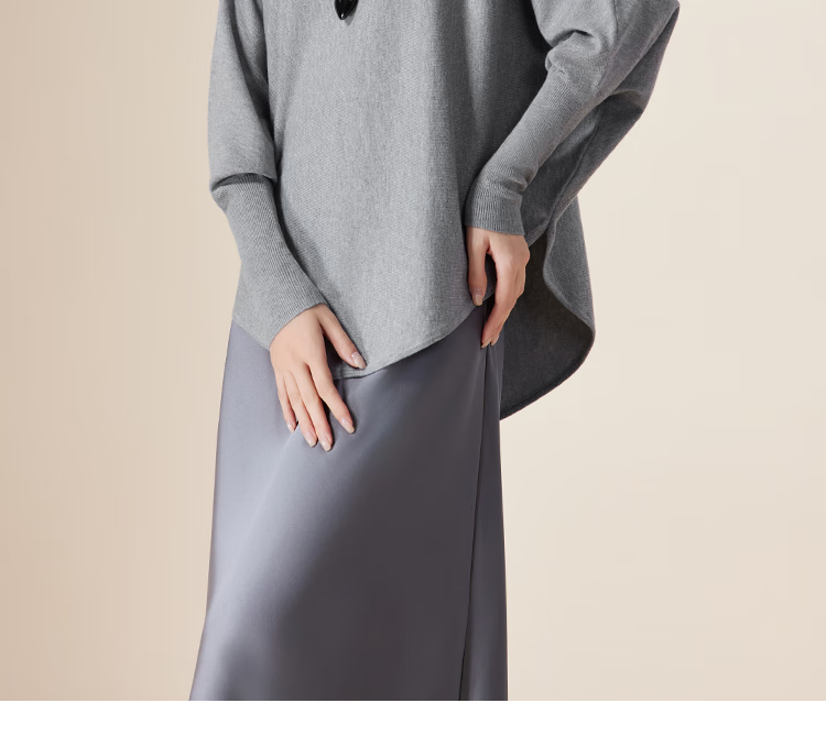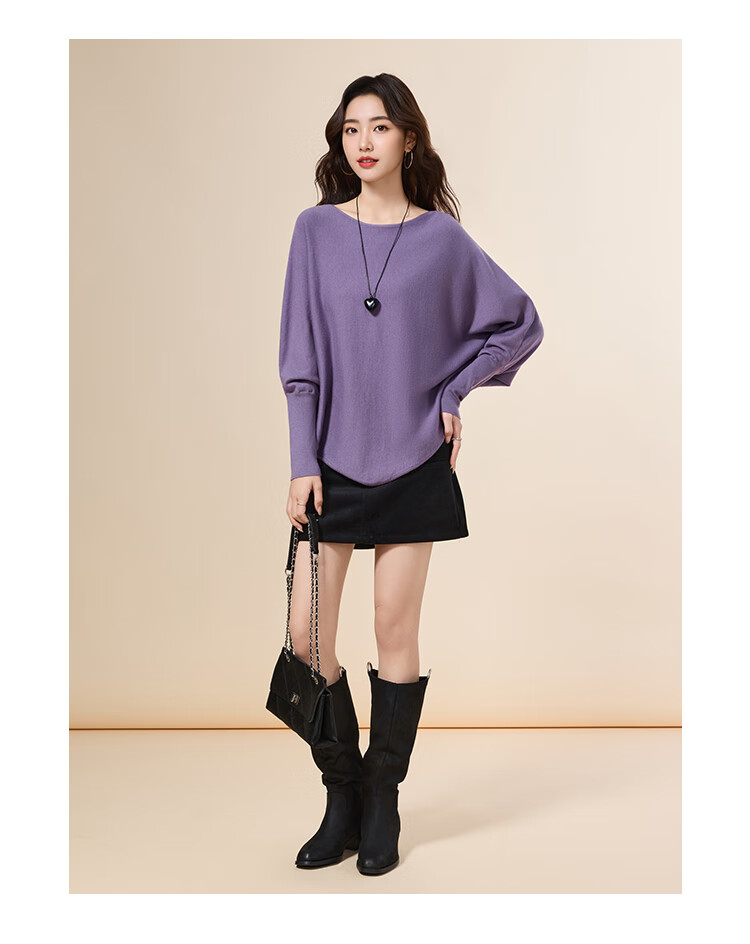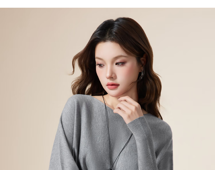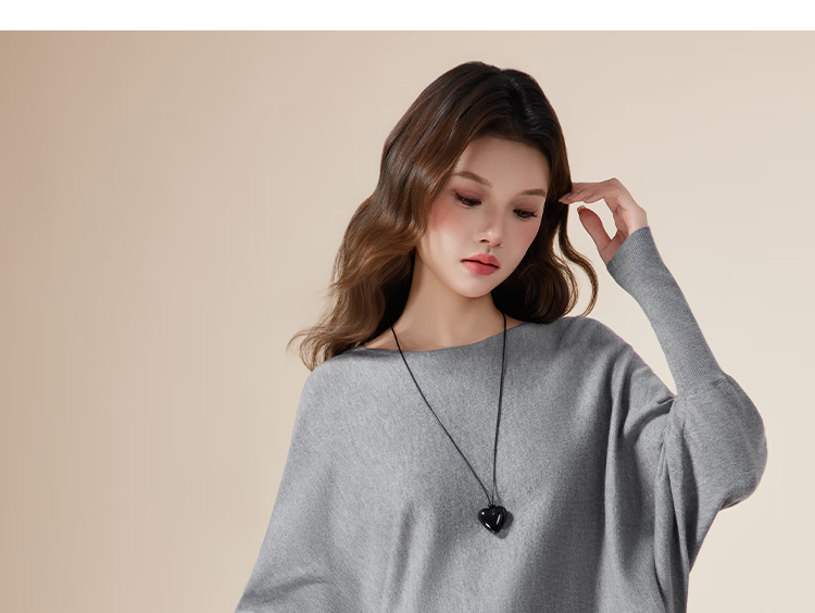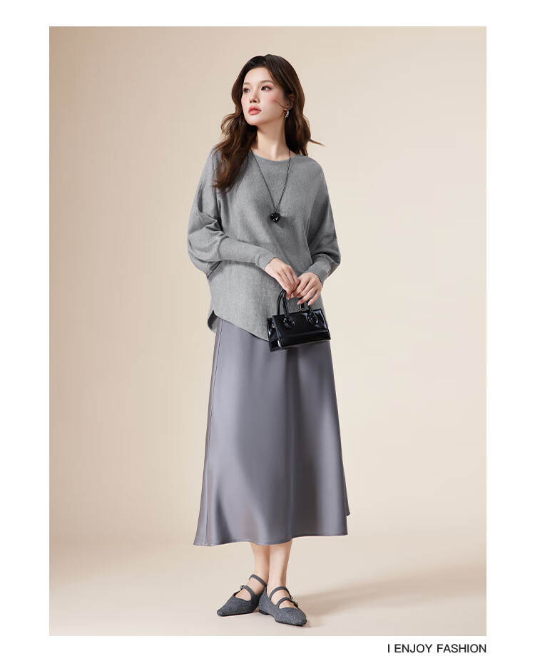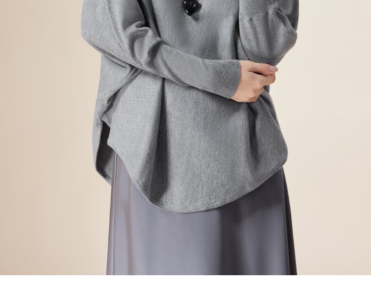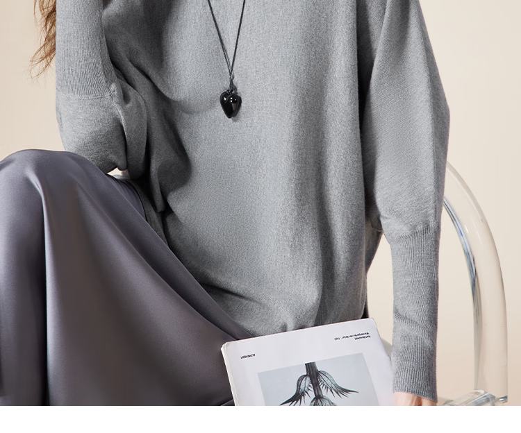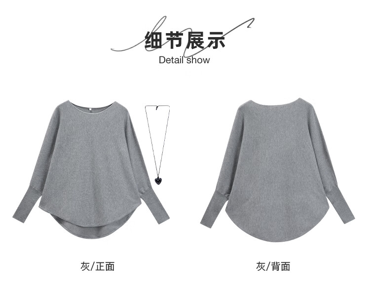 IEF/Aiyifu 2025 autumn new product lazy and relaxed sweater women's casual long-sleeved pullover woolen bat shirt gray one size