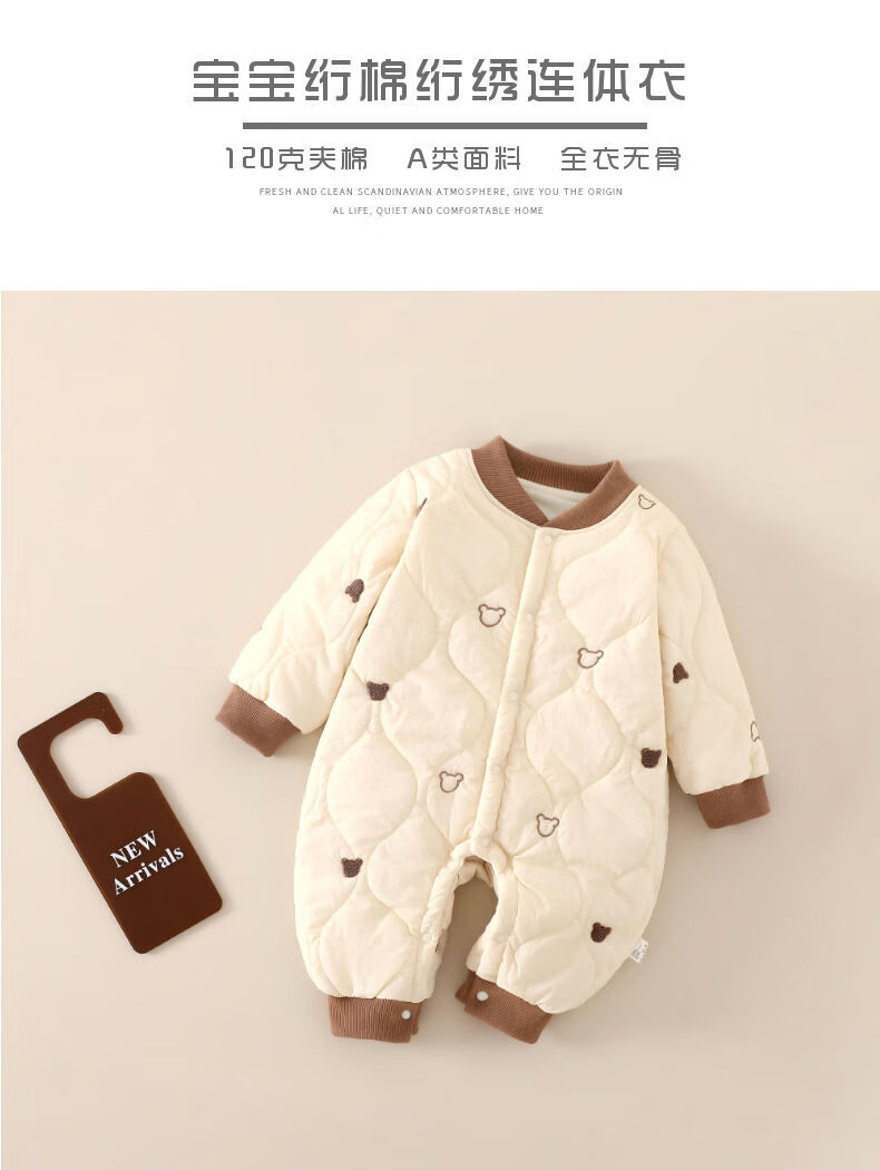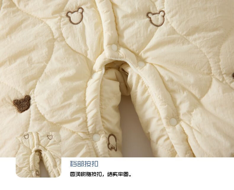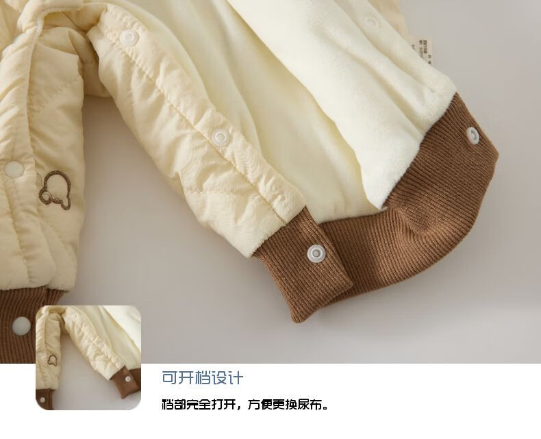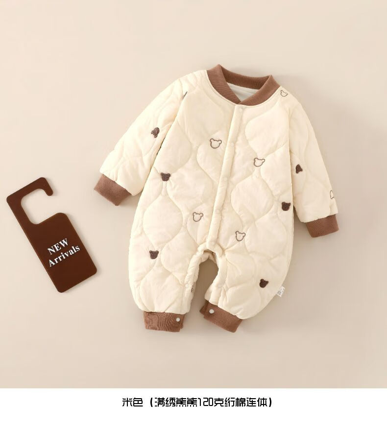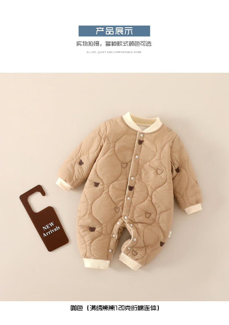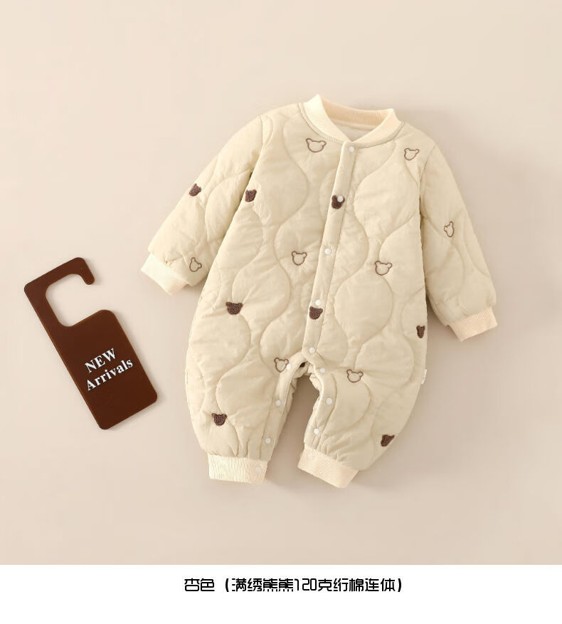 G.duck baby quilted cotton split jumpsuit baby 120g quilted thickened autumn and winter clothing children's outer wear plus cotton romper, coffee color (full embroidery bear 120g quilted cotton one-piece) 73cm