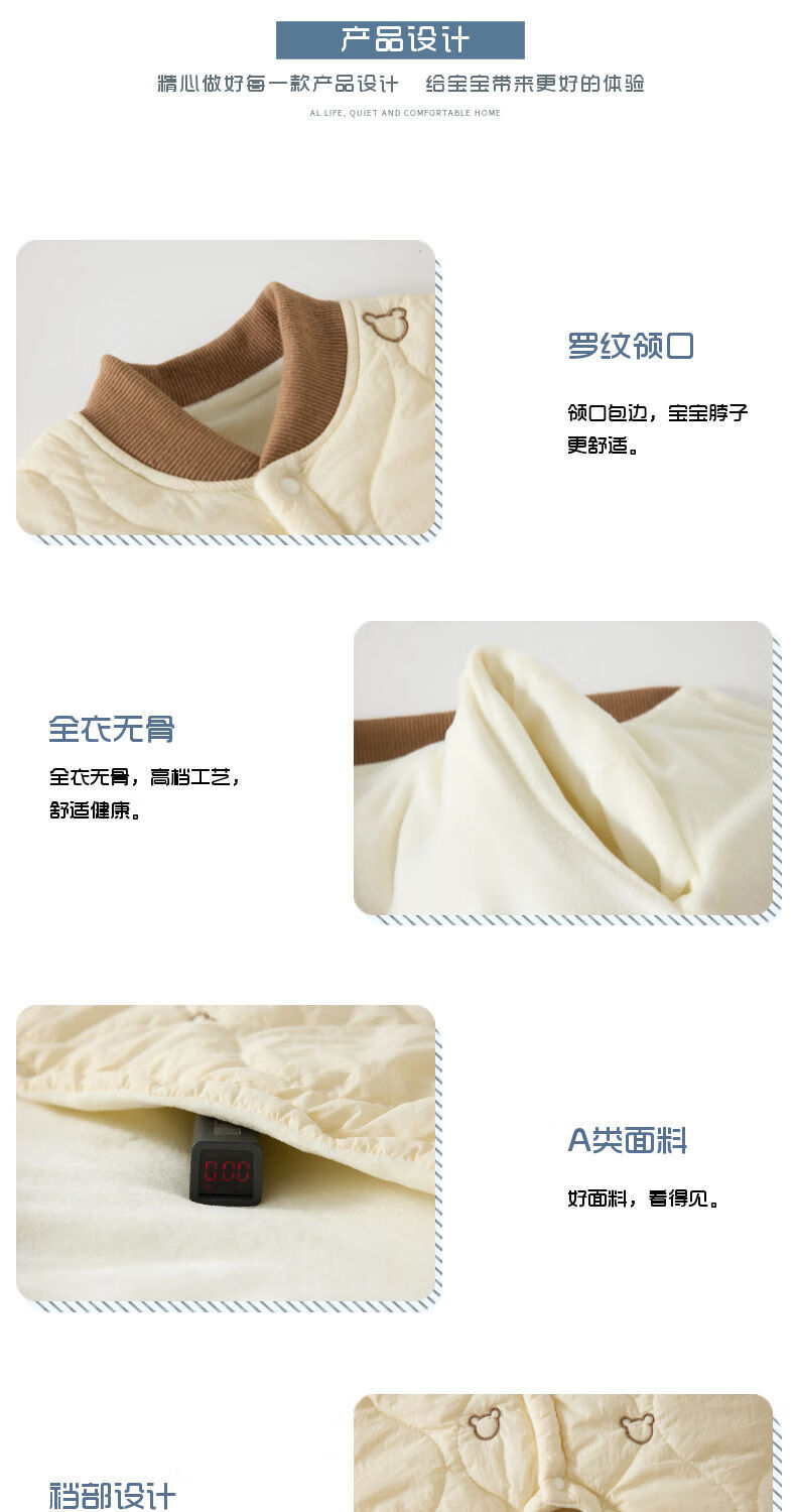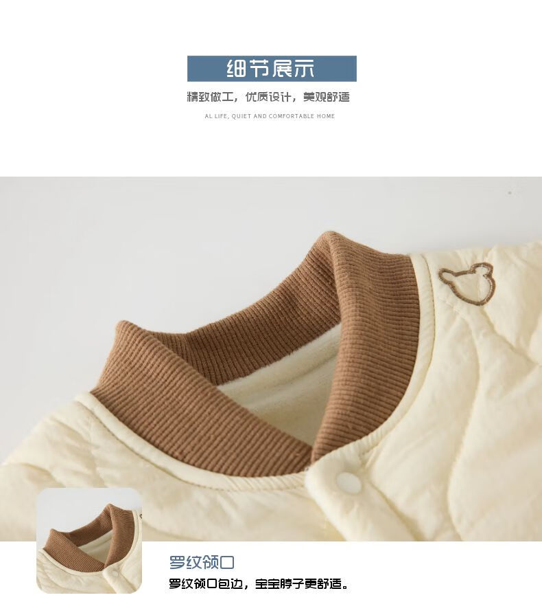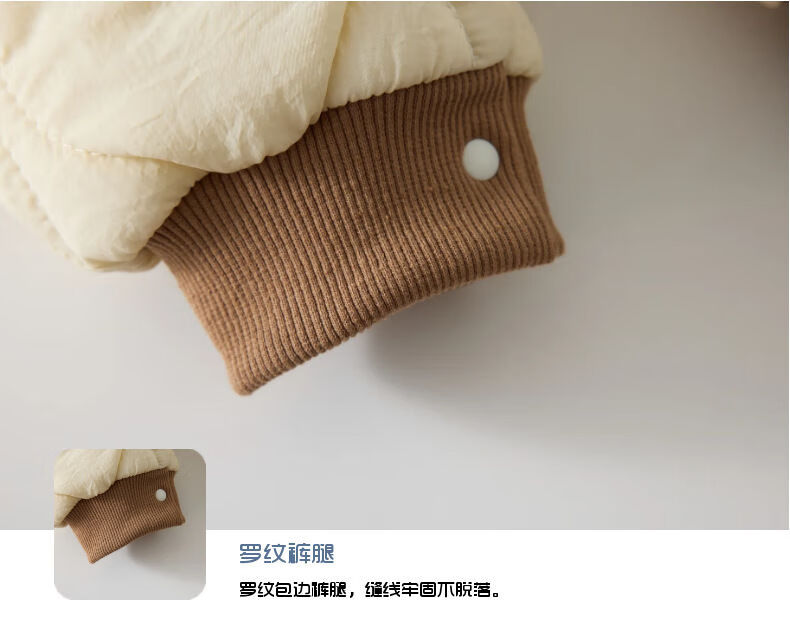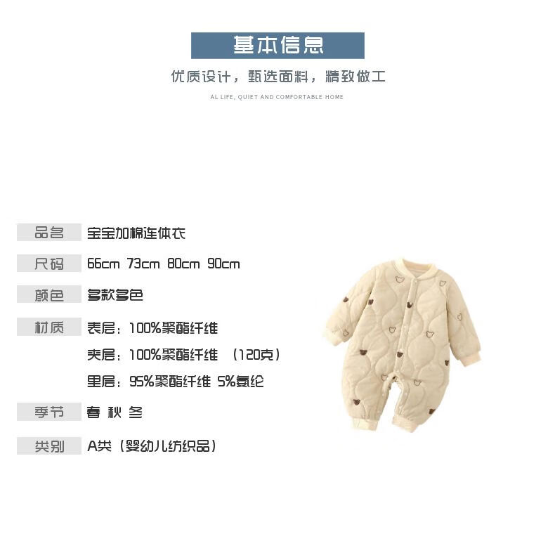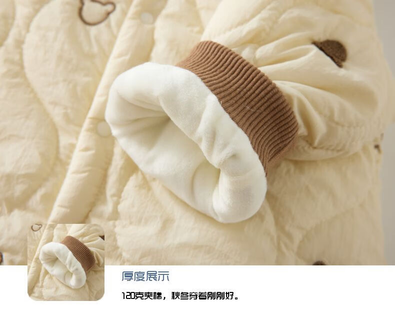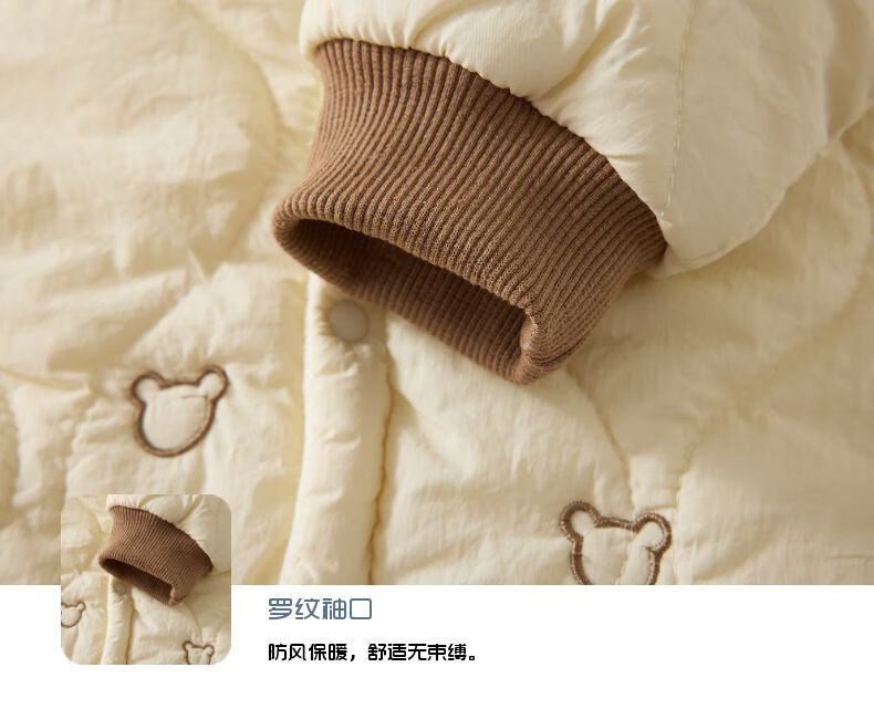 G.duck baby quilted cotton split jumpsuit baby 120g quilted thickened autumn and winter clothing children's outer wear plus cotton romper, coffee color (full embroidery bear 120g quilted cotton one-piece) 73cm