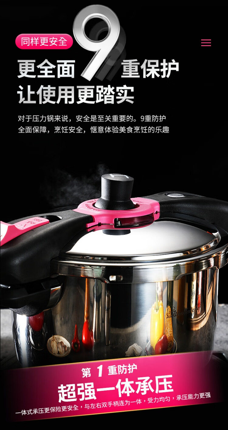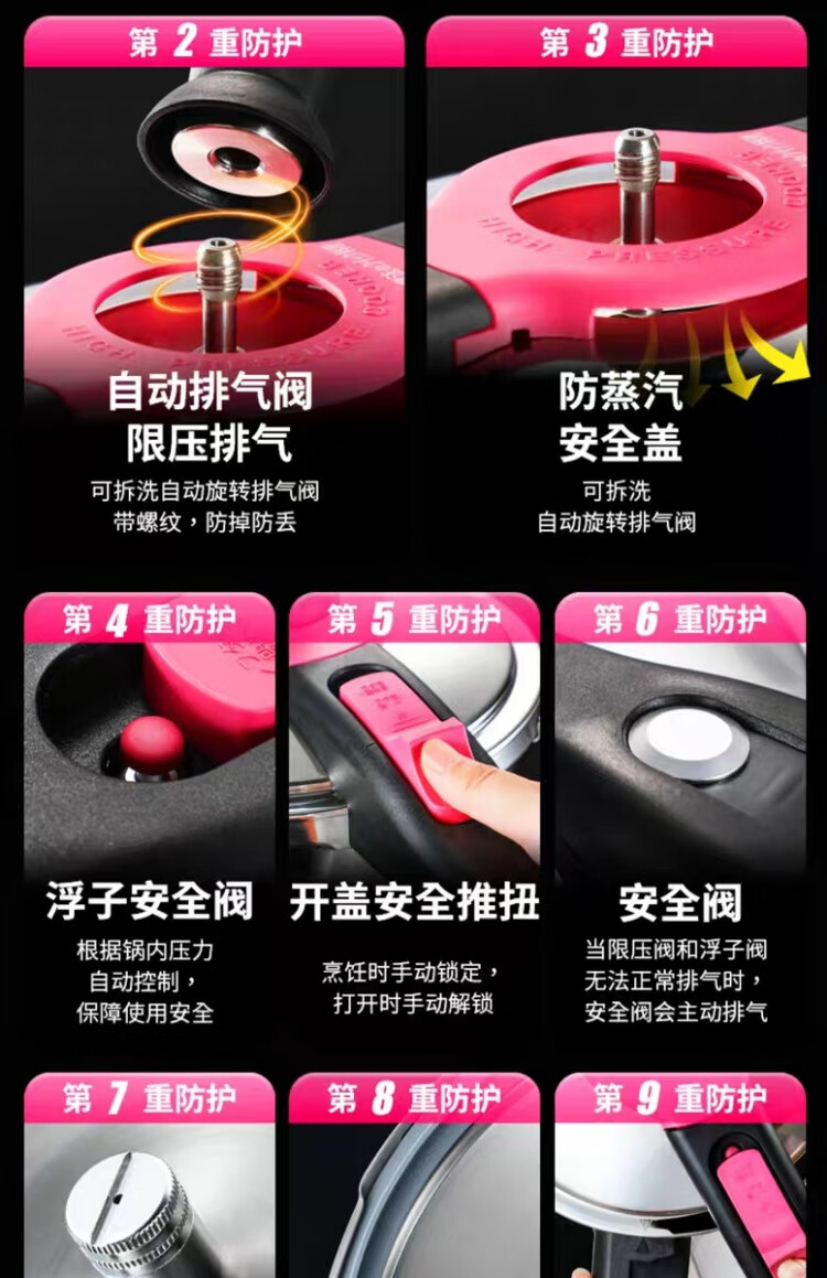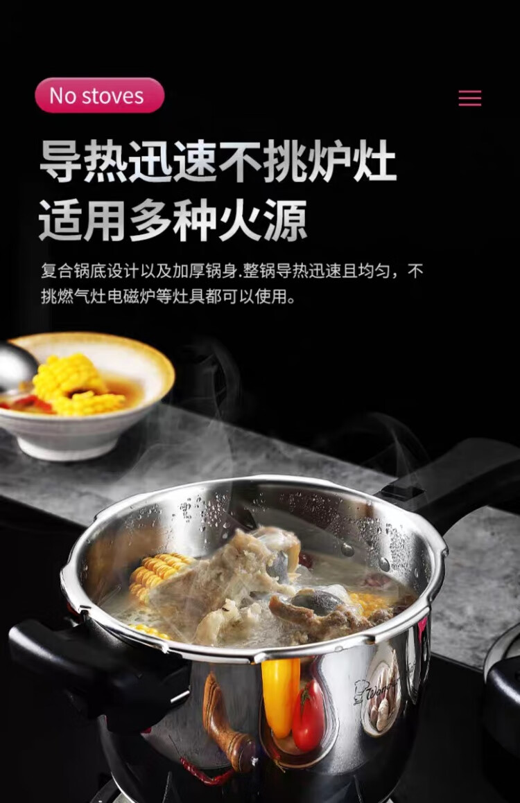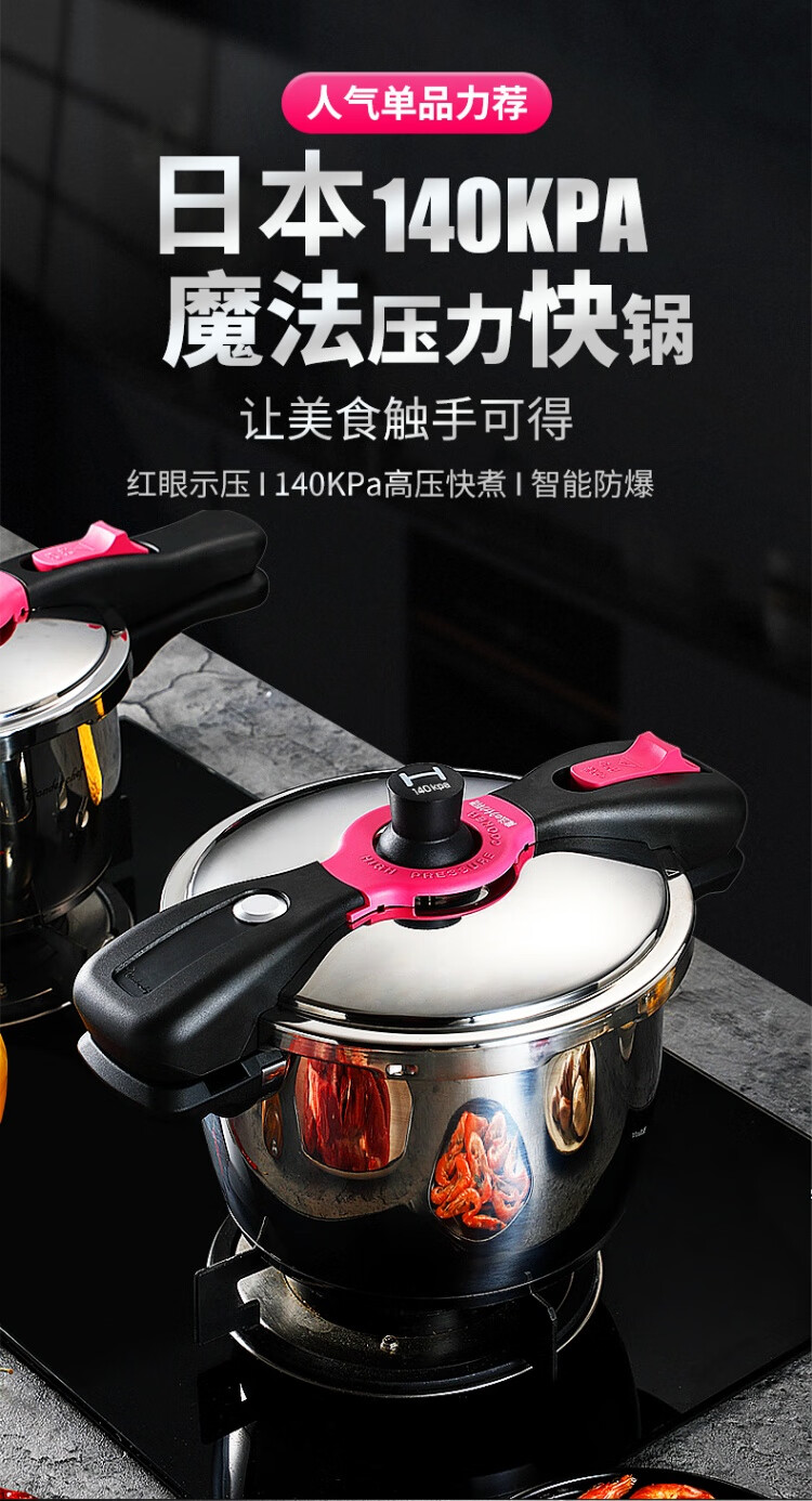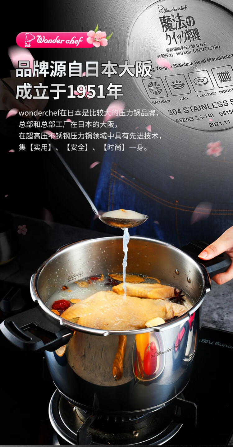 Wanda Xiangfu imported from Japan 140KPA pressure cooker household 304 stainless steel pressure cooker explosion-proof 5.5L induction cooker universal 5.5L magic pot (2-6 people capacity)
