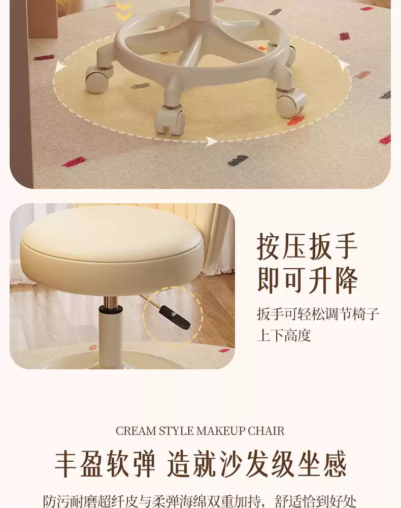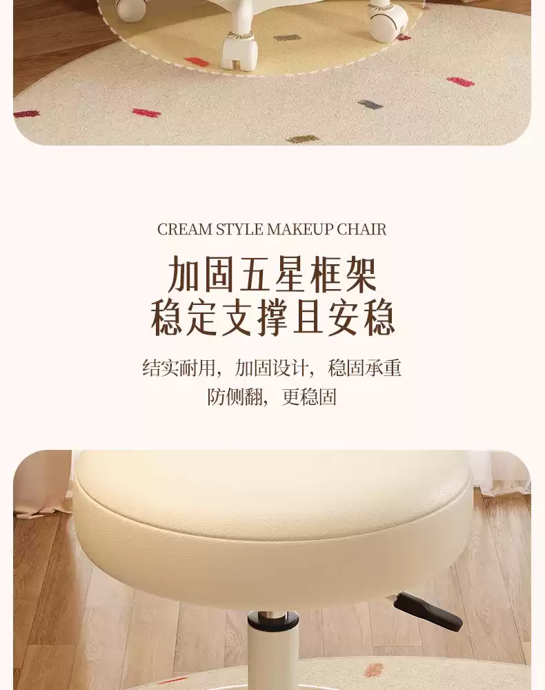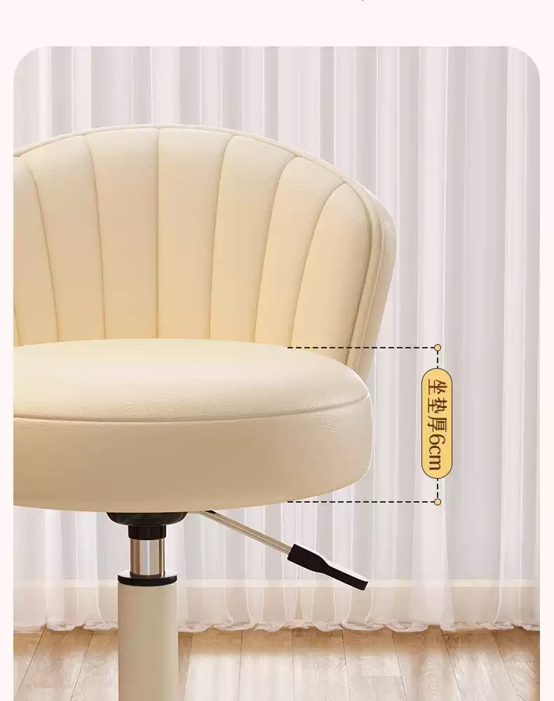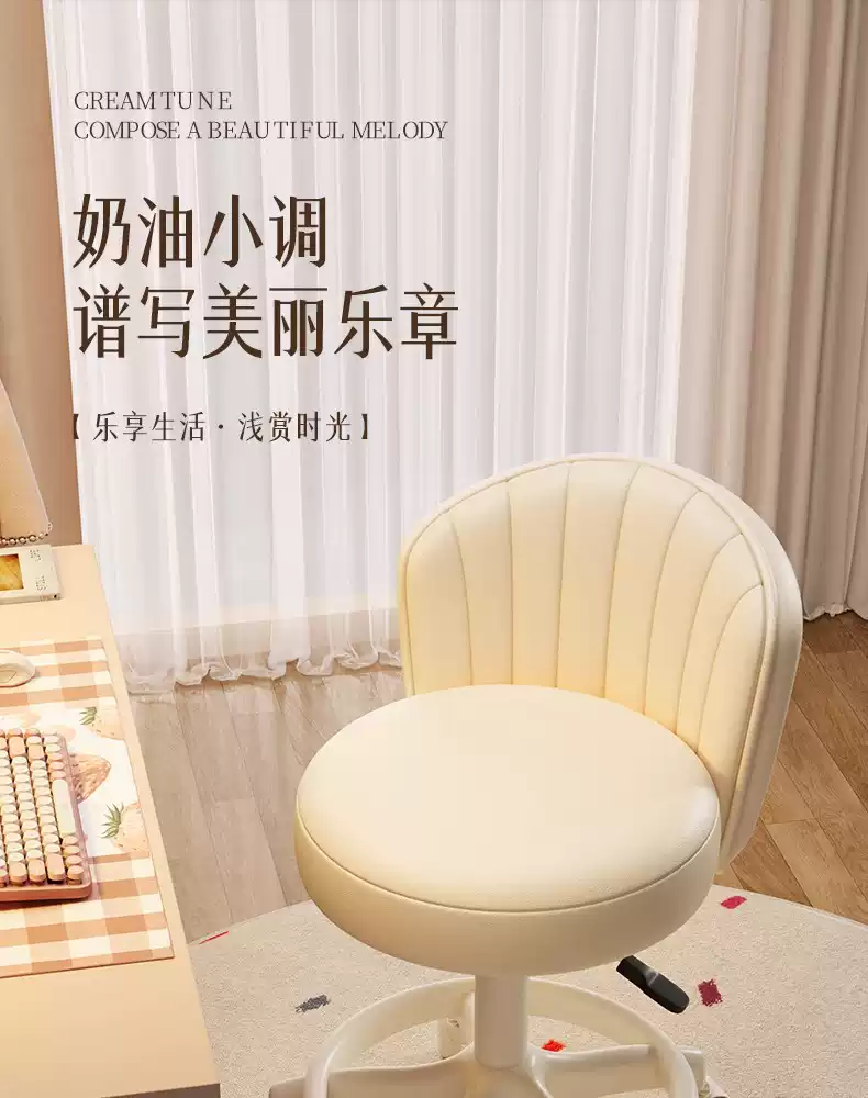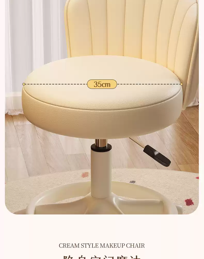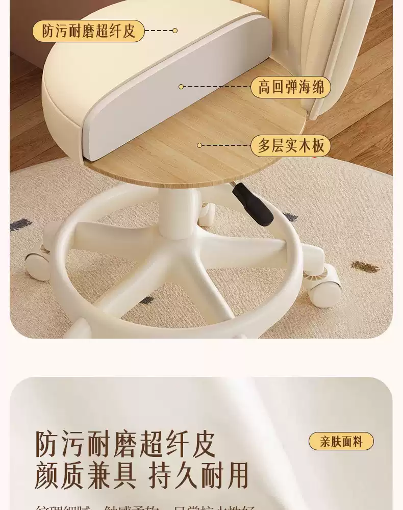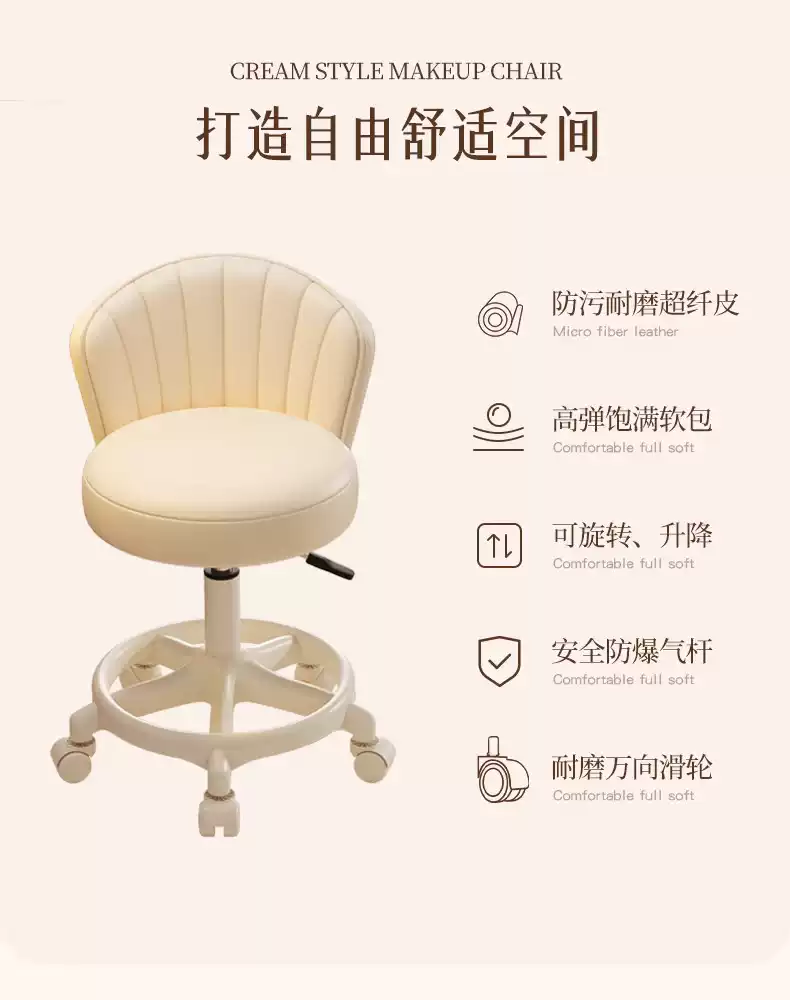 Fantasy Cream Style Makeup Chair Home Chair Backrest Dressing Stool Girls' Bedroom Lift Swivel Chair Manicure Stool Pulley Standard Five Claws Beige - Three-Proof Microfiber Leather - Anti-Protection
