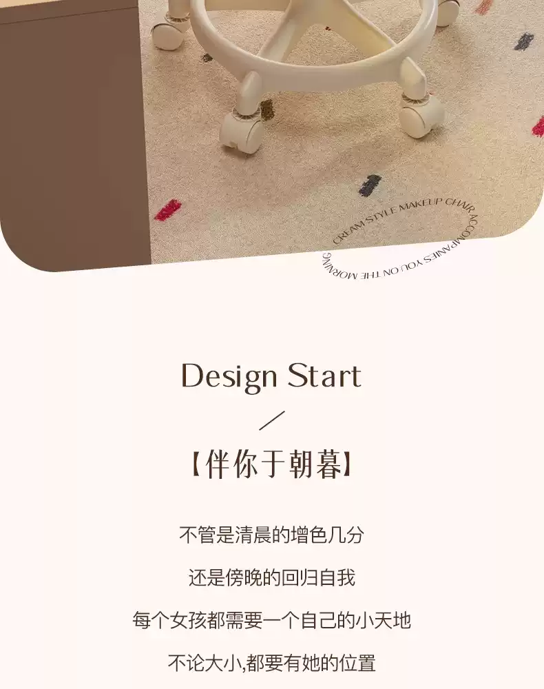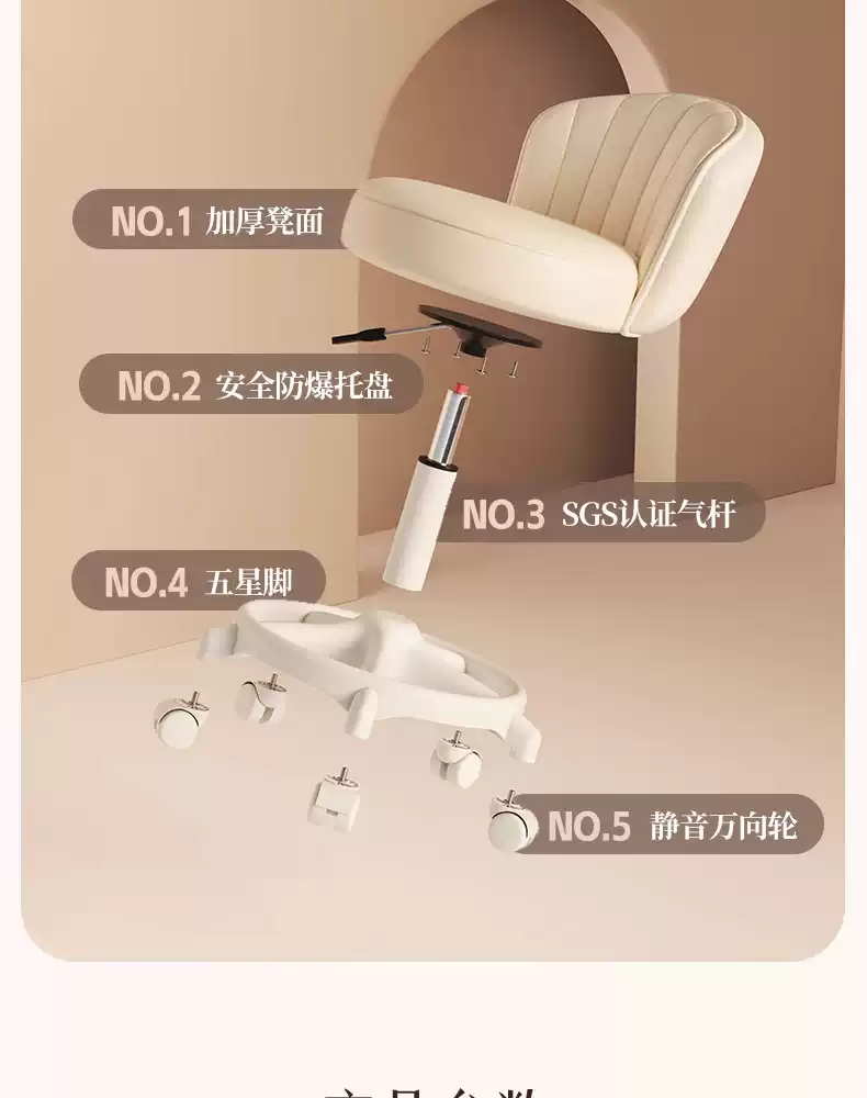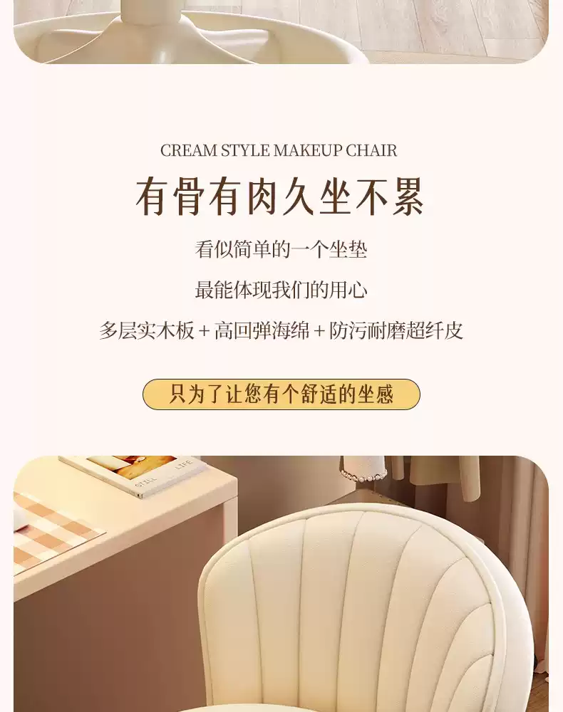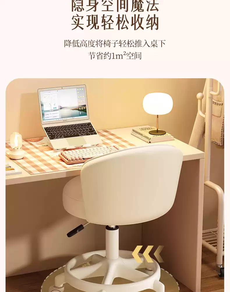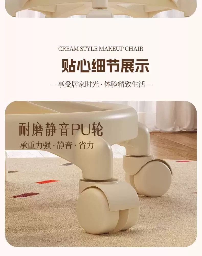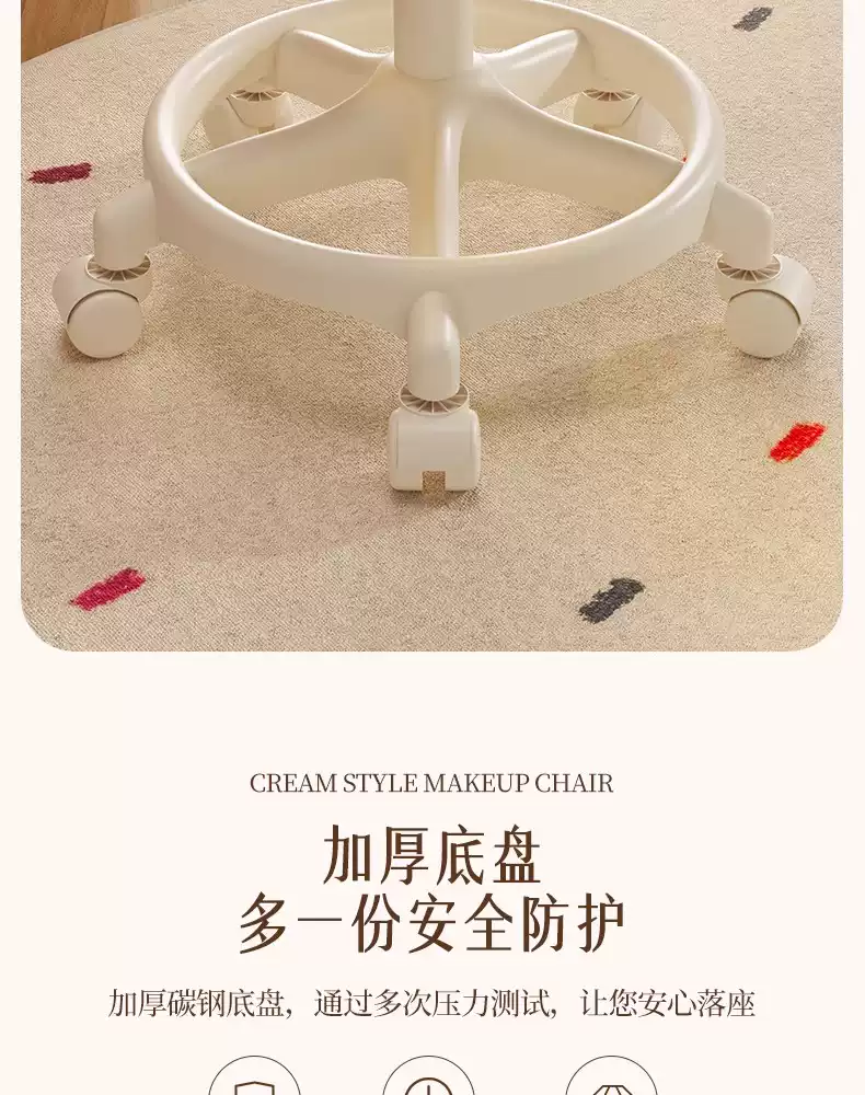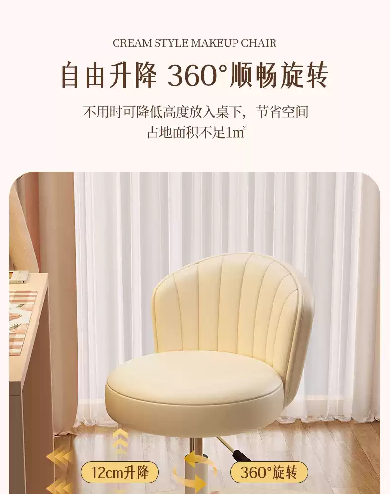 Fantasy Cream Style Makeup Chair Home Chair Backrest Dressing Stool Girls' Bedroom Lift Swivel Chair Manicure Stool Pulley Standard Five Claws Beige - Three-Proof Microfiber Leather - Anti-Protection