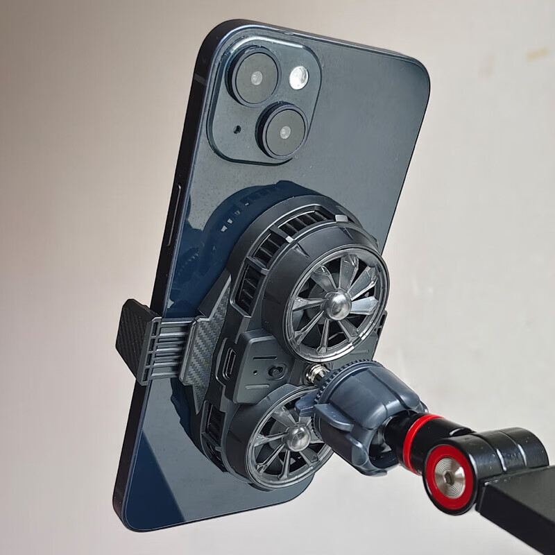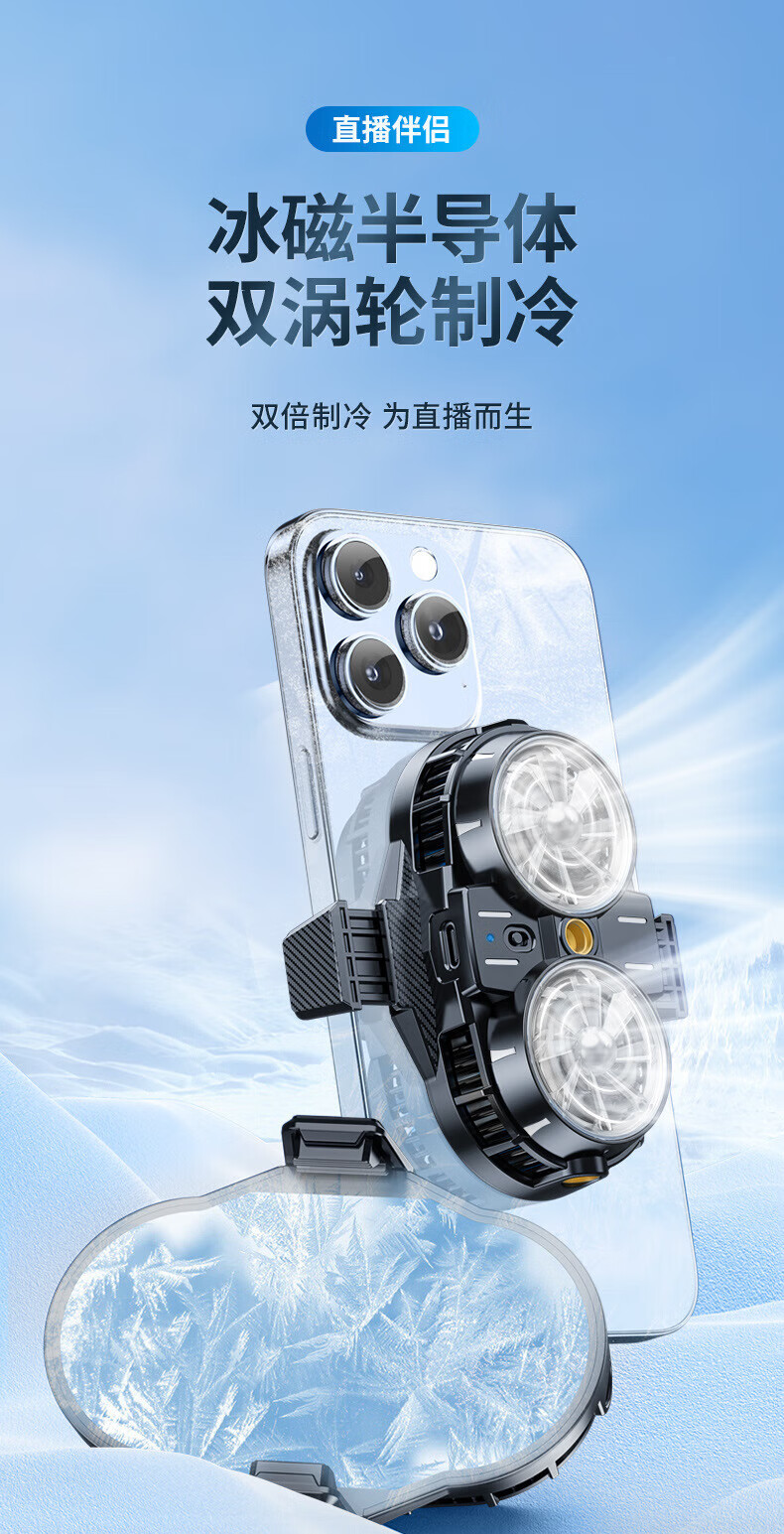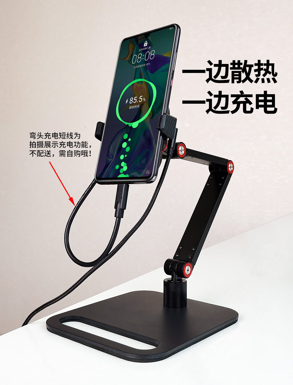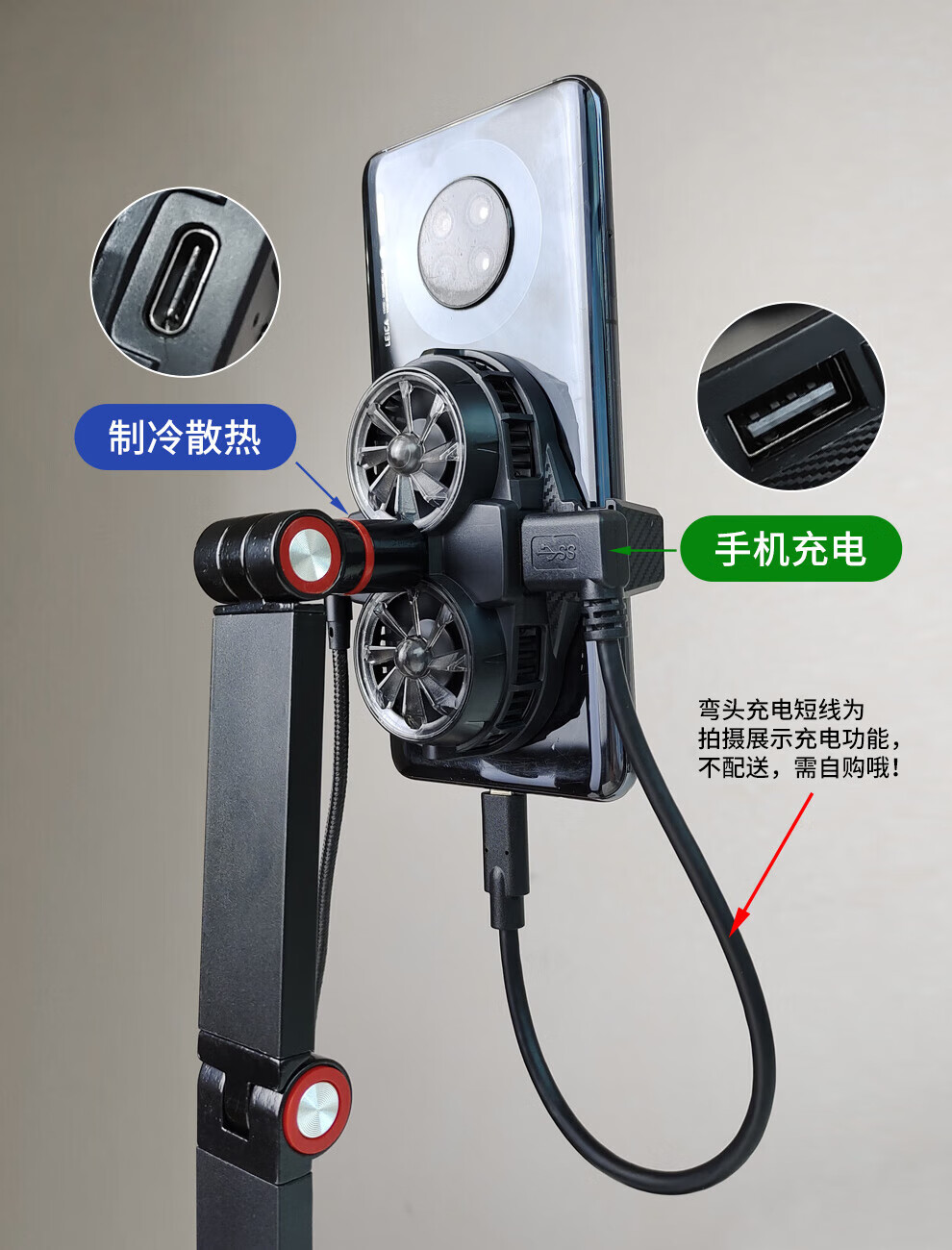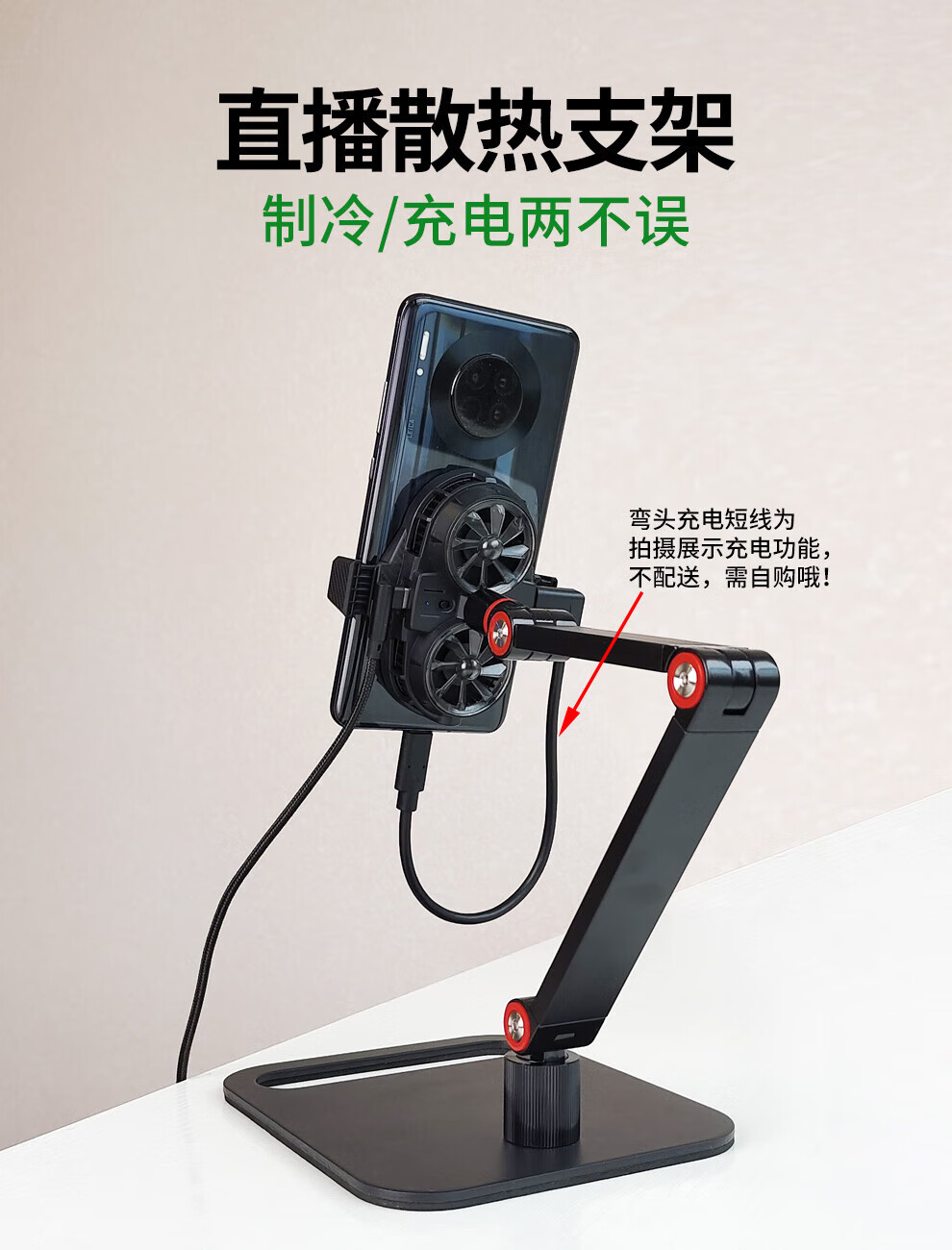 POLIGU live broadcast mobile phone holder with semiconductor radiator cooling artifact rechargeable refrigeration desktop silent overhead shot 360 upgraded aluminum alloy double-arm holder + semiconductor radiator