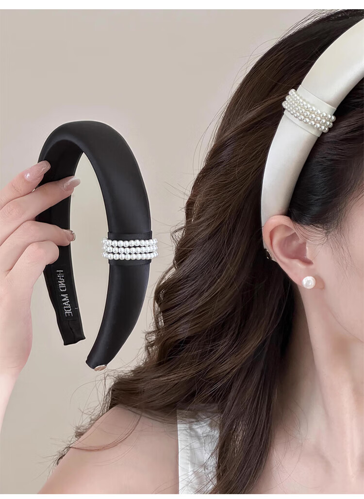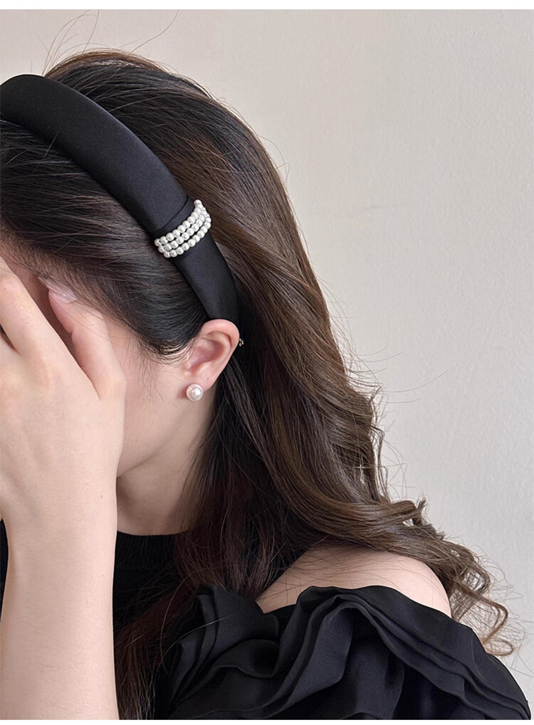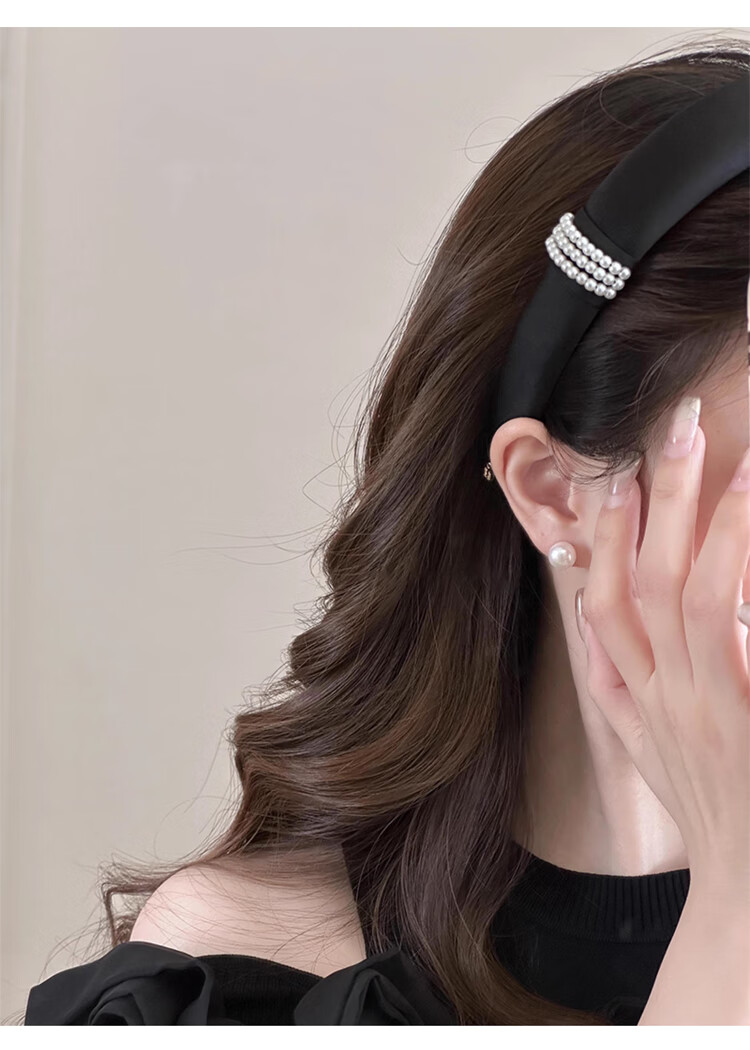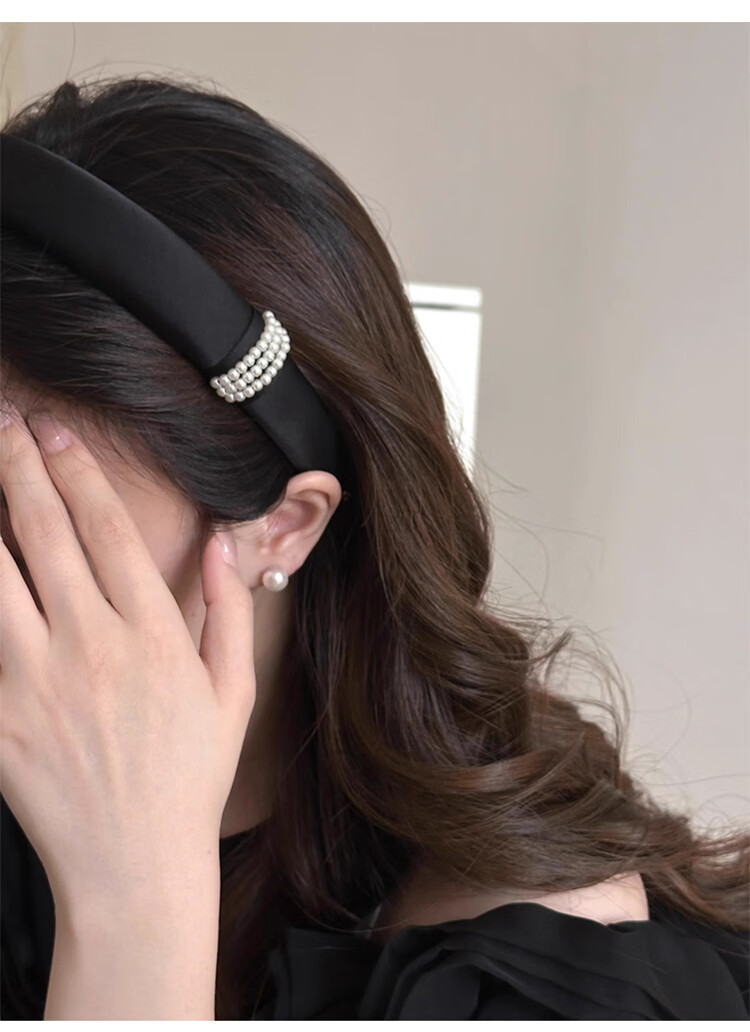 Lnieer allows me to dazzle Zhao Lusi's same style black pearl headband for women 2025 new hot style light luxury and high-end headband black pearl headband same as Ruth's