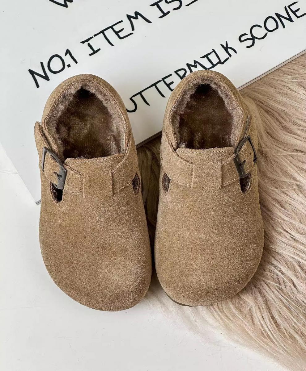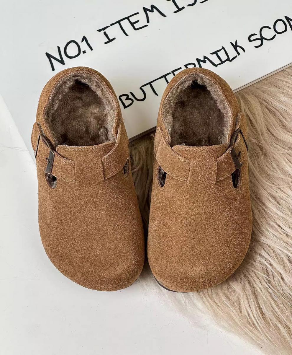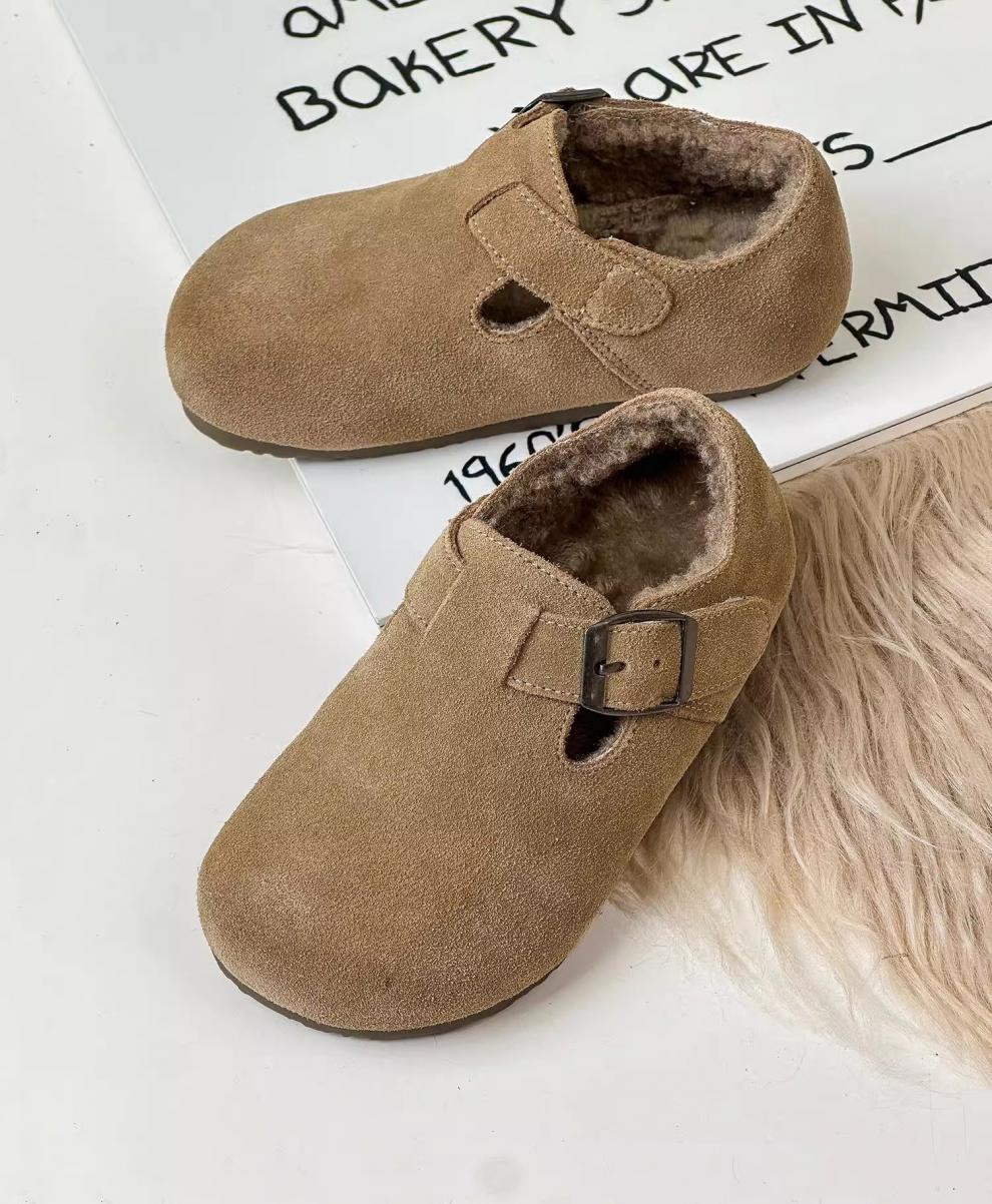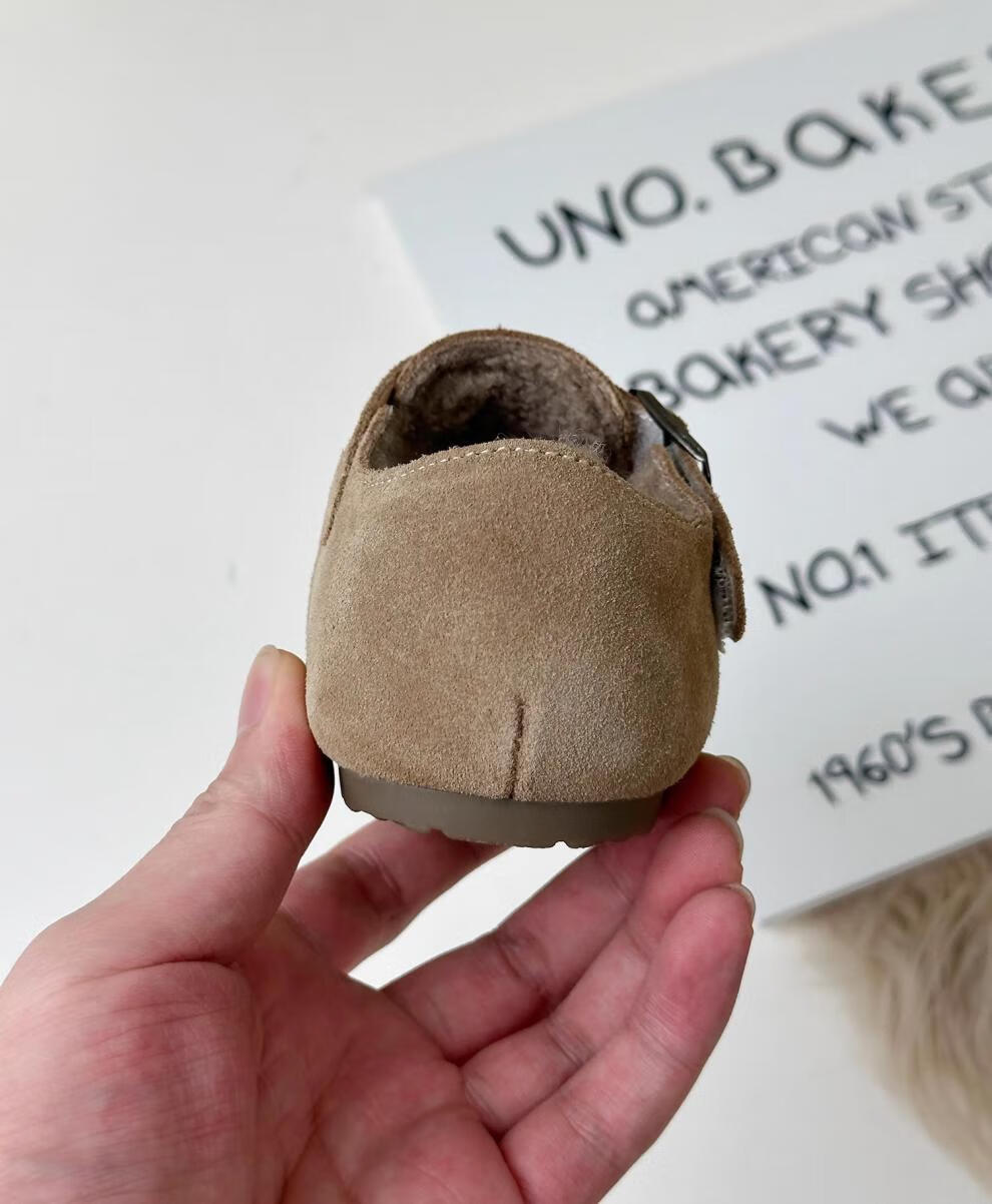 Belle Tread Korean style children's shoes 2026 autumn and winter new style children's velvet Birkenstock shoes nubuck leather second-cotton shoes beanie shoes cotton shoes camel plus velvet 21