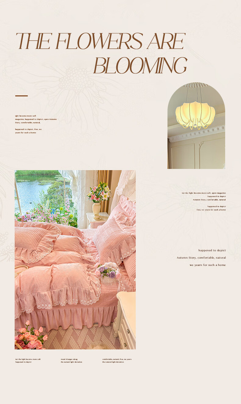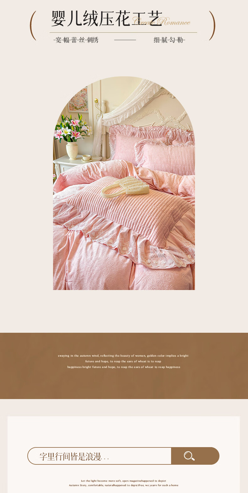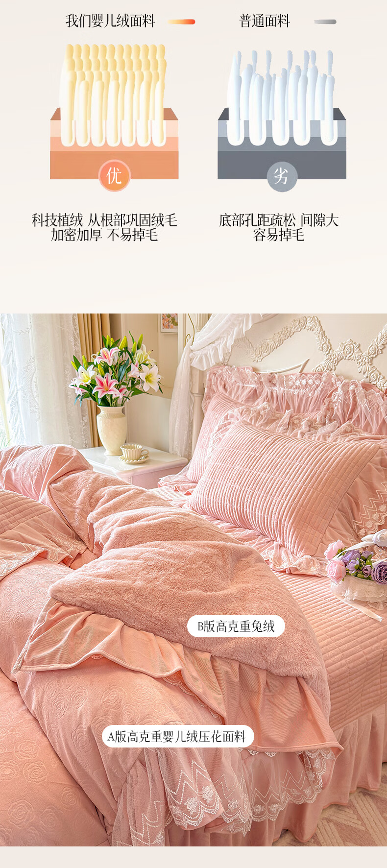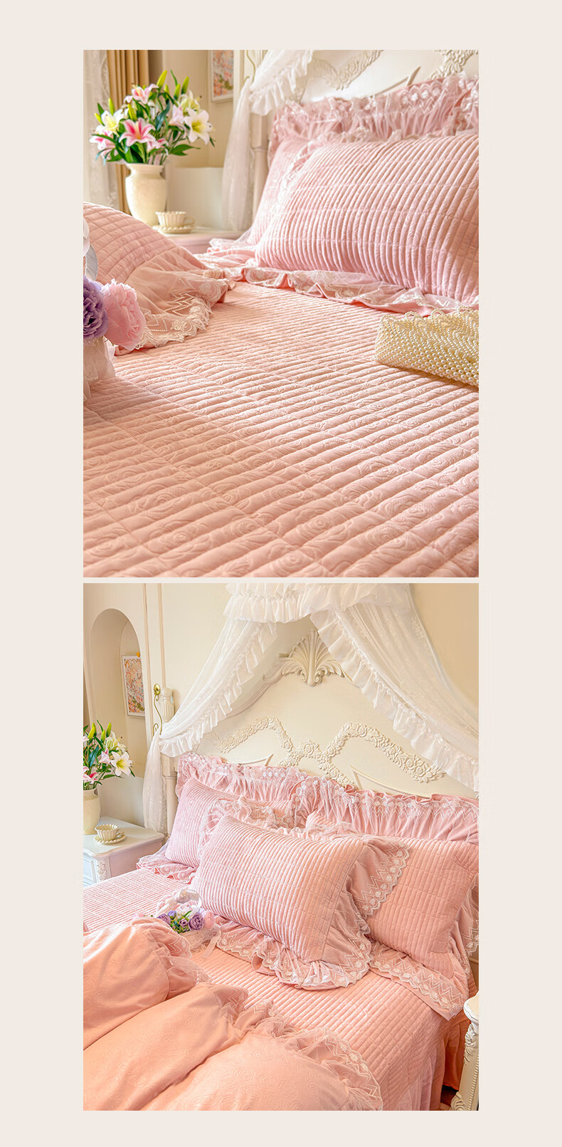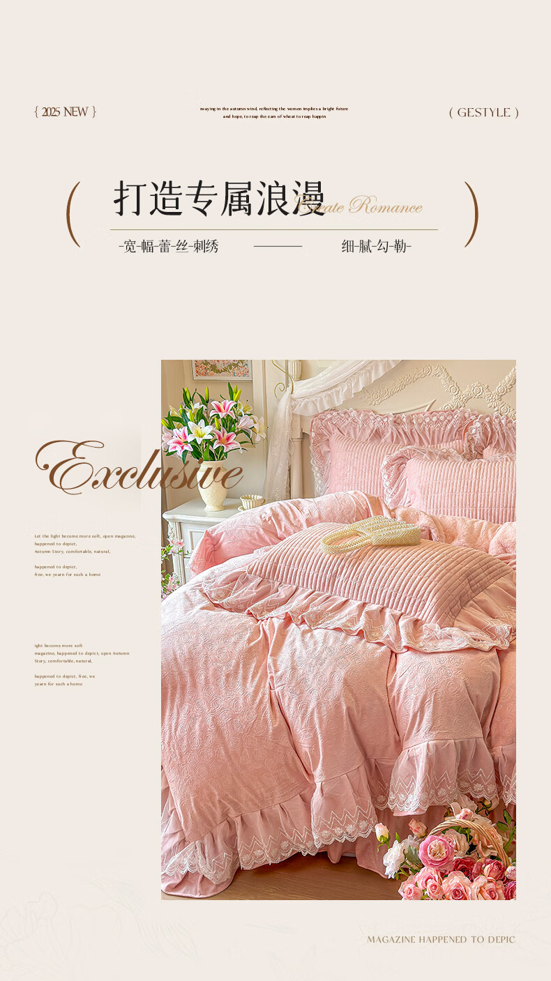 Yalu Korean lace baby velvet bed skirt four-piece set winter double-sided milk velvet warm bed sheet quilt cover three-piece set Chanel Garden-Pink Jade bed cover 1.5m four-piece set