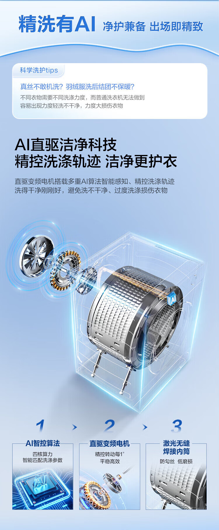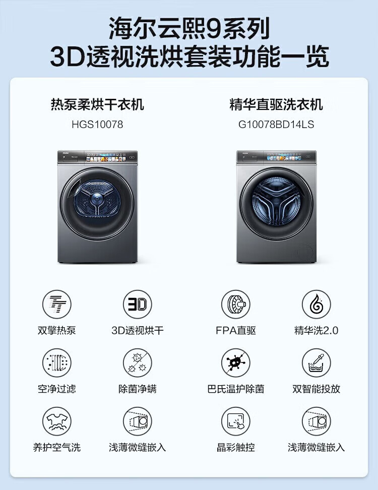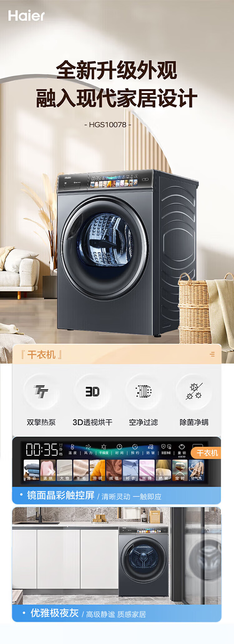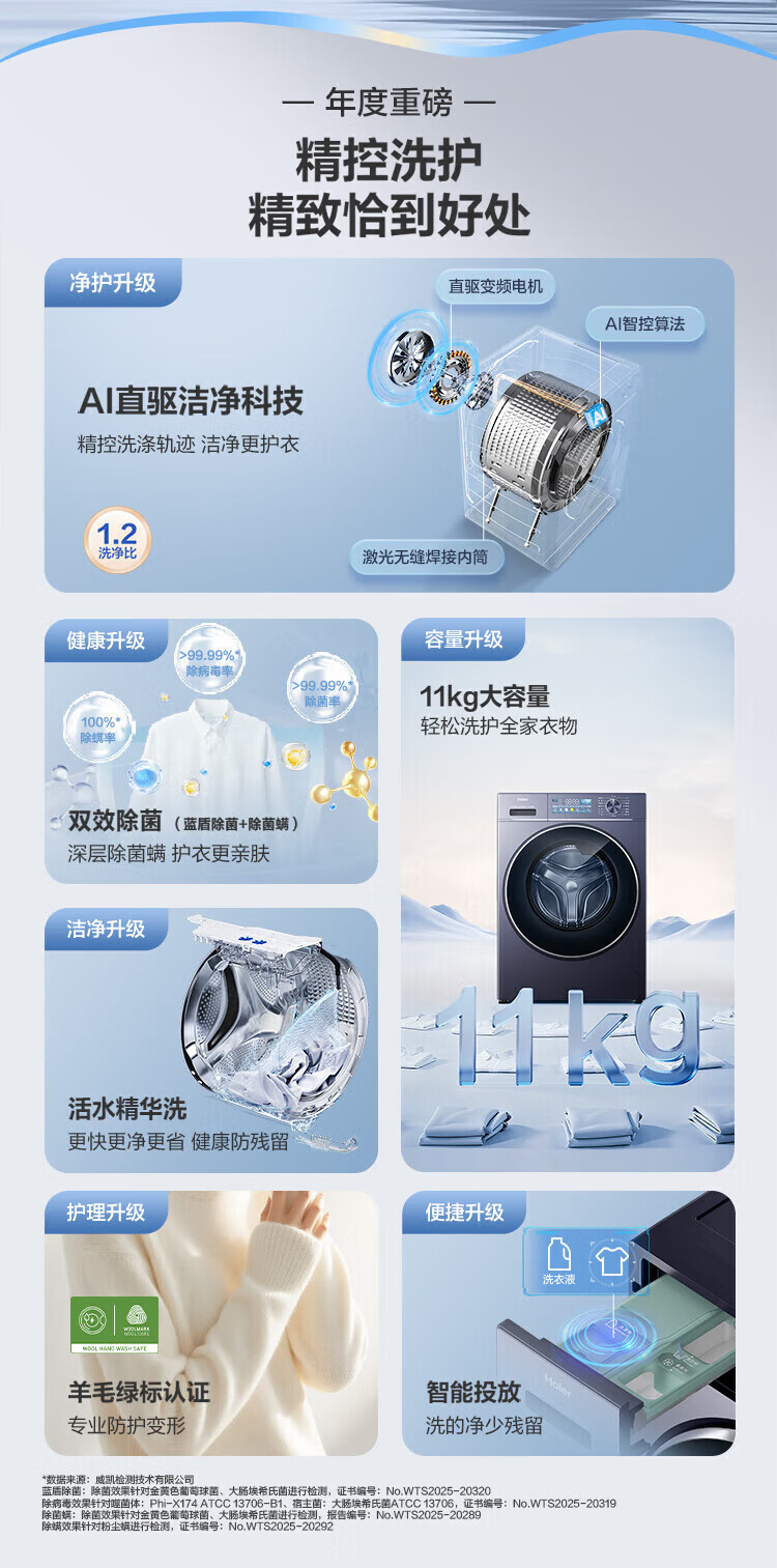 海尔(Haier)【云溪4.0直驱】78E超薄11公斤AI变频滚筒洗衣机大容量精华洗智能投放家用全自动双效除菌螨双喷淋 【1.20高洗净比】XQG110-BLE78E 滚筒