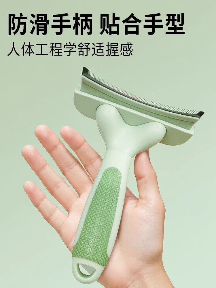 Pengyi cat hair thinner, cat hair comb to remove floating hair, dog hair, fine-tooth cleaning, pet-specific hair knotting comb, cat comb, fine-tooth thinning, curved matcha green, large size 1