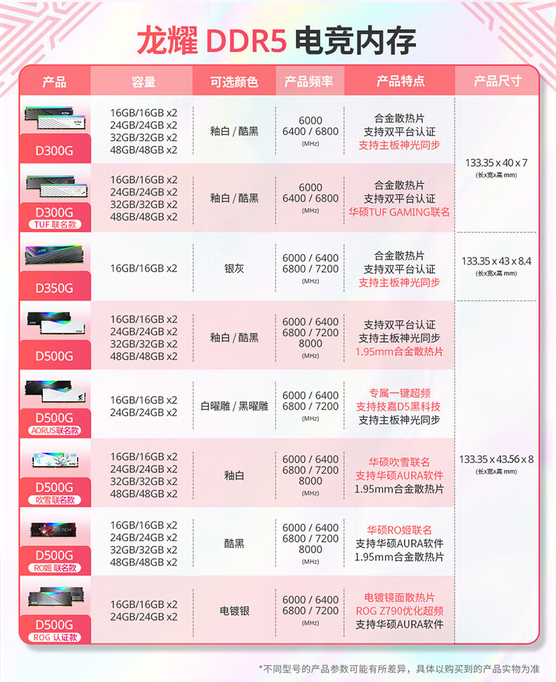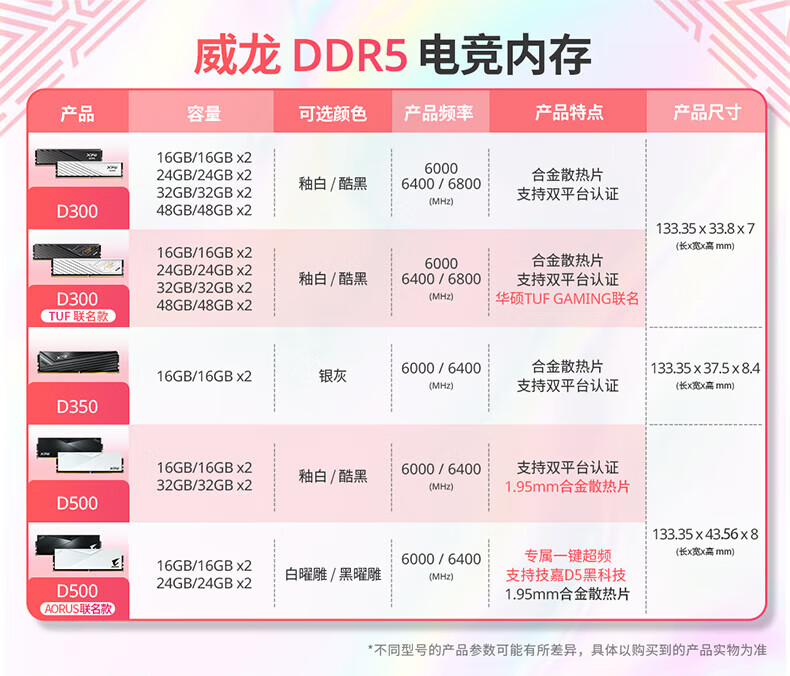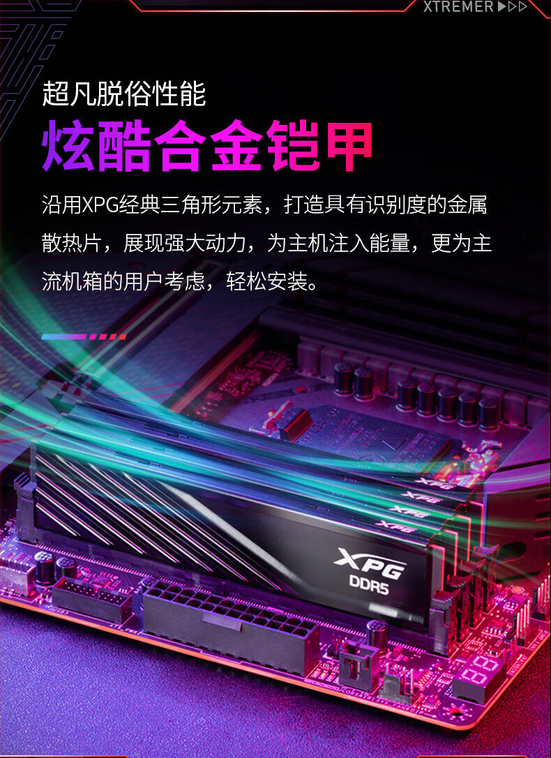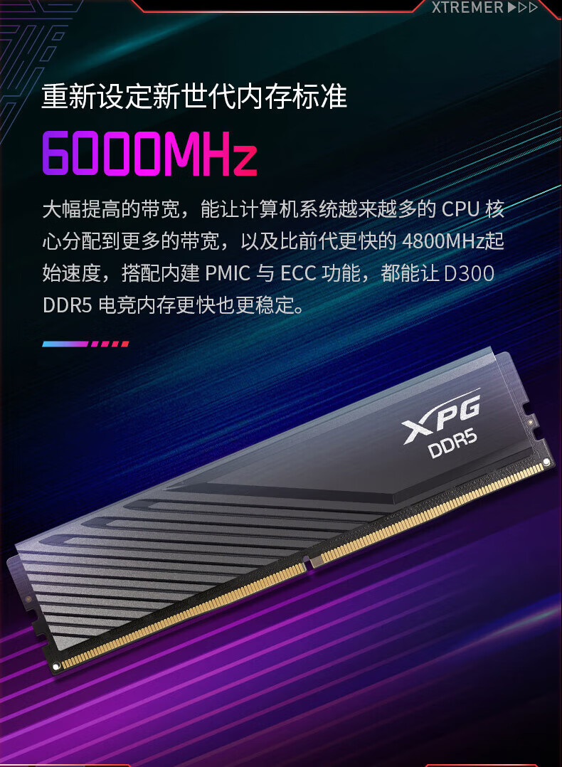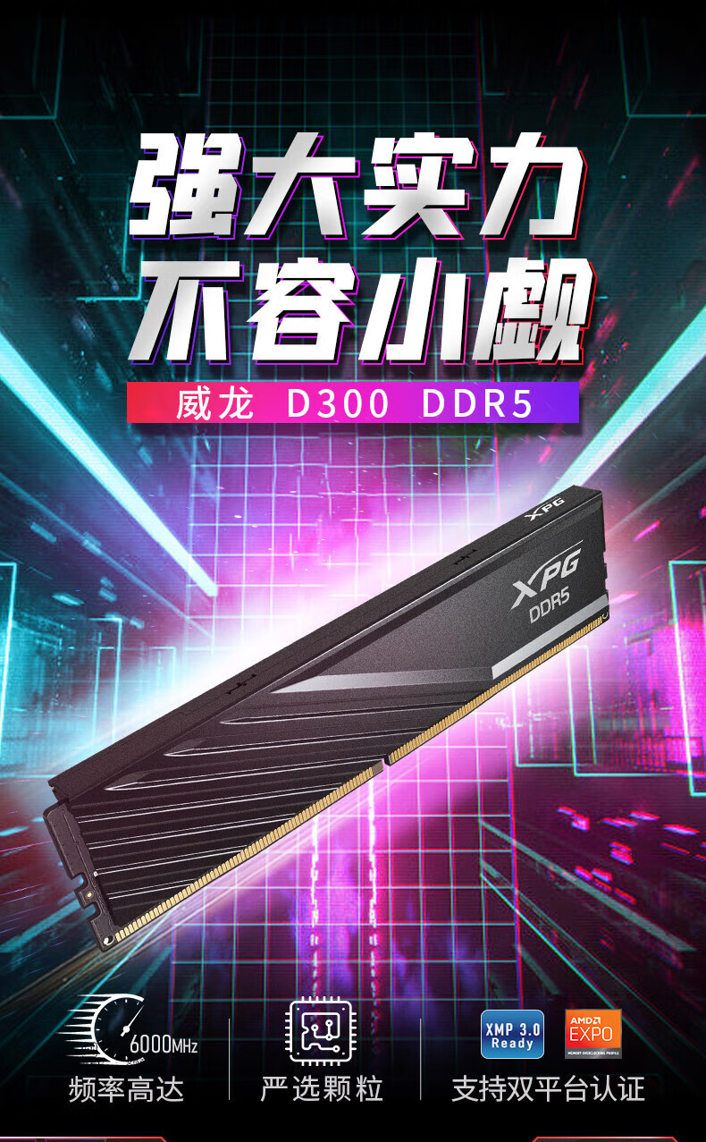 ADATA 24G/48G (24G*2) set DDR5 6000 frequency AI computer accessories desktop memory bar Longyao D500G RGB light bar C28 timing Hynix new Mdie D500G/black light bar 6000 24G*2 C28