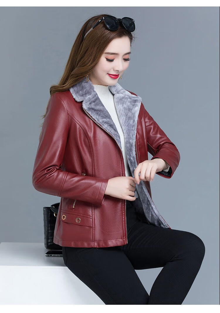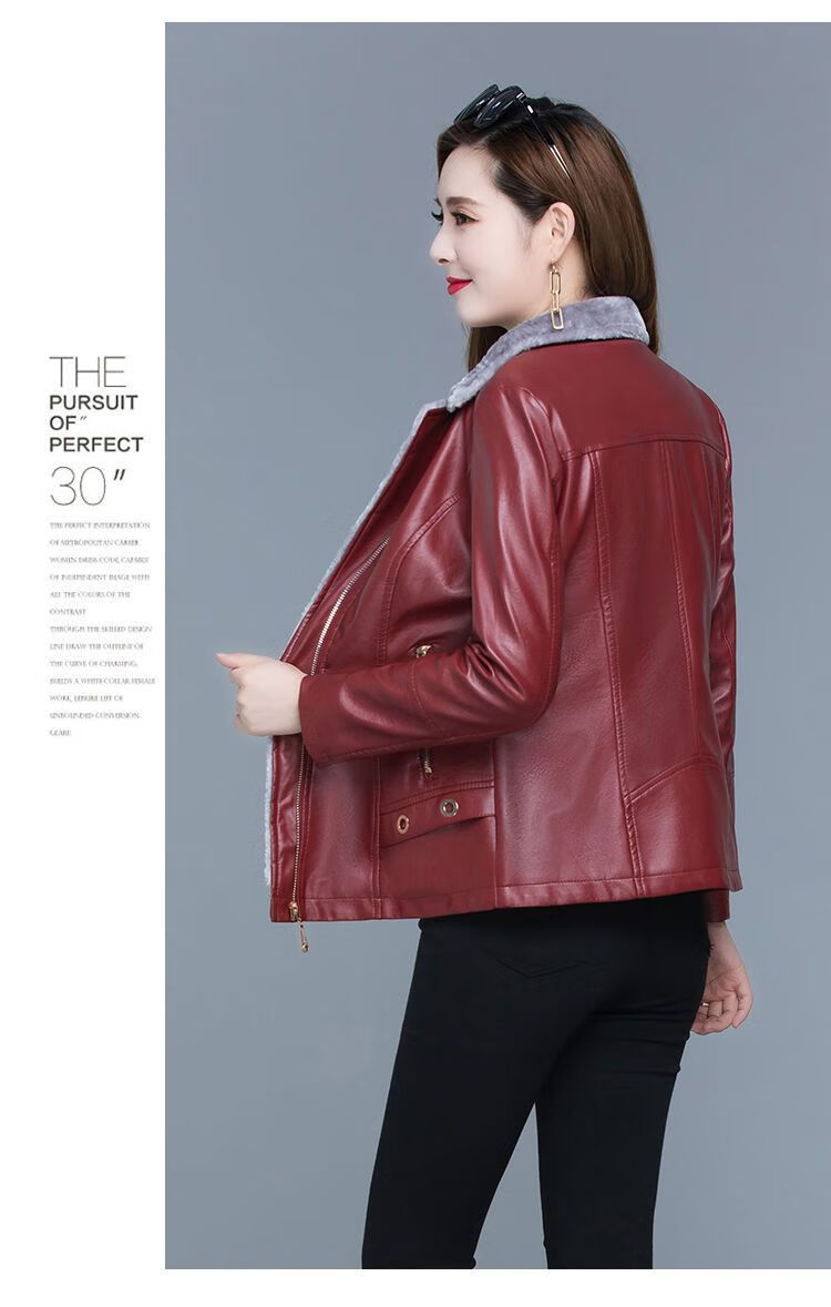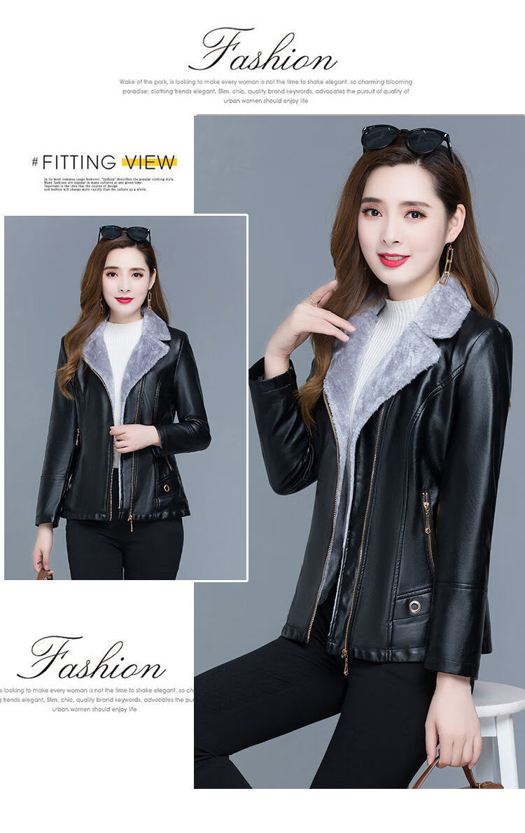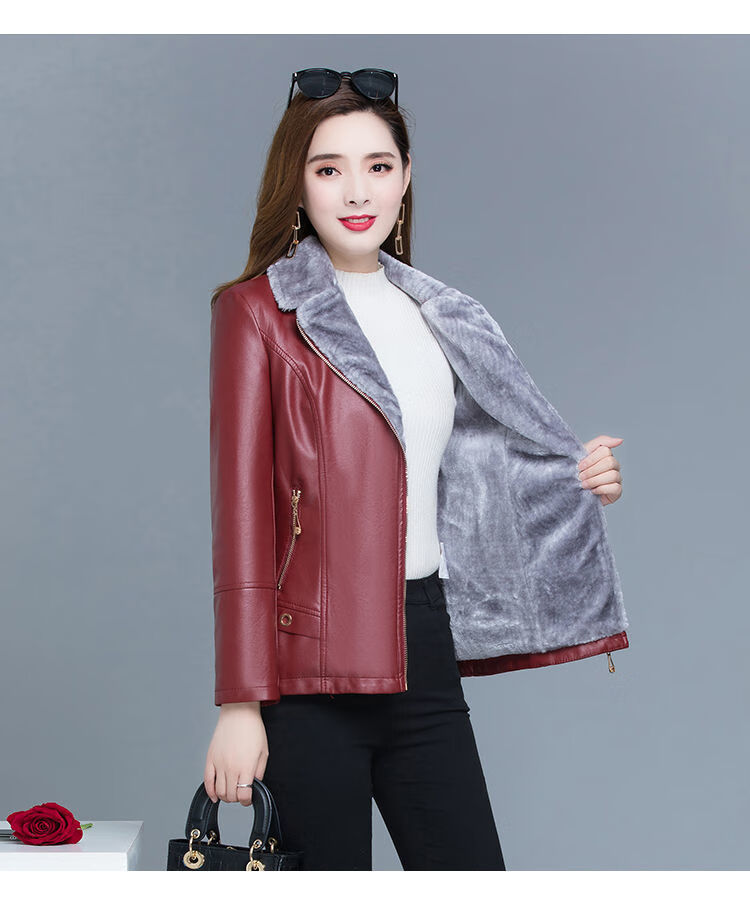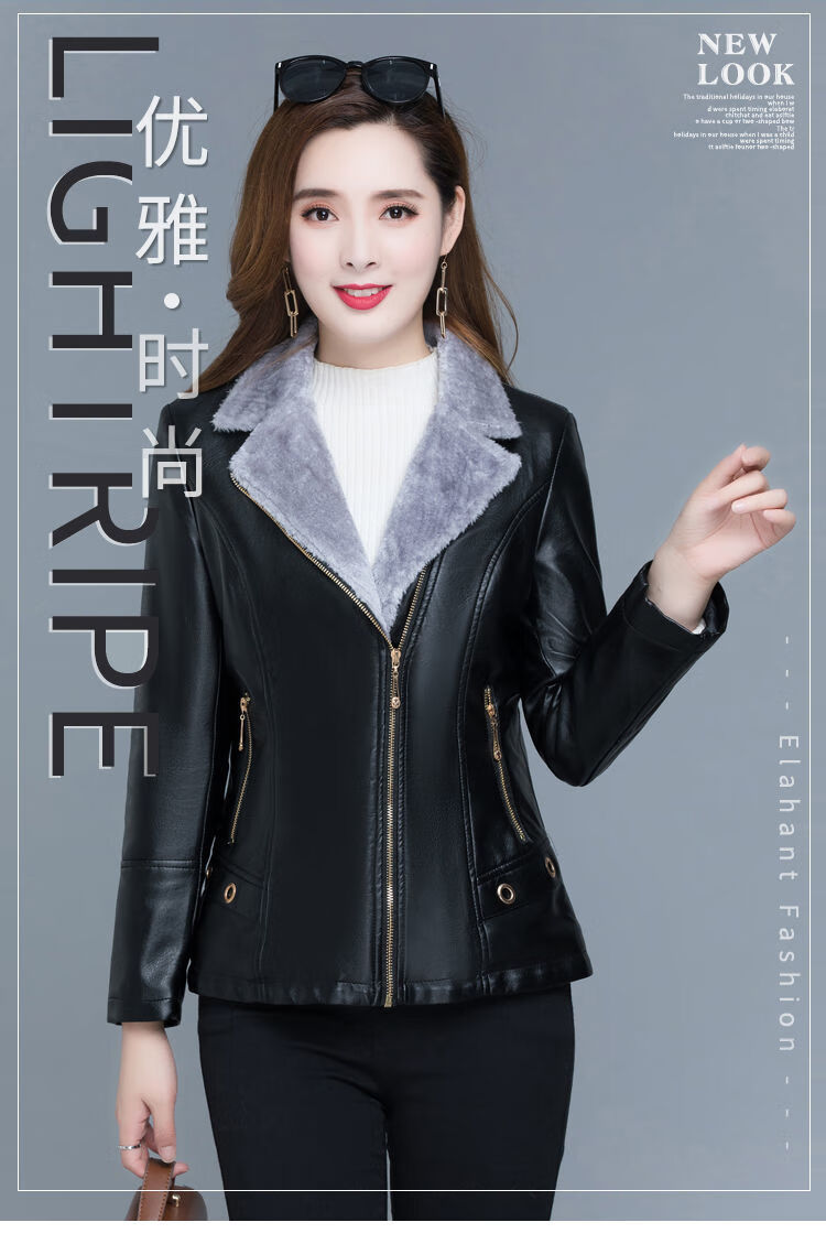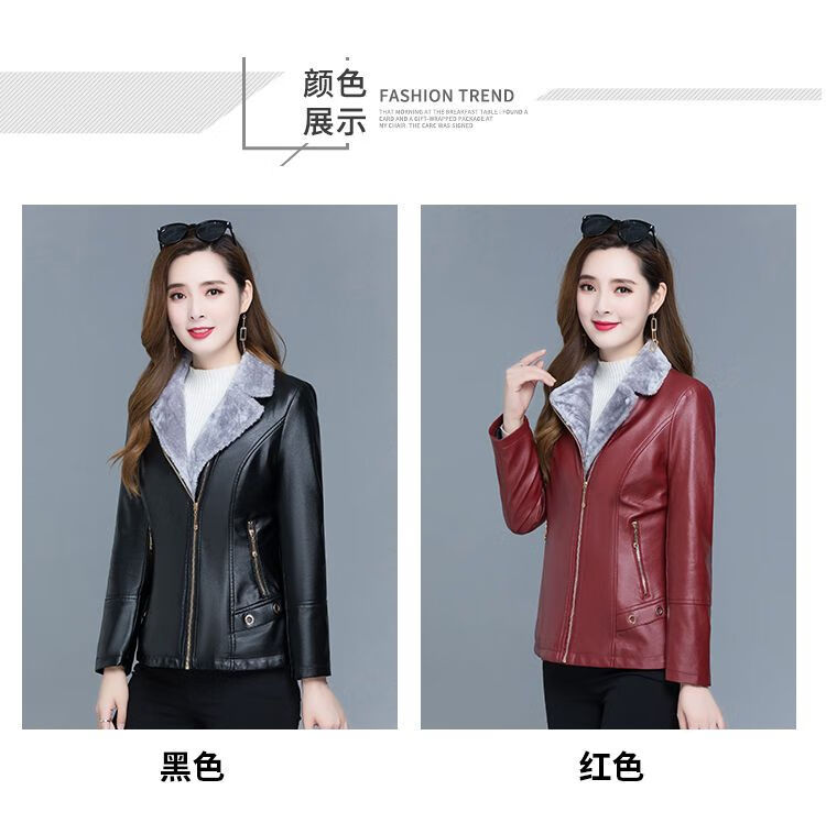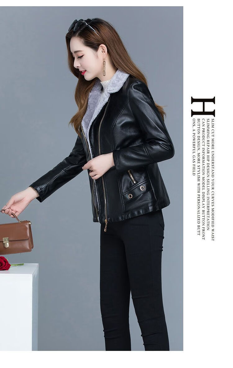 Playboy (PLAYBOY) leather jacket women's velvet thickening short Korean version slim and slim 2025 autumn and winter new fur all-in-one mother's wear Ruiyan black short velvet thickened 7XL 145-160Jin Jin equals 0.5 kg