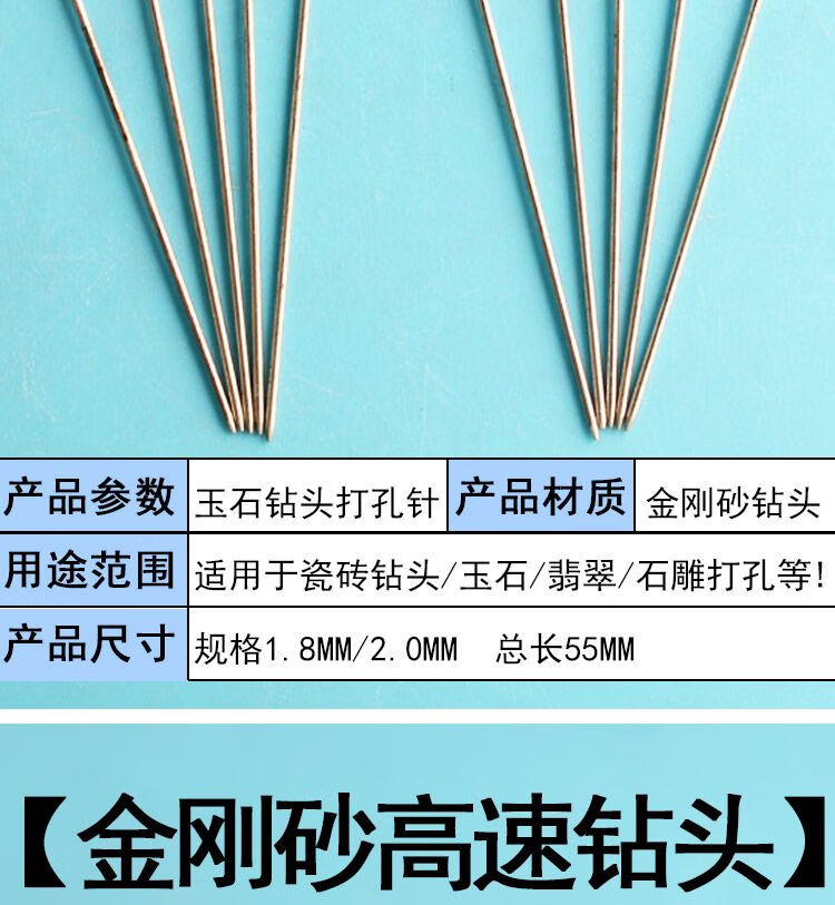 Shushe tile drilling bit jade jade high-speed drilling needle stone carving emery hollow drum repair drilling needle drilling needle 1.8MM 10 pieces
