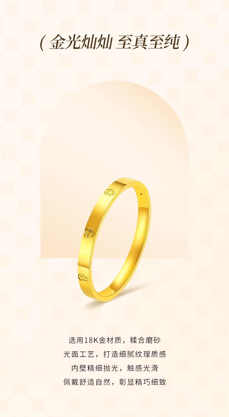 CHINA GOLD 18K gold ring with diamond pattern, simple plain ring, jewelry, Valentine's Day birthday gift for girlfriend and wife, 18K gold diamond pattern ring, about 0.3g, size 18