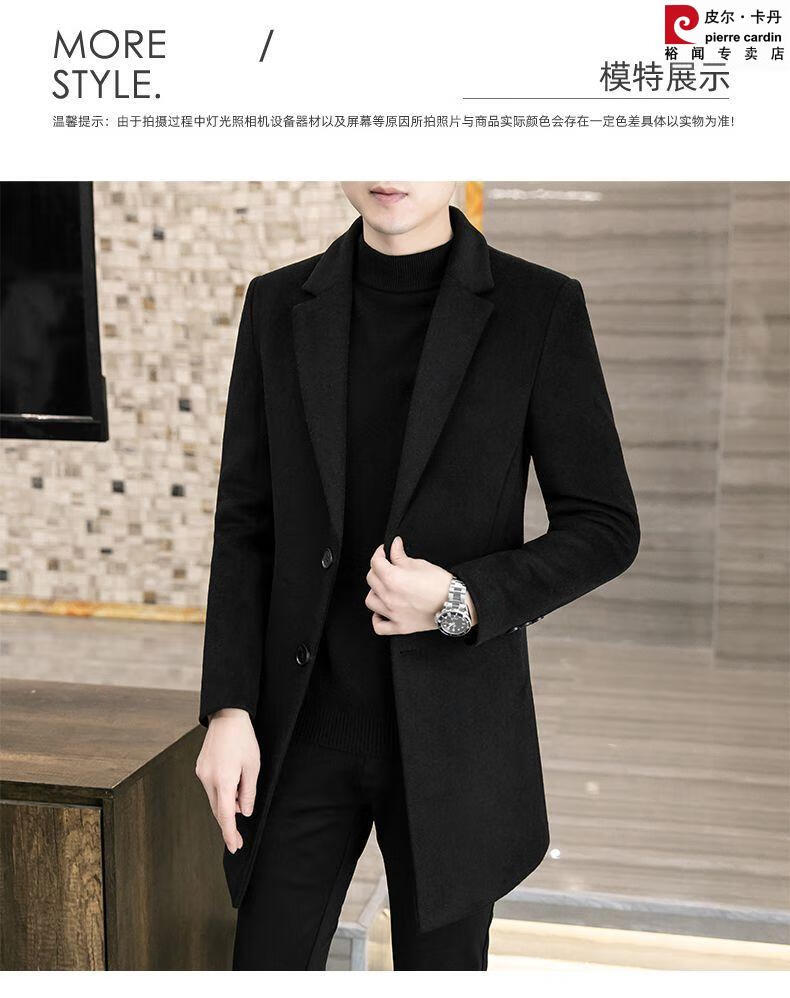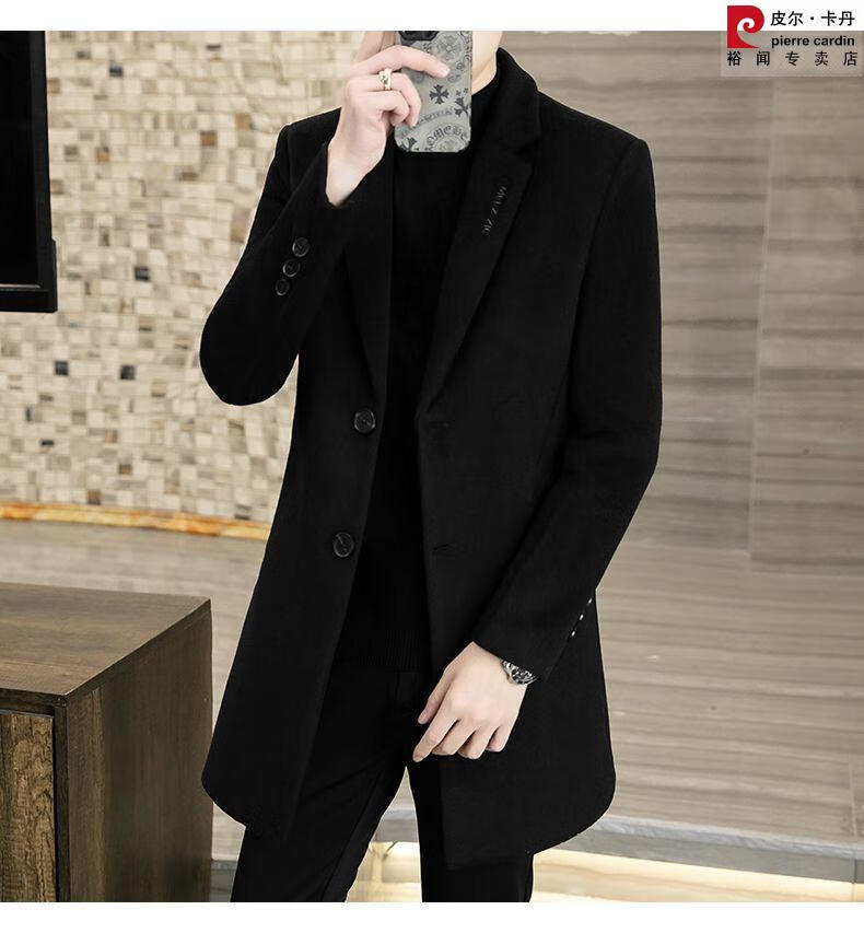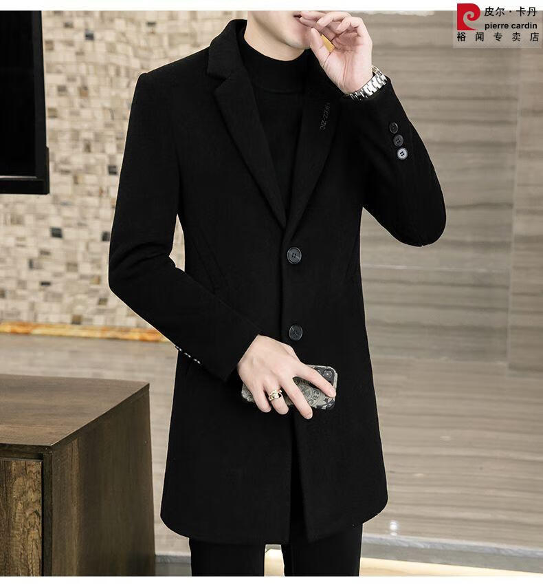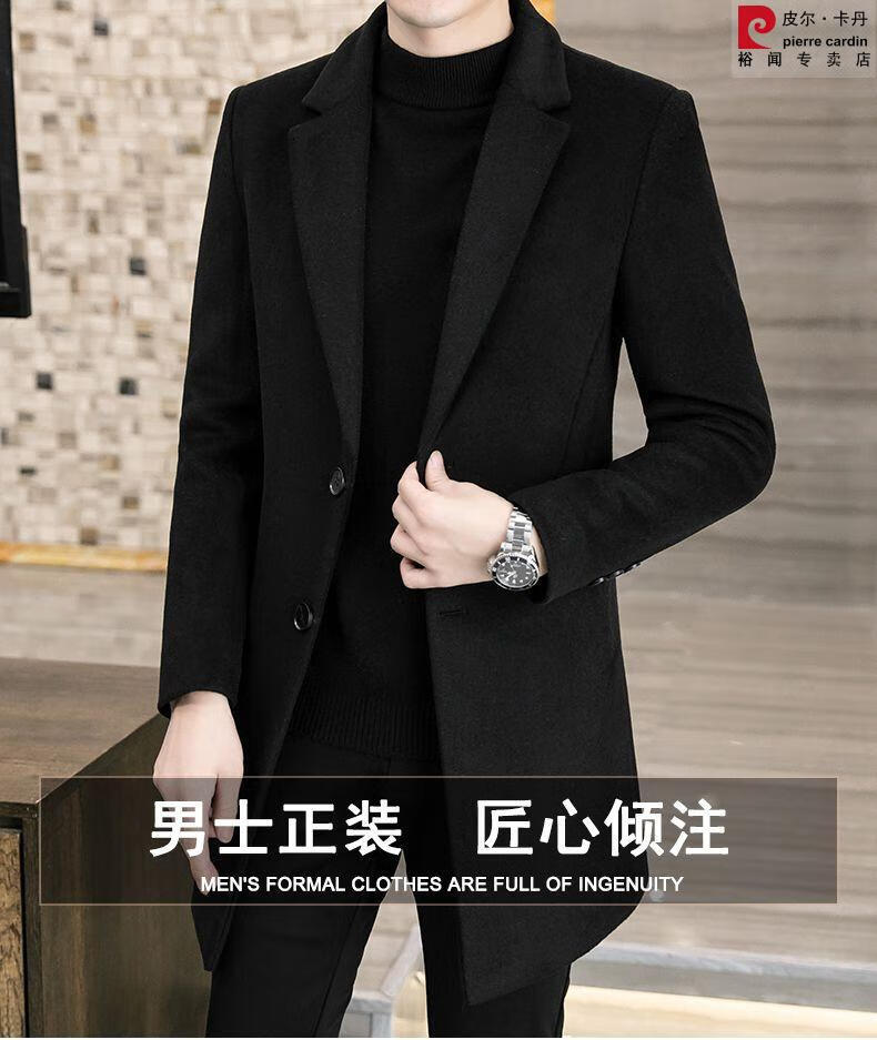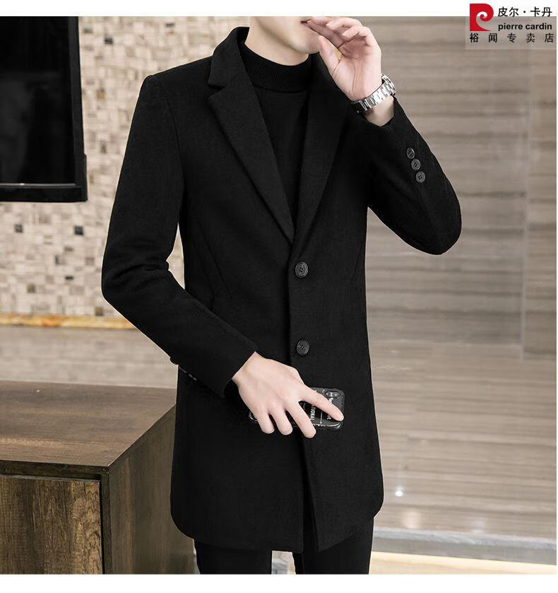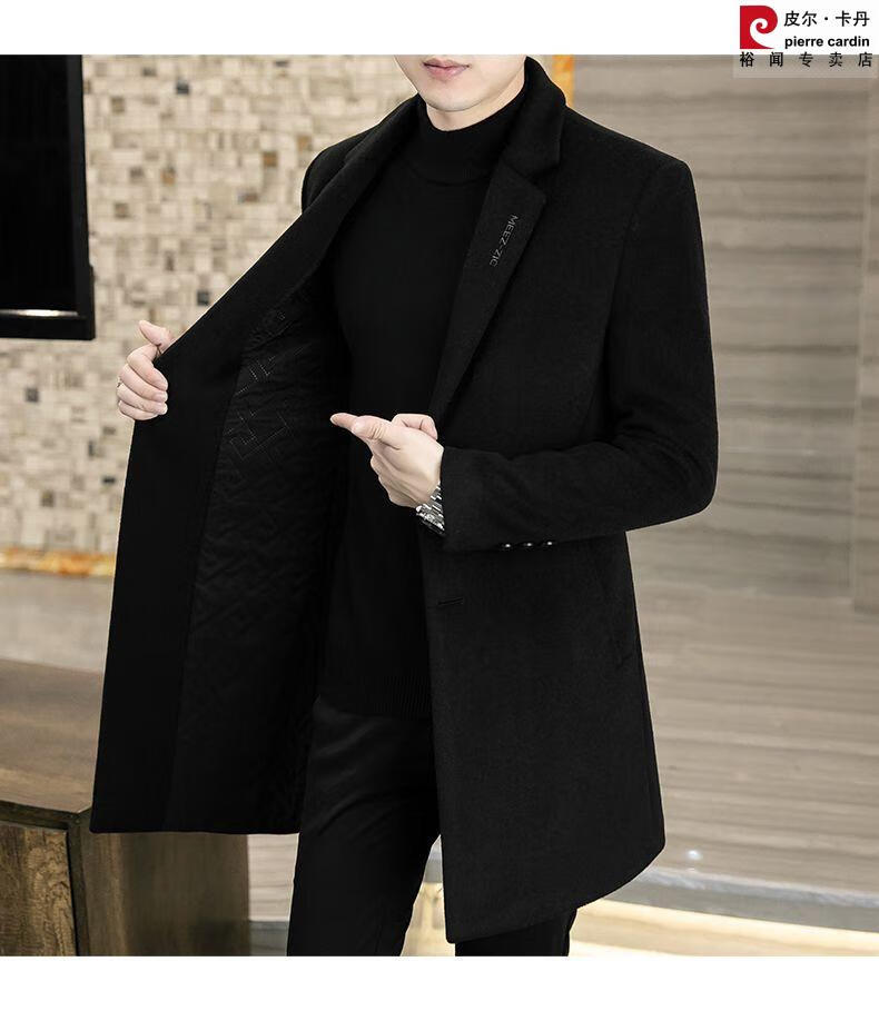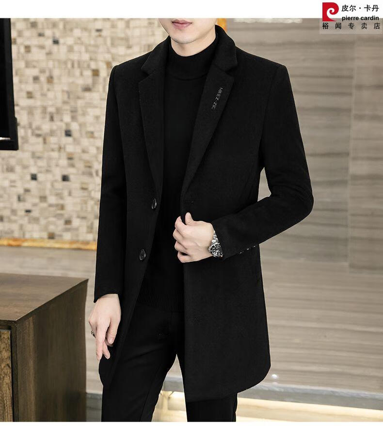 皮尔卡丹(pierre cardin)高端品牌羊毛大衣男士韩版中长款加厚风衣秋冬季时尚毛呢男装外套 黑色 2XL (140-155斤)