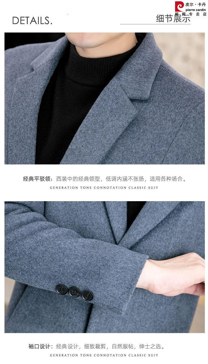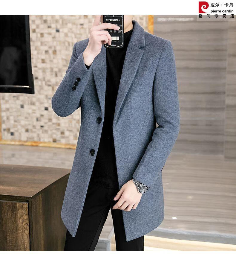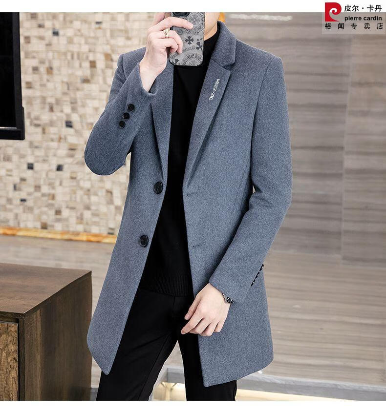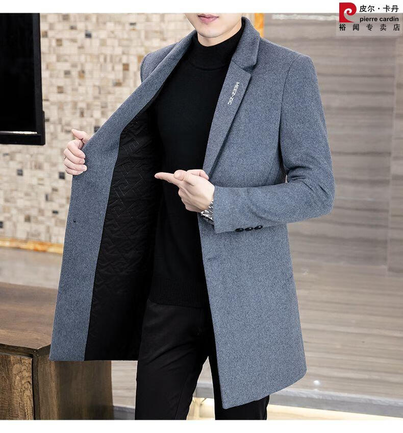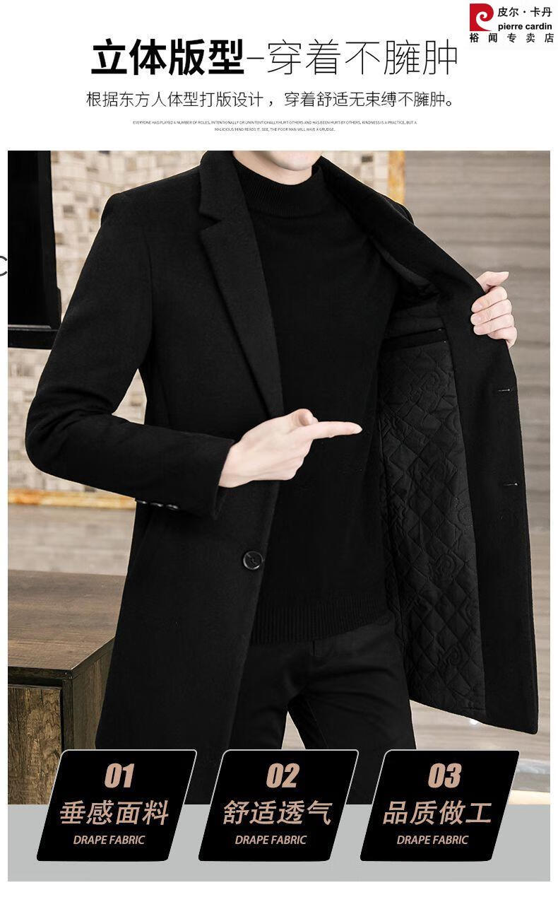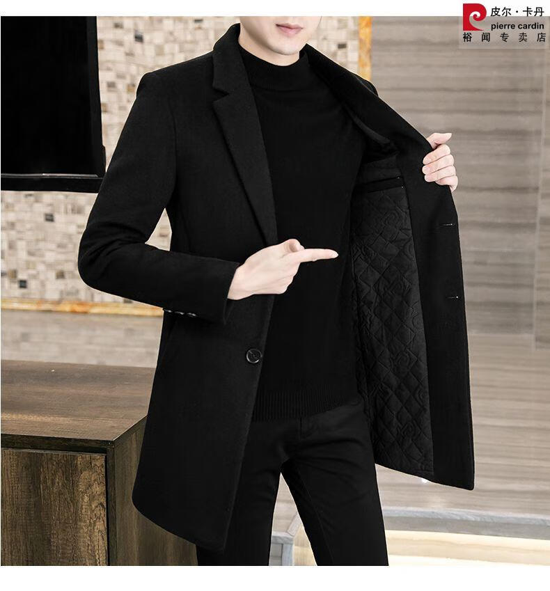 皮尔卡丹(pierre cardin)高端品牌羊毛大衣男士韩版中长款加厚风衣秋冬季时尚毛呢男装外套 黑色 2XL (140-155斤)