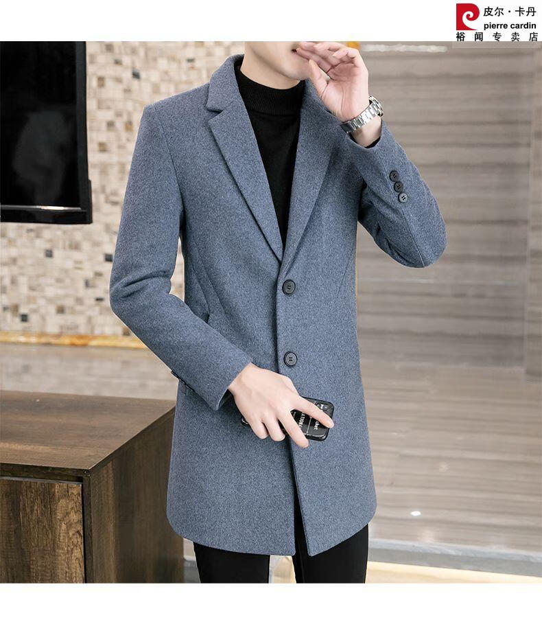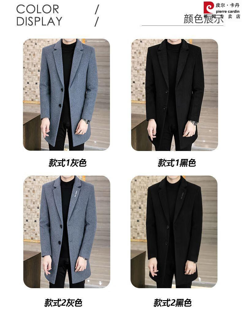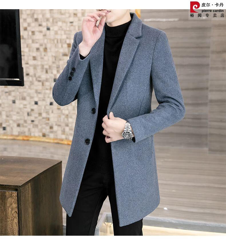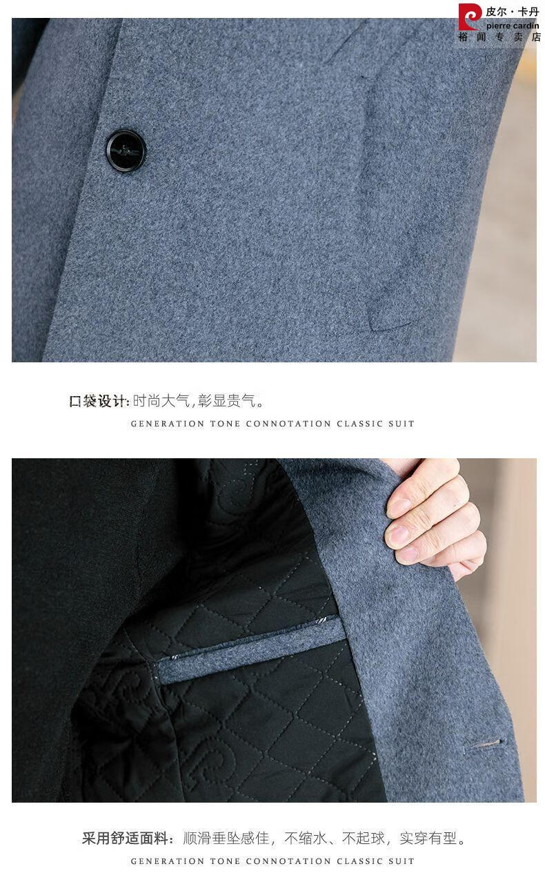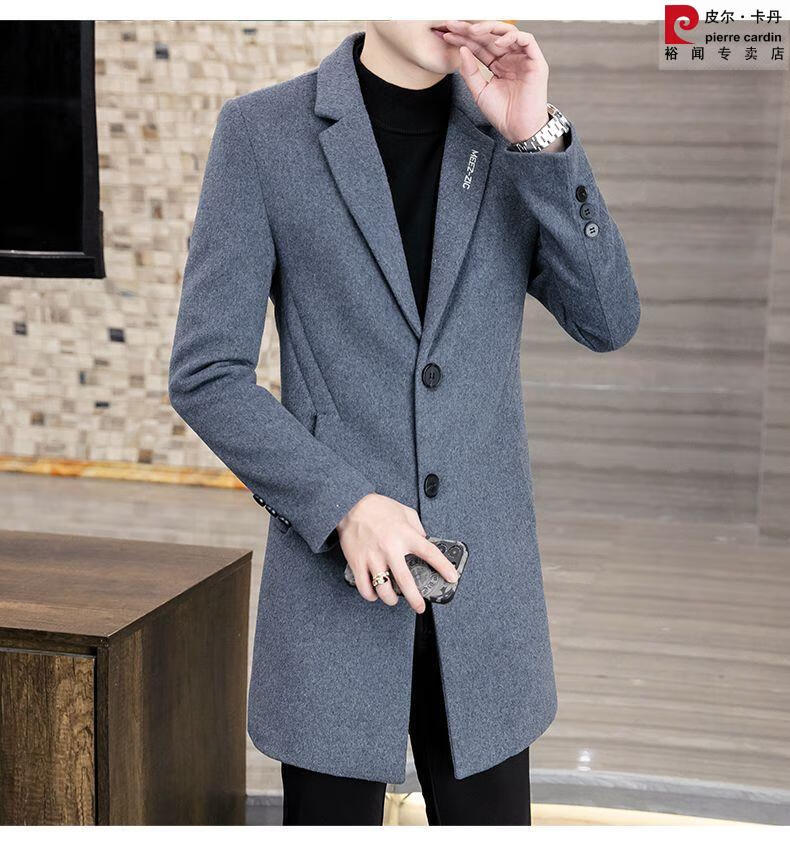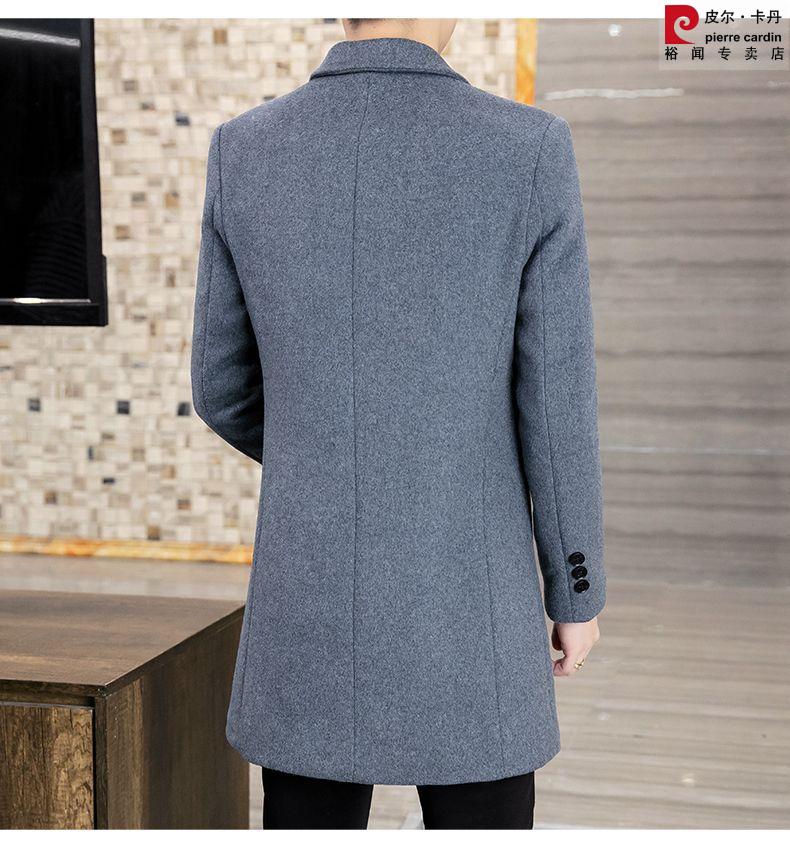 皮尔卡丹(pierre cardin)高端品牌羊毛大衣男士韩版中长款加厚风衣秋冬季时尚毛呢男装外套 黑色 2XL (140-155斤)