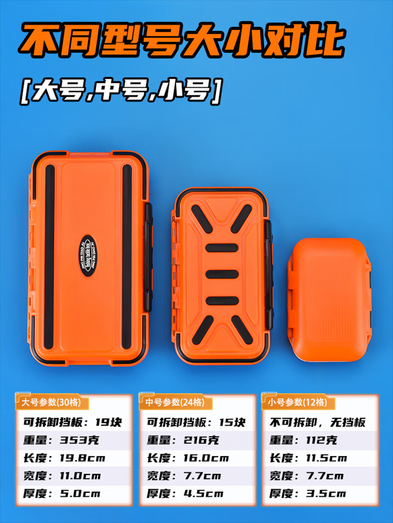 Tengyin Fishing Accessories Box New Waterproof Lure Box Tool Box Fishhook Storage Box Lure Bait Box Fishing Supplies Equipment Waterproof Accessories Box Small 12 Grids - Orange No Specifications