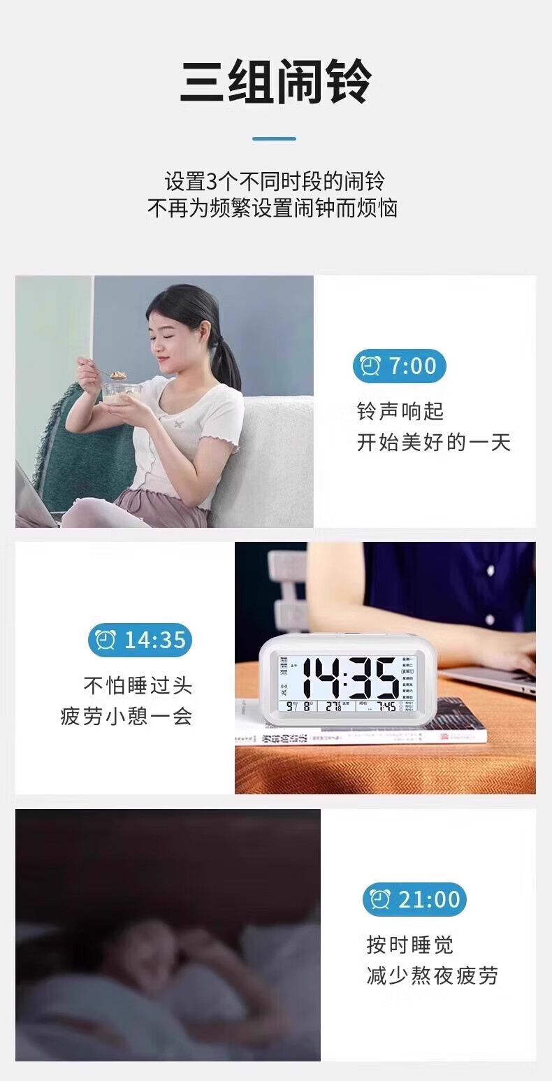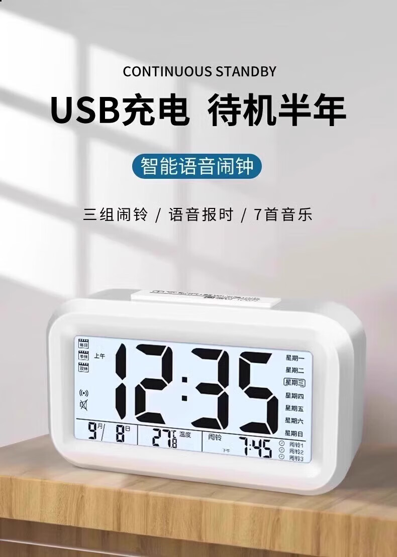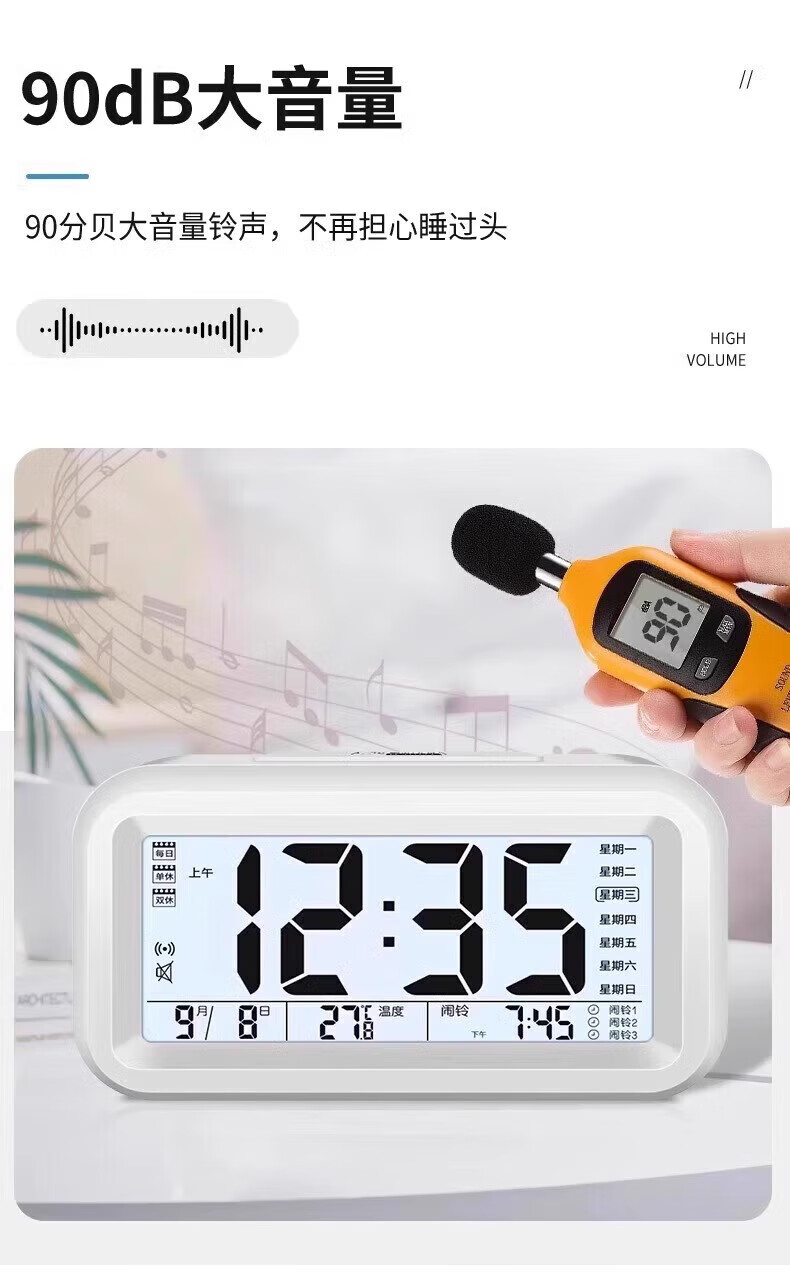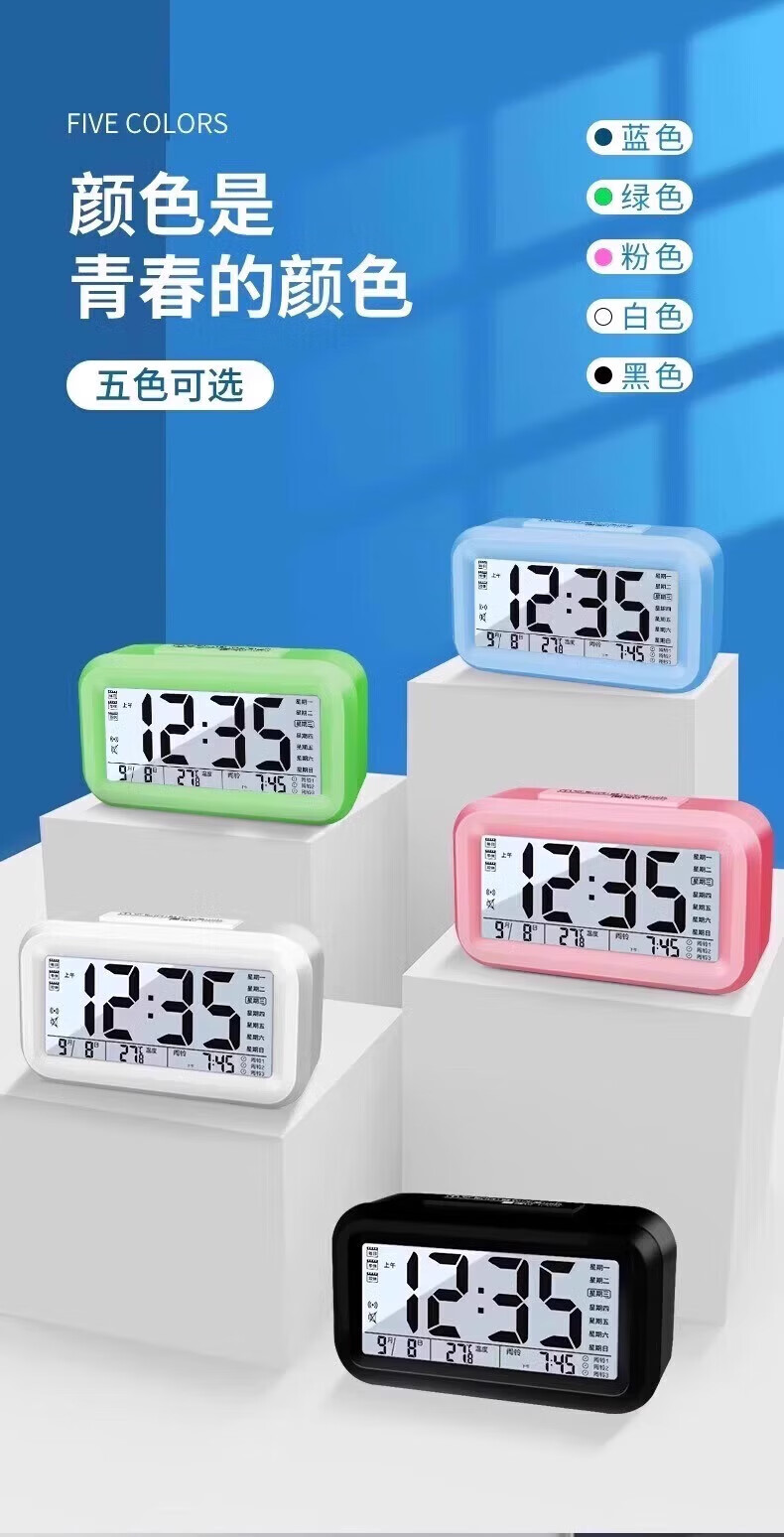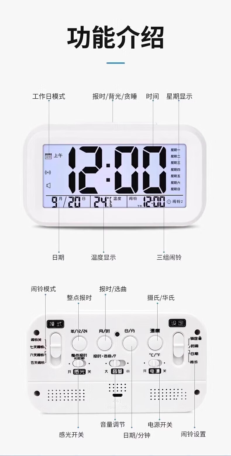 2025 new smart alarm clock, powerful wake-up electronic clock for students, blue voice broadcast, temperature display, battery model