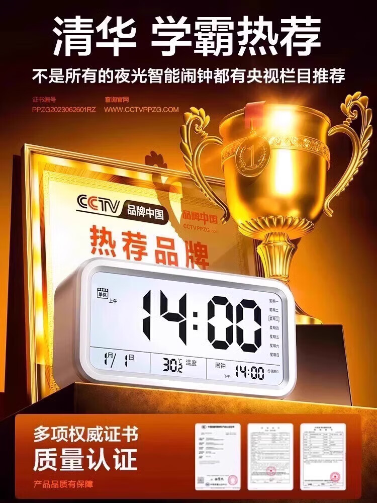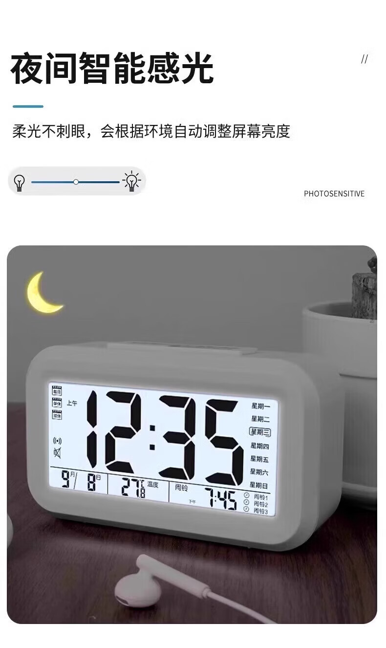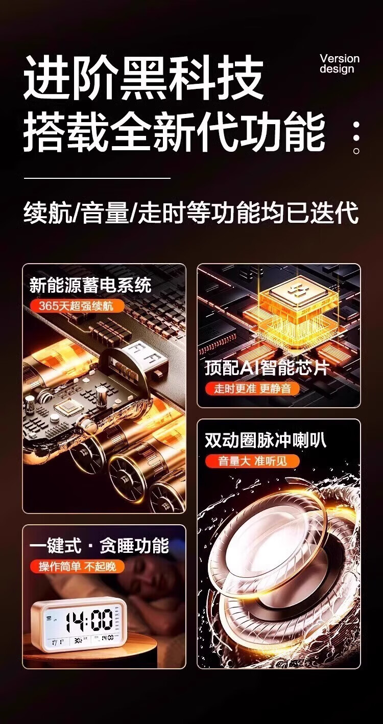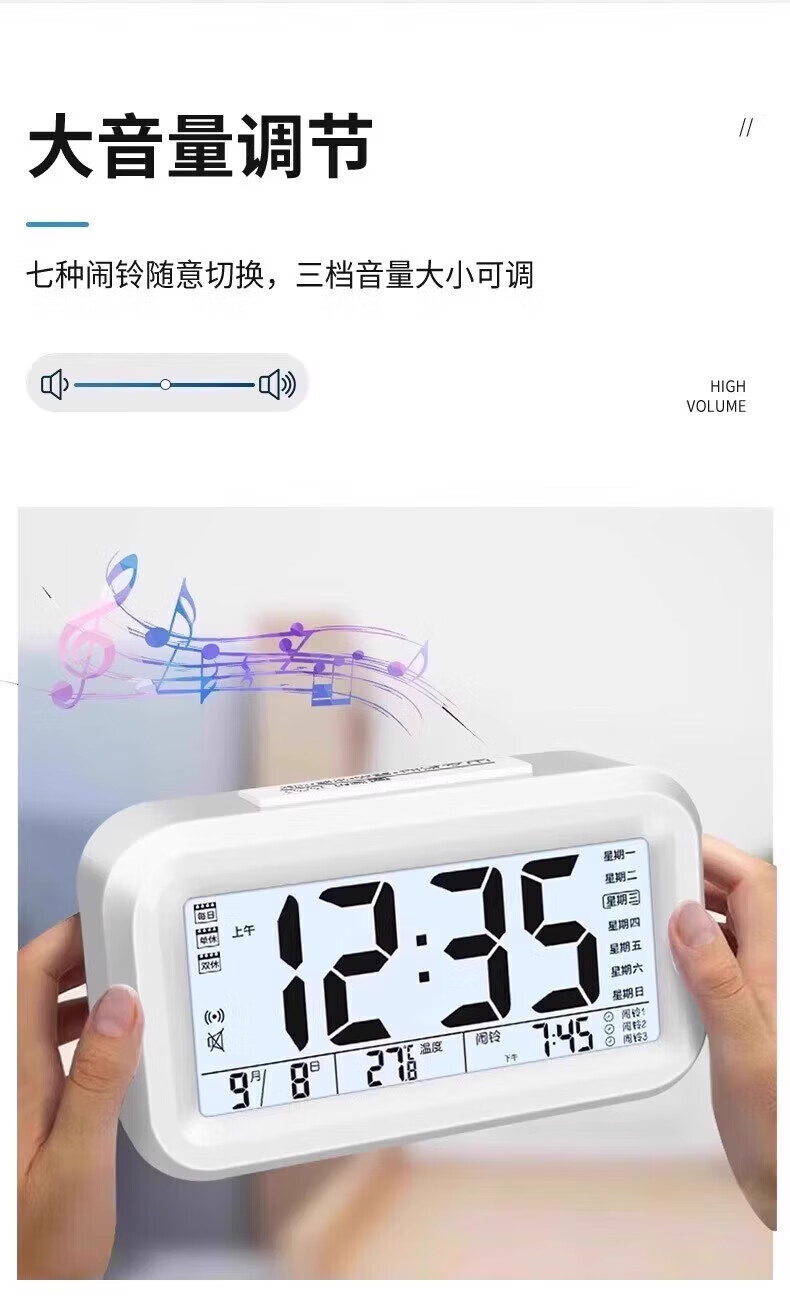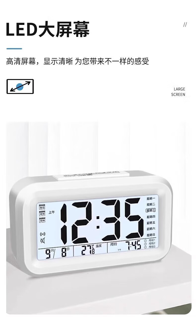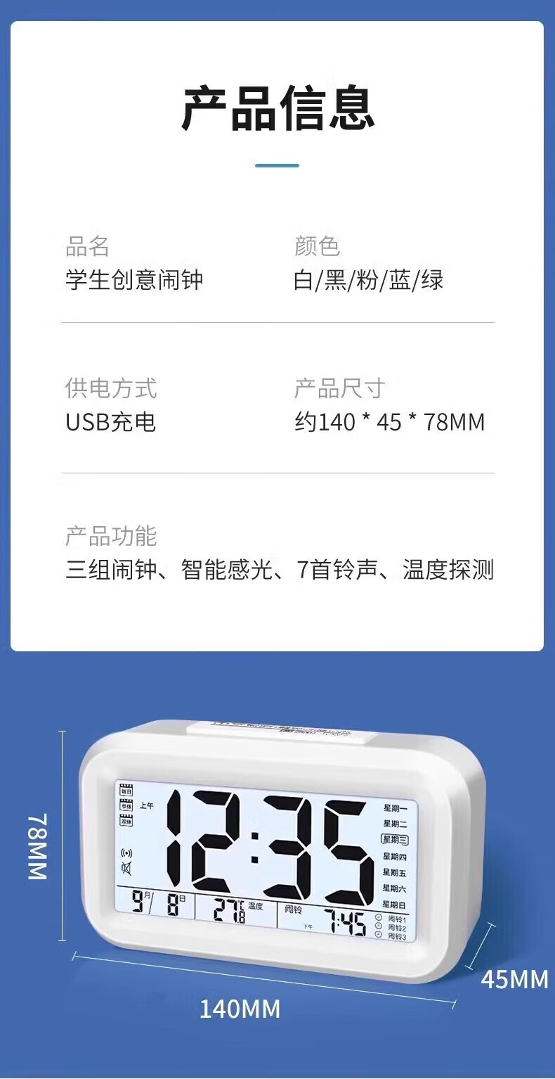 2025 new smart alarm clock, powerful wake-up electronic clock for students, blue voice broadcast, temperature display, battery model