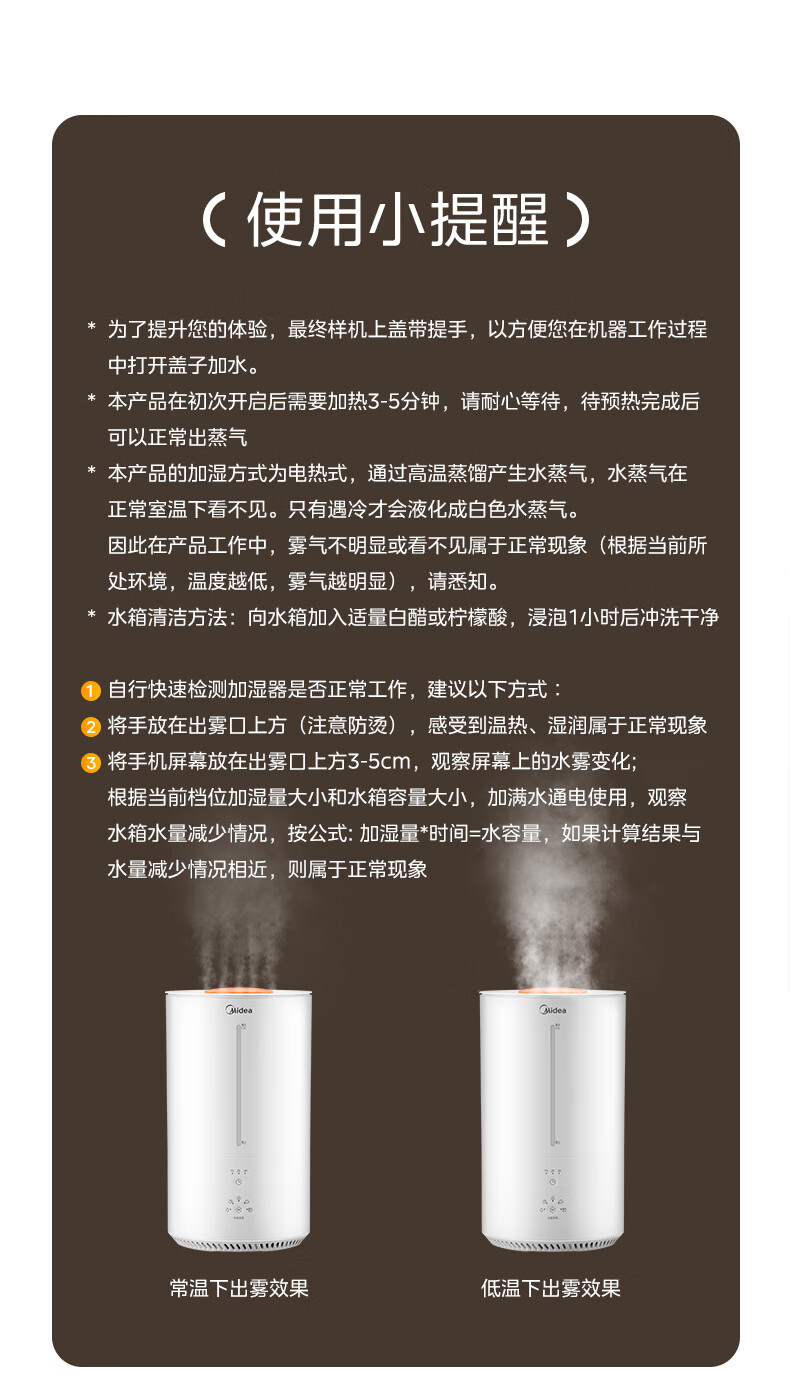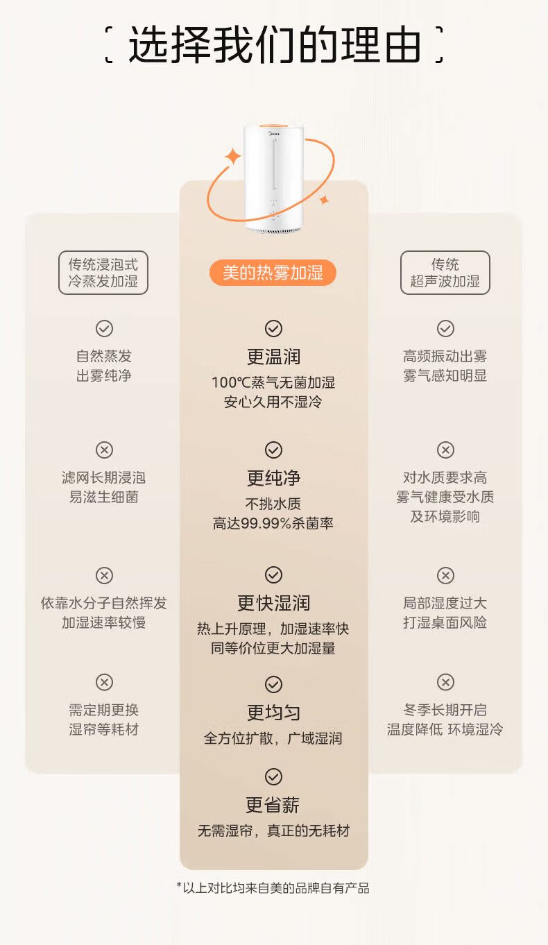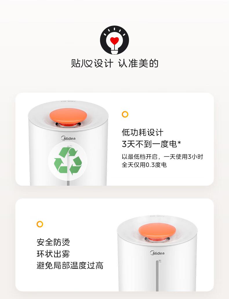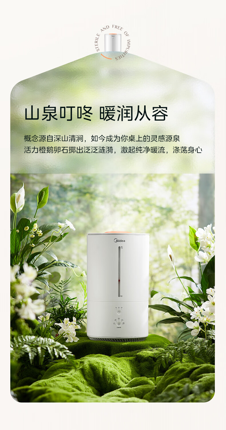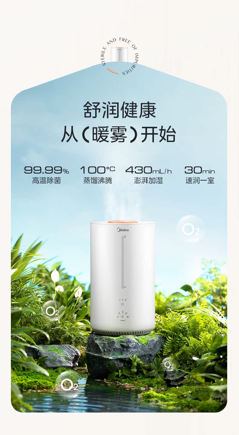Midea fog-free steam humidifier hot nose new 2025 air-conditioned bedroom 3R50 baby pregnant women home evaporative white fog-free steam humidification / filter-free