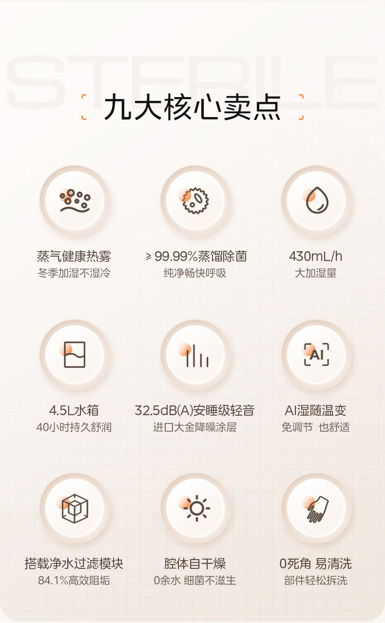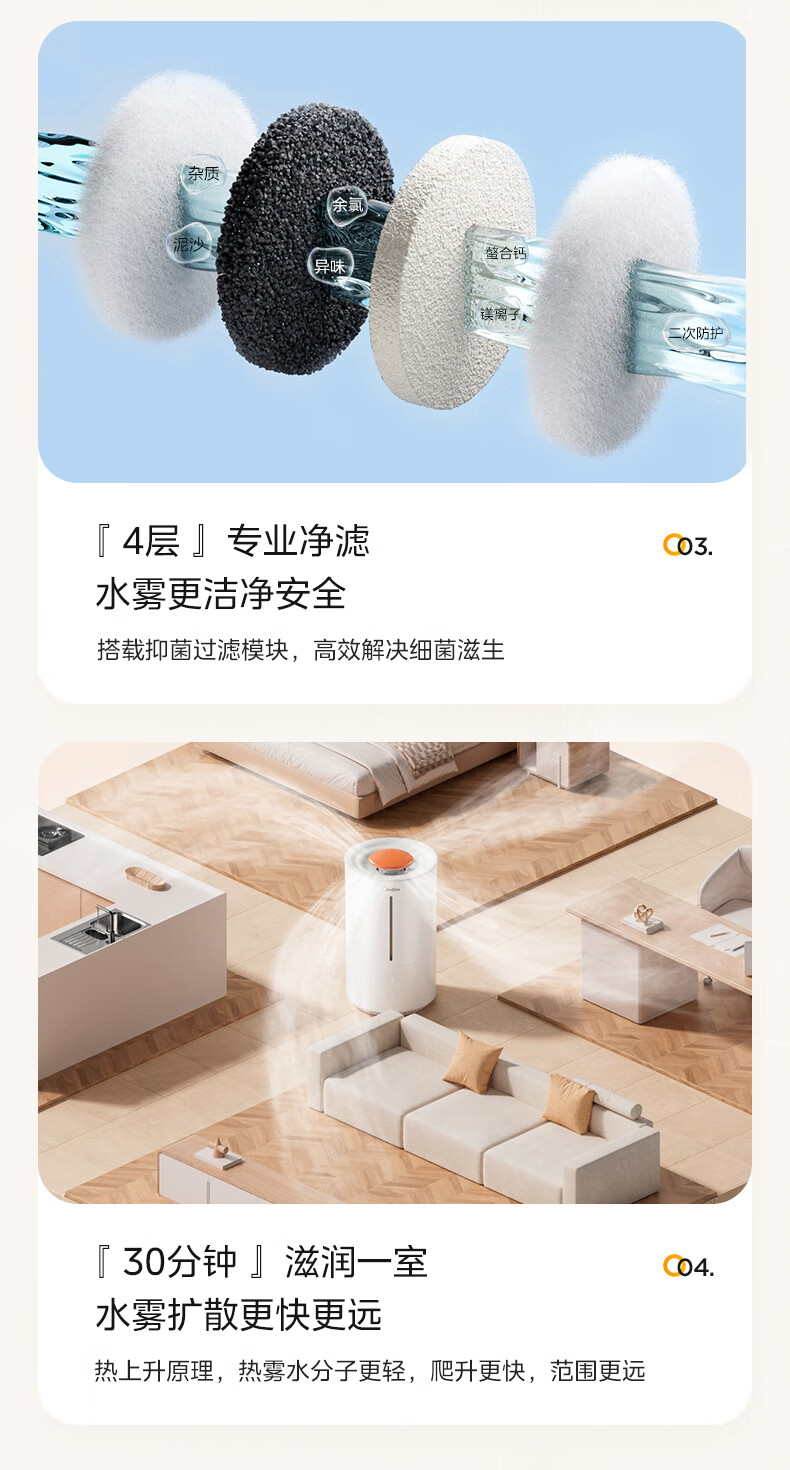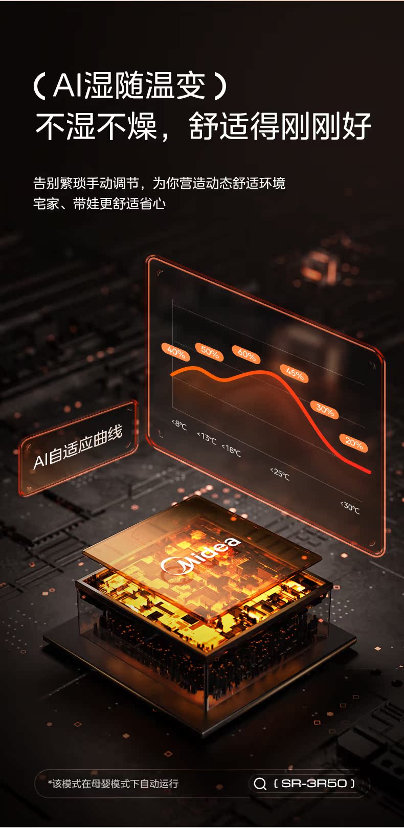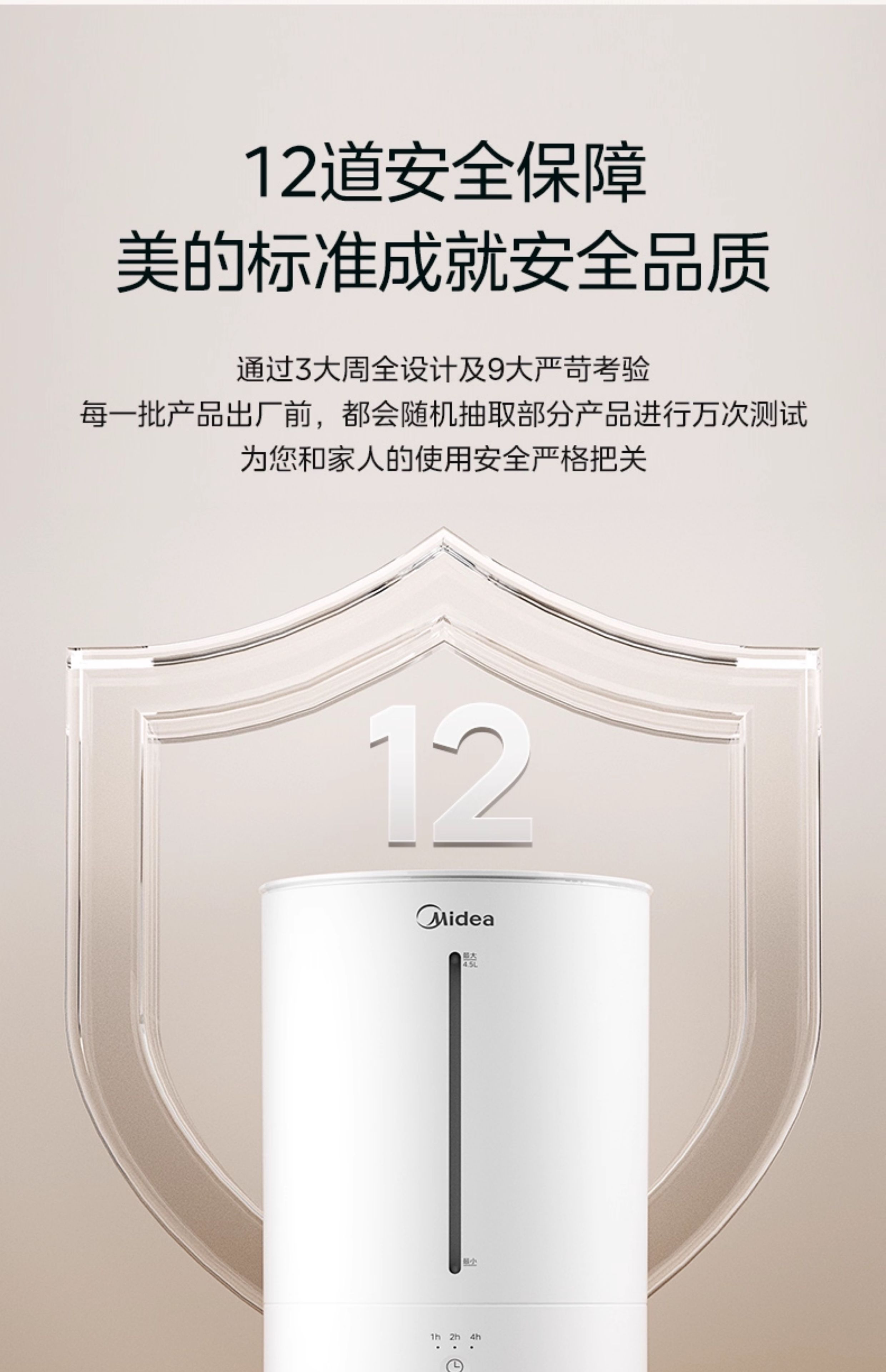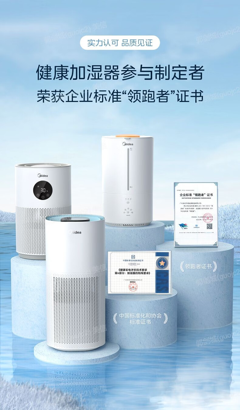 Midea fog-free steam humidifier hot nose new 2025 air-conditioned bedroom 3R50 baby pregnant women home evaporative white fog-free steam humidification / filter-free