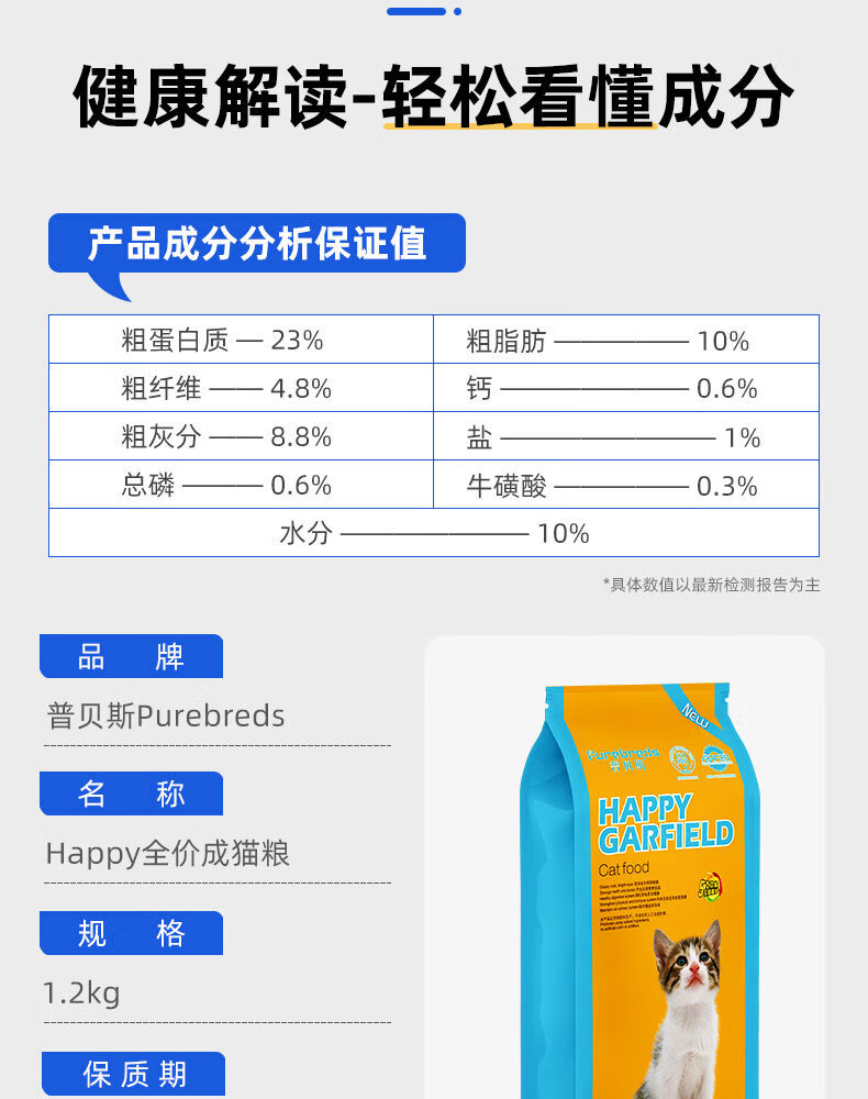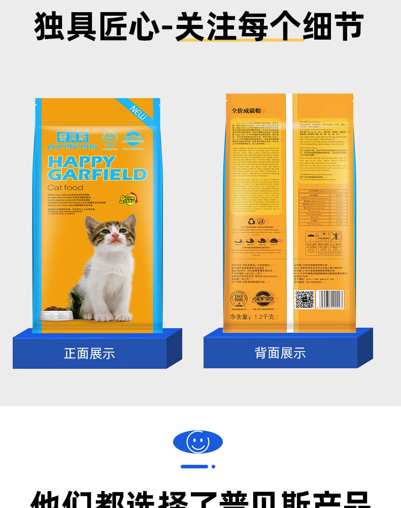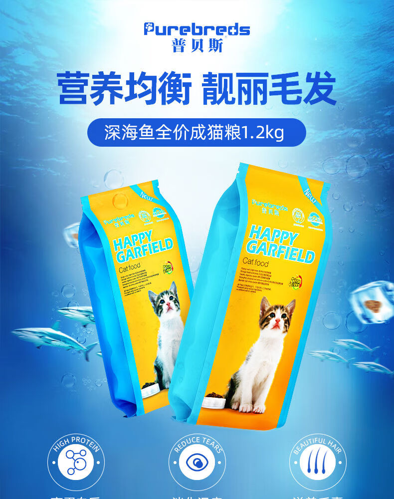 PUREBREDS cat food, all-purpose cat food, beautiful hair, eye-catching deep sea fish flavor, nutritious cat food, fish flavor adult cat food 1 point, 2kg, 1lb, specific reference flavor package