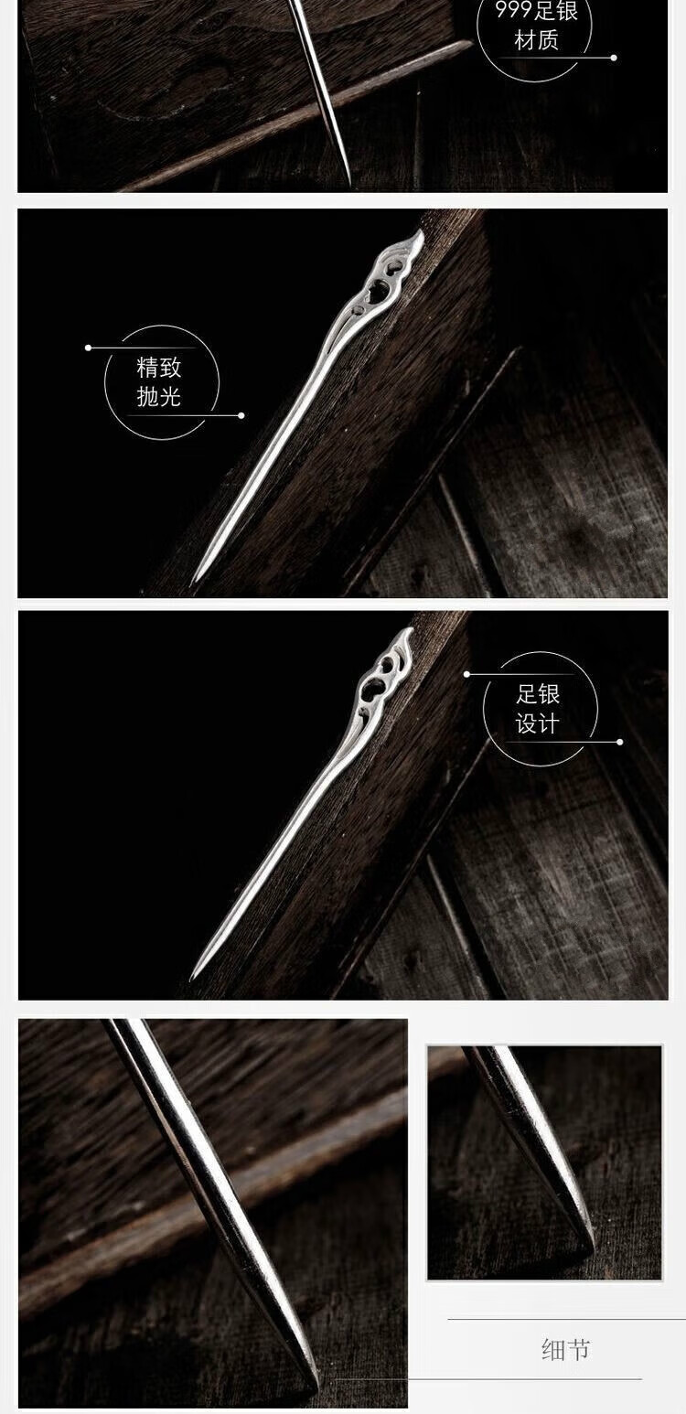 Handmade S999 Moon-Wang Sansheng Sanshi Ancient Style Hairpin Solid Coiled Silver Hairpin Mid-Autumn Festival Birthday Gift About 56g