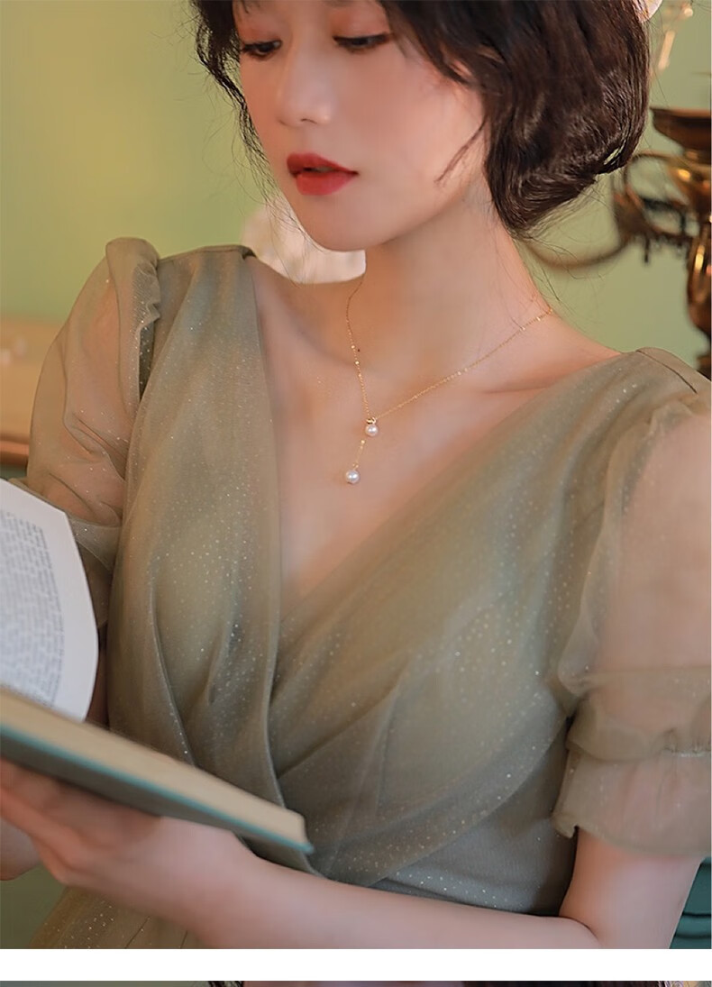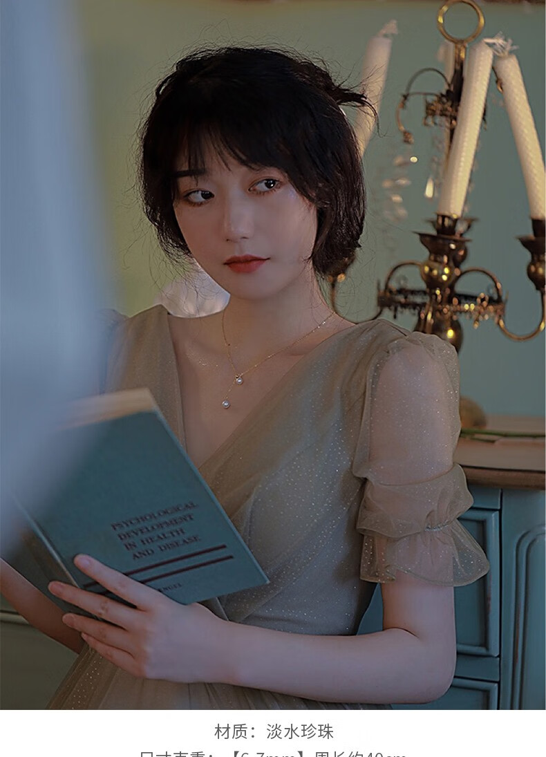 Xiaomeng double pendant freshwater pearl necklace young girl natural two beads clavicle chain y-shaped can be pulled and adjusted