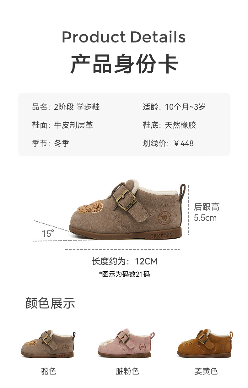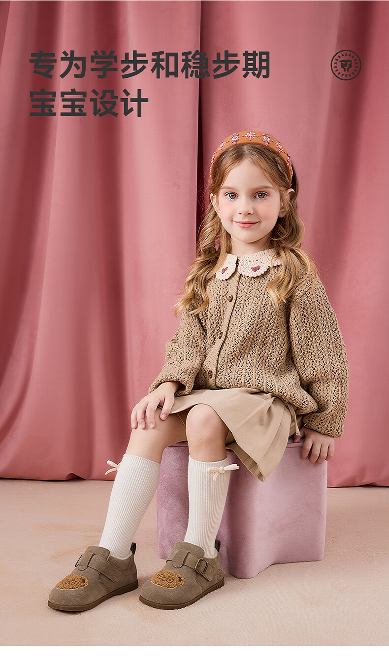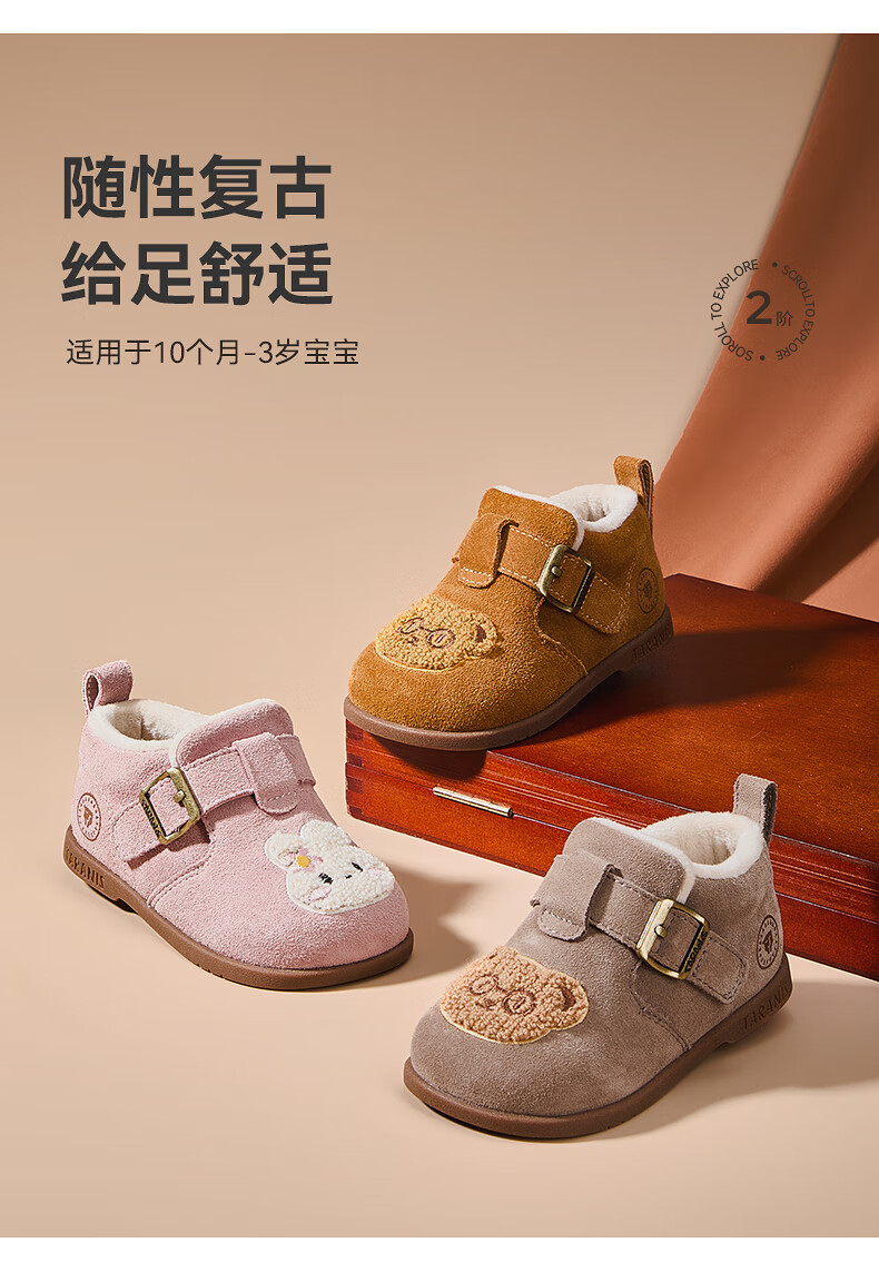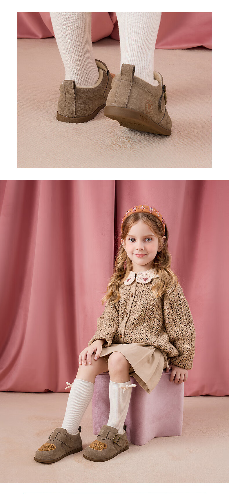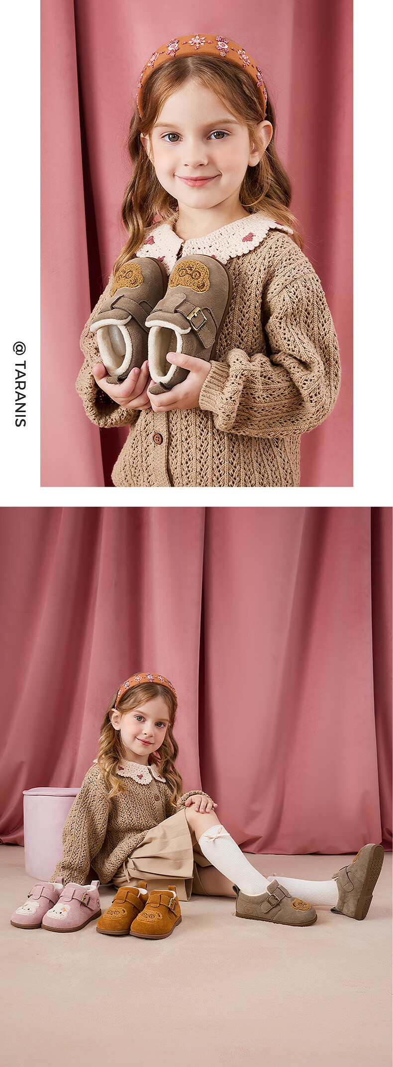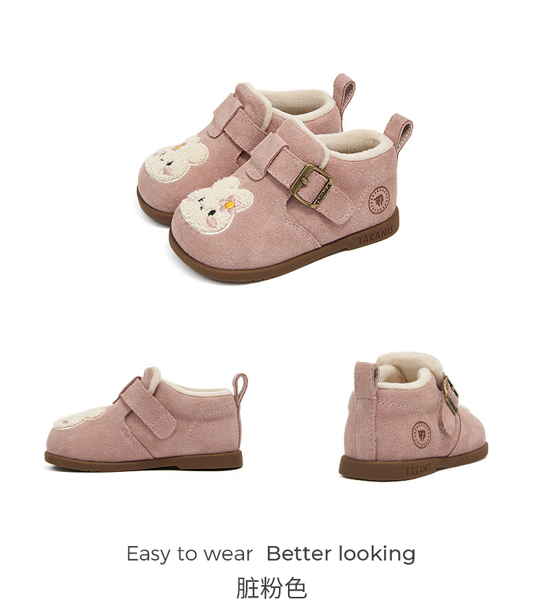 Terranis new winter toddler shoes plus velvet warm leather shoes for baby girls cute Birkenstock shoes non-slip soft sole functional shoes dirty pink 26 inner length 16.5 suitable for feet 14.8~15.2