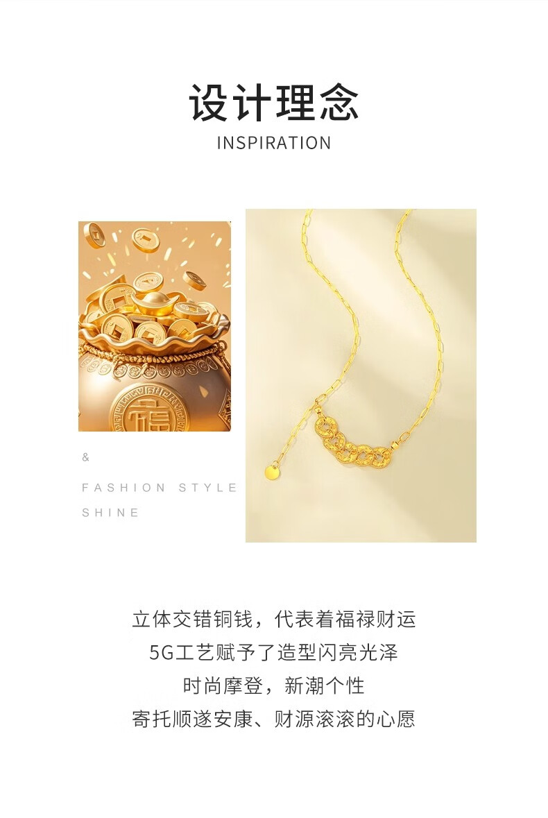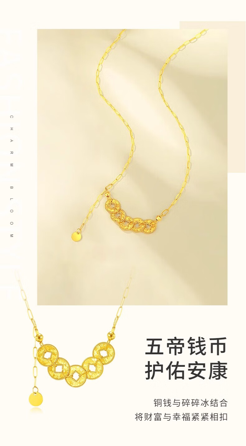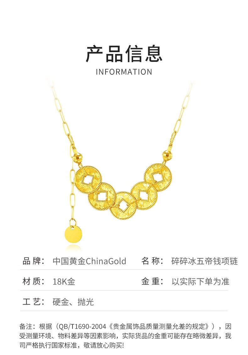 CHINA GOLD 18K Gold Crushed Ice Five Emperors Money Necklace Coin Clavicle Chain Valentine's Day Birthday Gift for Girlfriend and Wife 18K Gold Crushed Ice Five Emperors Money Necklace About 1.3g + Selection Gift Box