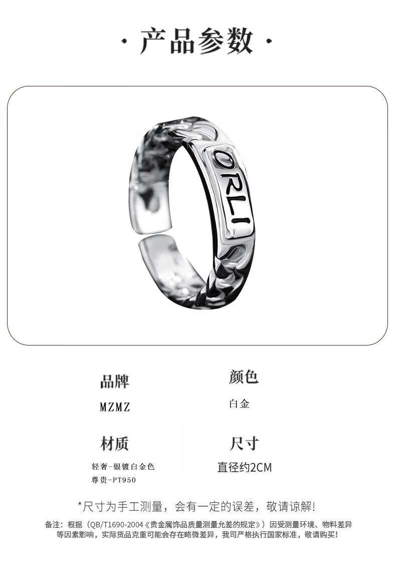 MZMZ platinum ring for men with English letters PT950 platinum decorative single ring plain ring Valentine's Day birthday gift for boyfriend light luxury model - self-disciplined streamer ring for men