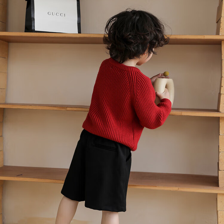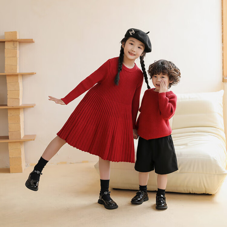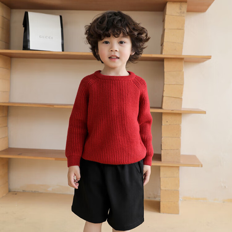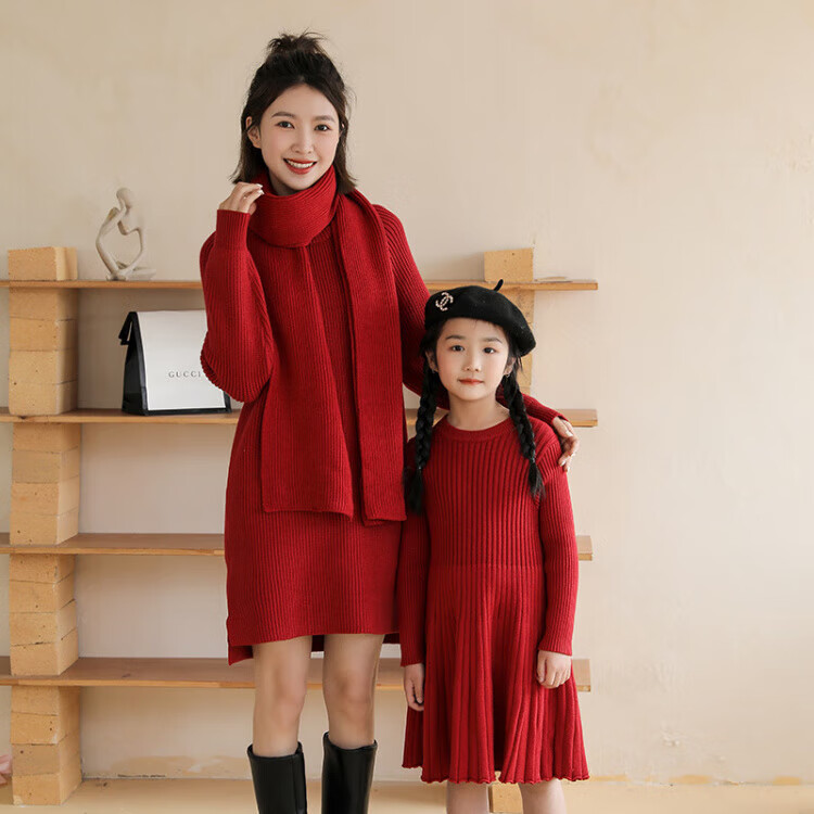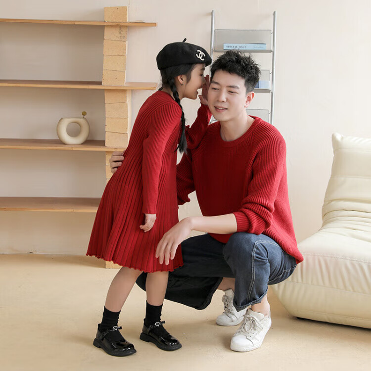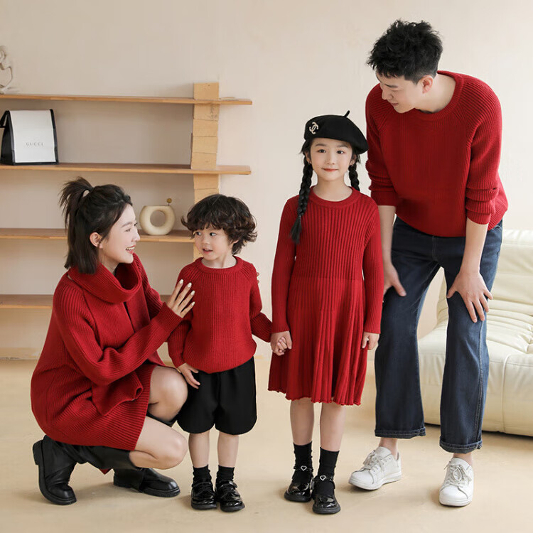 G.duck2025 parent-child clothing for a family of three children red girls and boys sweaters children's clothing baby family portrait New Year's greetings clothes burgundy 185 dad XXL size