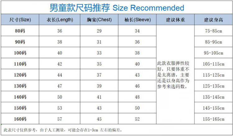 China (cm) 165 / 88-90 170 / 96-98 175 / 108-110 180 / 118-122 185 / 126-130