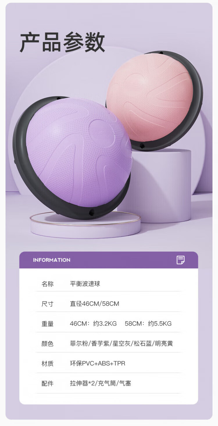 Sawang wave speed ball semicircular balance yoga ball children's sensory training equipment thickened explosion-proof particle fitness yoga ball balance training 7 years old and above bright yellow 58cm crescent model_thickened