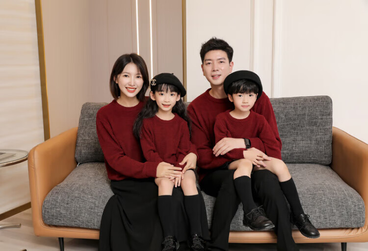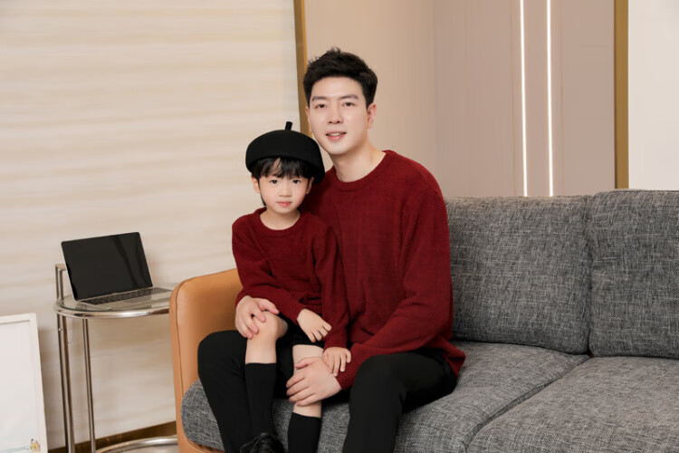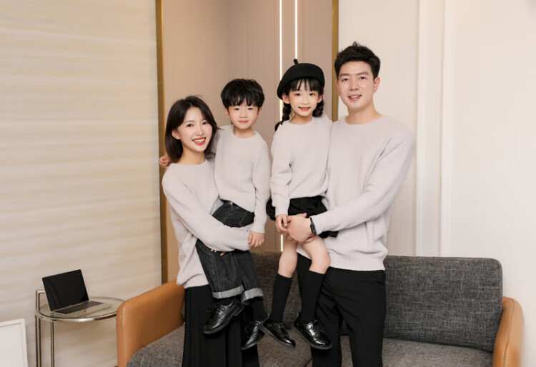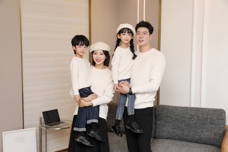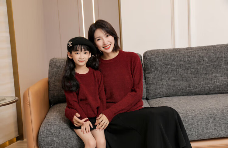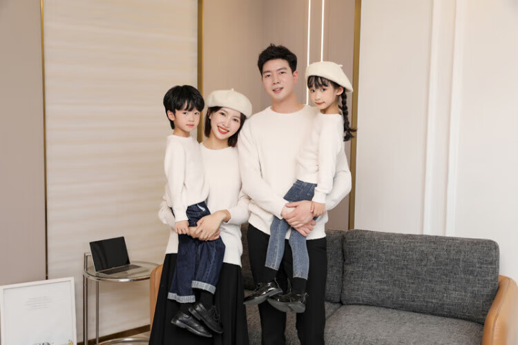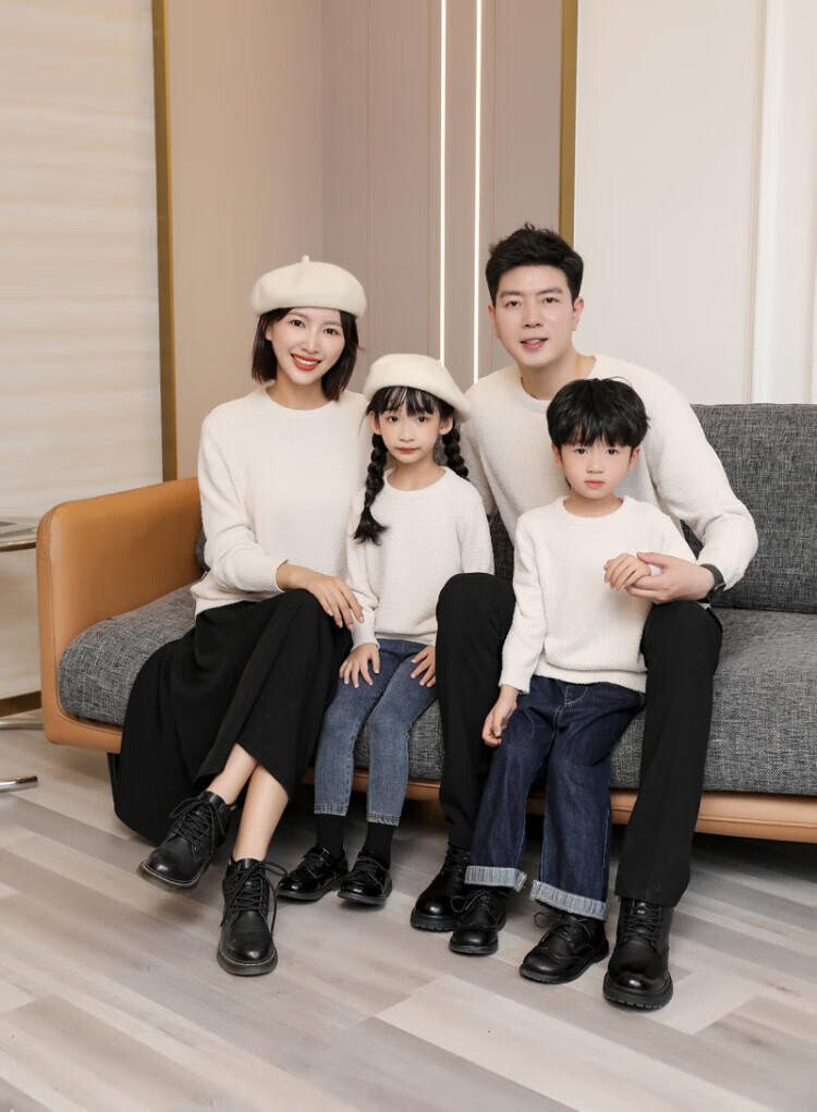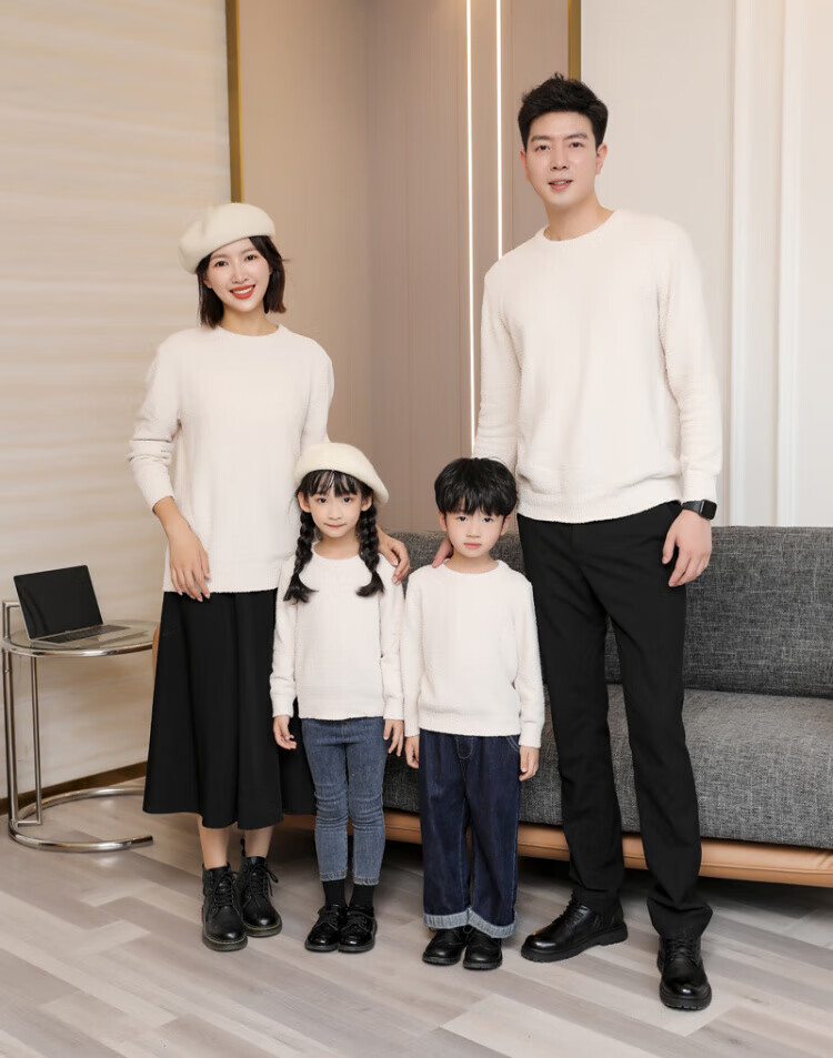 G.duck special parent-child sweater for a family of three and four 2025 autumn and winter new mother-daughter mother-child family portrait street autumn clothing off-white thickened model 175 L size