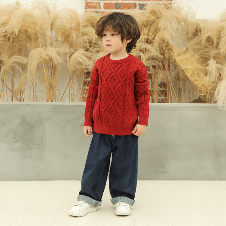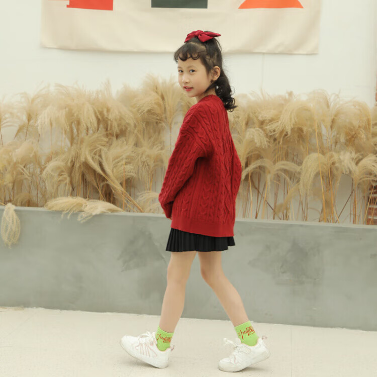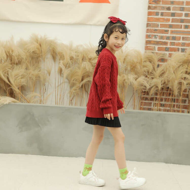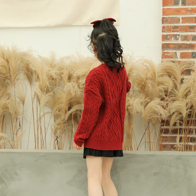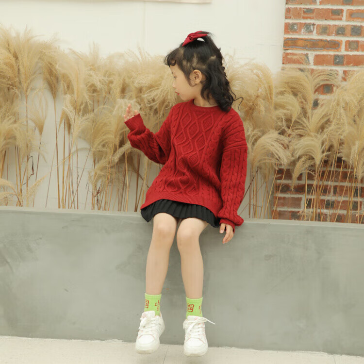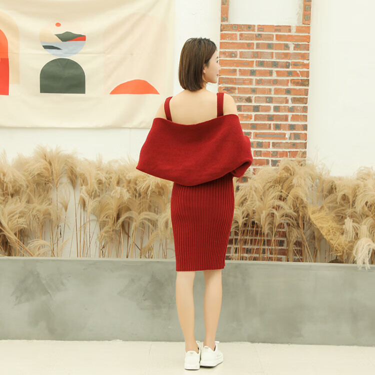 G.duck maternity photography clothing, parent-child clothing, family of three art photography, birth year and New Year red sweater family portrait, burgundy 210 suspender skirt two-piece set, one size fits all