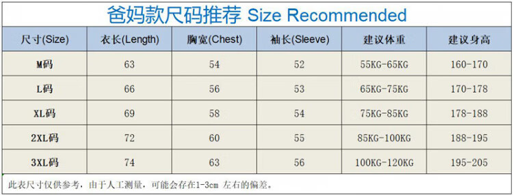 China (cm) 165 / 88-90 170 / 96-98 175 / 108-110 180 / 118-122 185 / 126-130