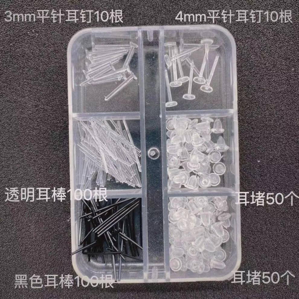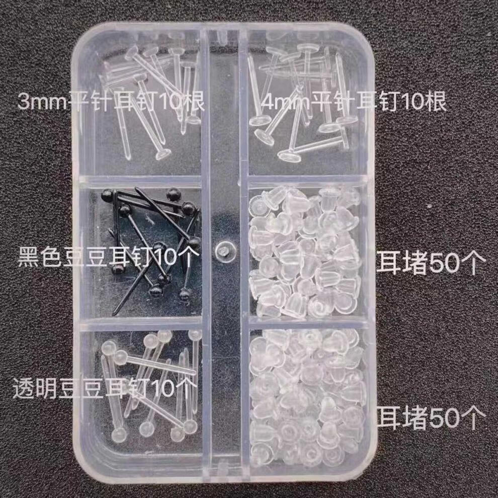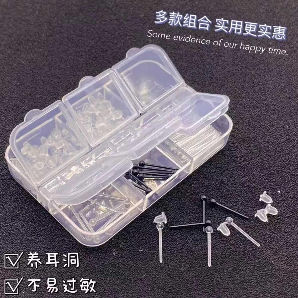 Fat Donglai's same style hypoallergenic ear piercing ear studs and ear sticks for women, medical resin transparent sticks, plastic students, transparent beans, 20 sticks + round box (limited to one purchase)