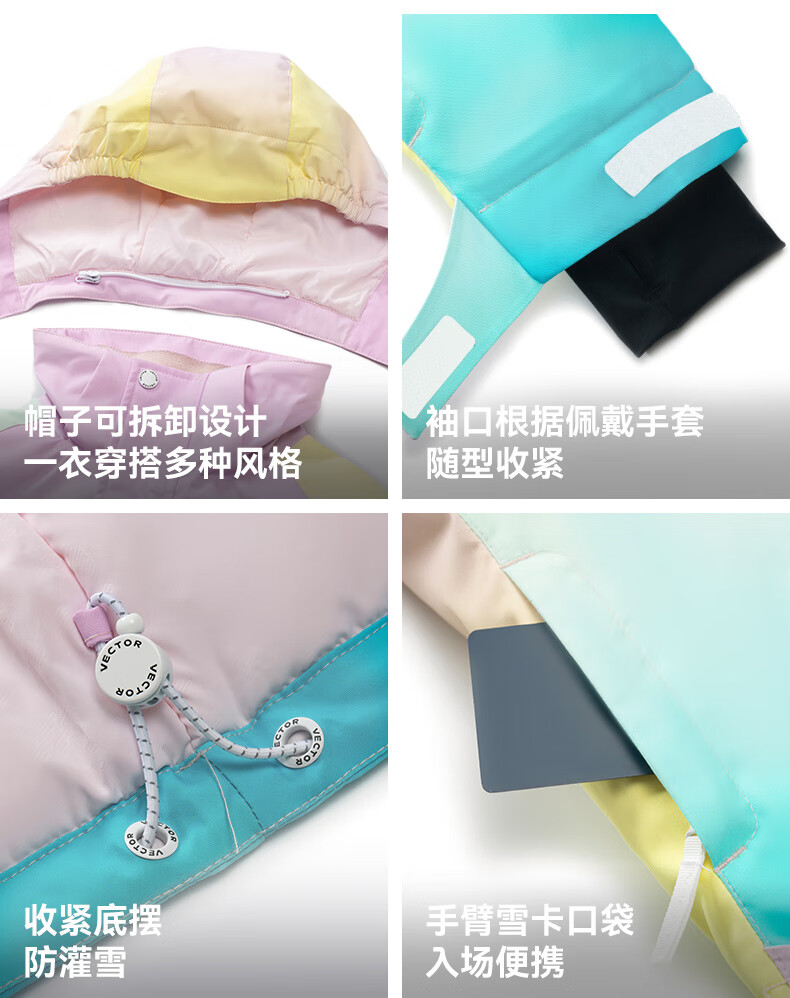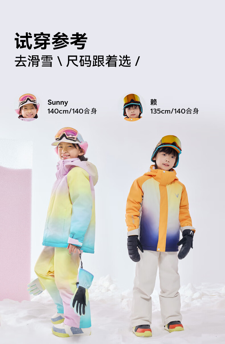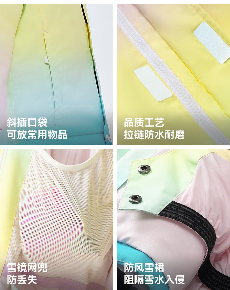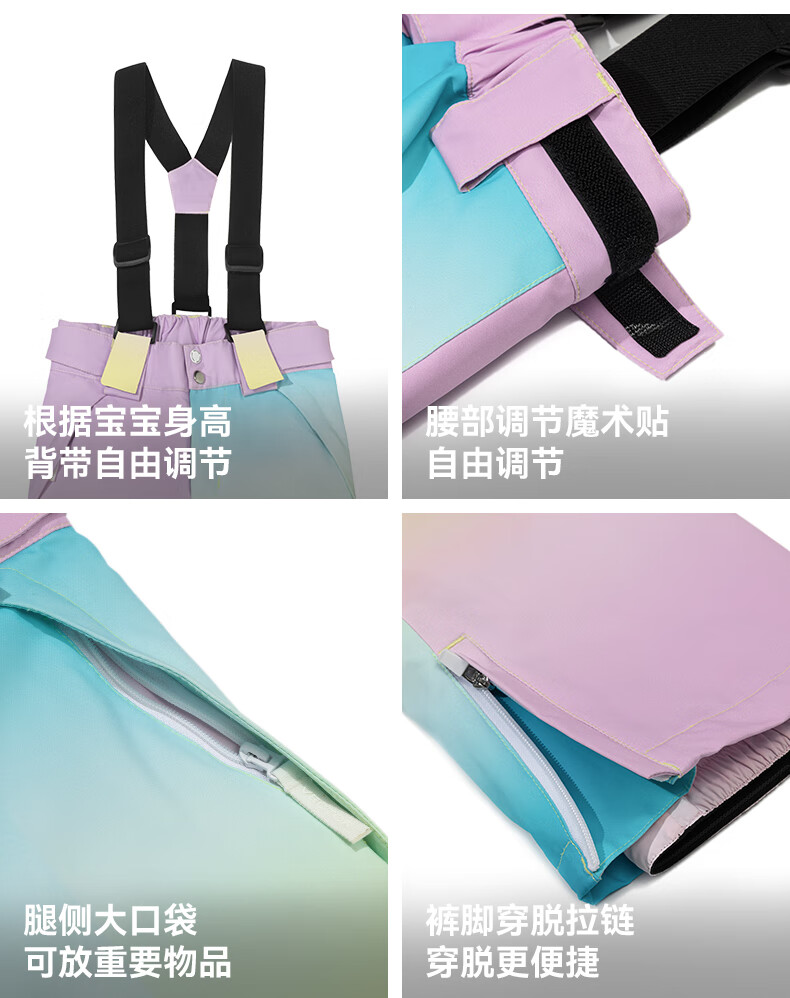 Vector Play Extension Pastel Gradient Children's Ski Suit Set Thickened Waterproof Overalls Ski Suit for Boys and Girls Glacier Pastel + Optical White Pants_ Same Style for Boys and Girls One Size 150